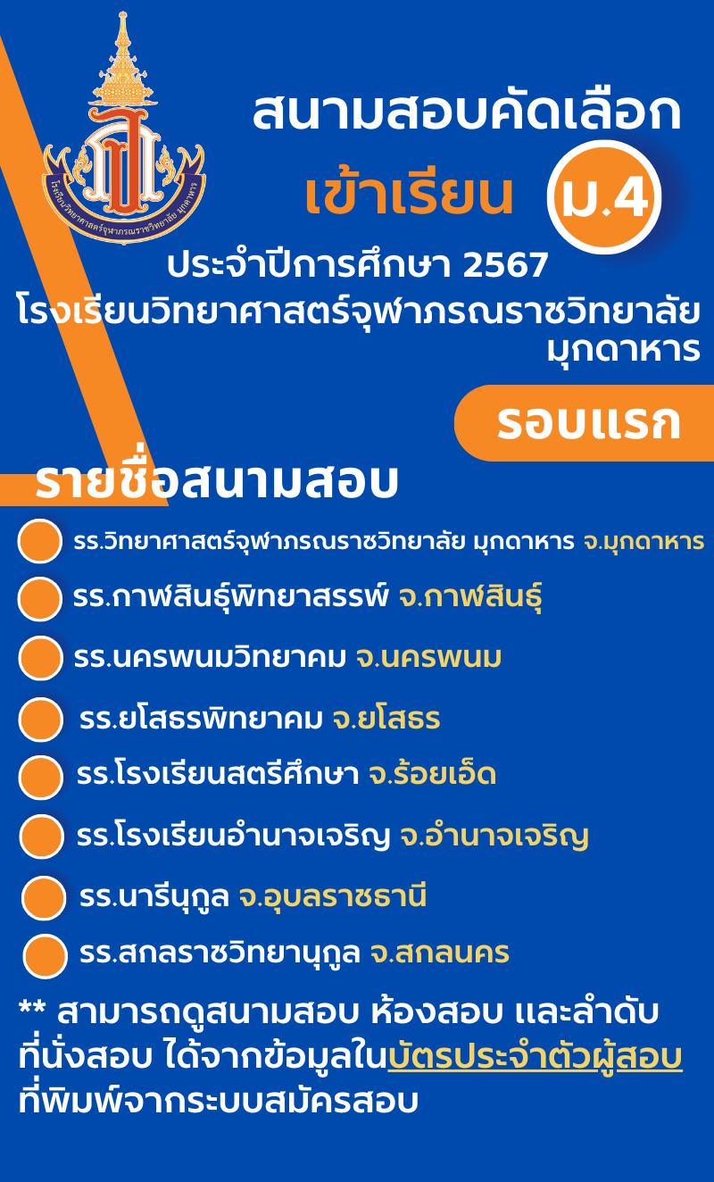 *สนามสอบได้เตรียมอุปกรณ์เครื่องเขียนไว้ให้นักเรียนคนละ 1 ชุด เมื่อสอบเสร็จแล้ว สามารถนำกลับได้