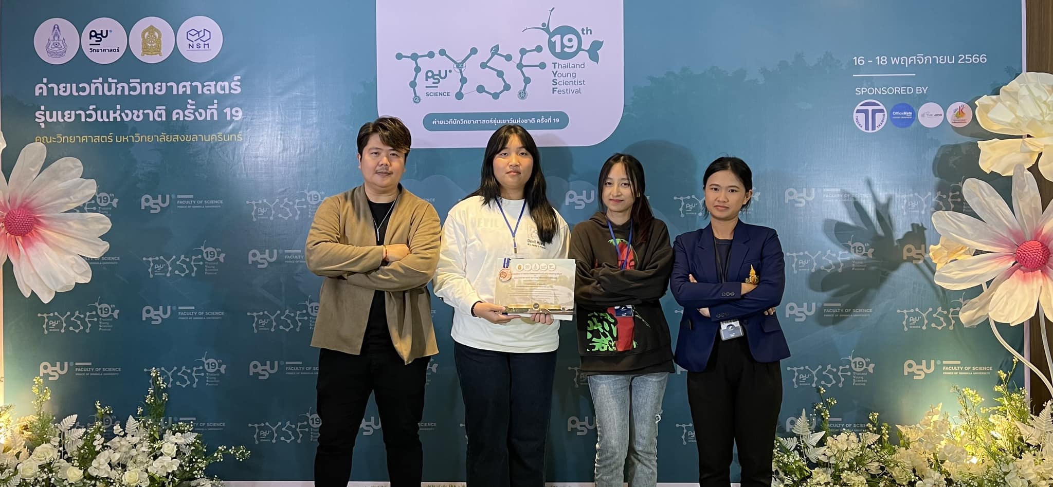 แสดงความยินดีกับนักเรียนที่ได้รับรางวัลเหรียญทองแดงระดับประเทศ การประกวดโครงงานสมาคมวิทยาศาสตร์แห่งประเทศไทย ในค่ายเวทีนักวิทยาสาสตร์รุ่นเยาว์แห่งชาติ ครั้งที่ 19 ระหว่างวันที่ 16-18 พฤศจิกายน 2566 ณ มหาวิทยาลัยสงขลานครินทร์ จังหวัดสงขลา โครงงานเรื่อง การเปรียบเทียบคุณภาพของรอยลายนิ้วมือแฝงที่ปรากฏขึ้นบนพื้นผิวต่างๆ โดยใช้ผงสกัดจากธรรมชาติ ร่วมกับการวิเคราะห์ลายนิ้วมือด้วย Image Processing จัดทำโดย นายศุภมงคล สายสมบัติ, นางสาวปณิตา สีดาพันธุ์, นางสาวศุภาพิชญ์ โคตรโย, ครูที่ปรึกษา นายธีระวุฒิ จันทะพันธ์ และนายชวลิต บัวพรม