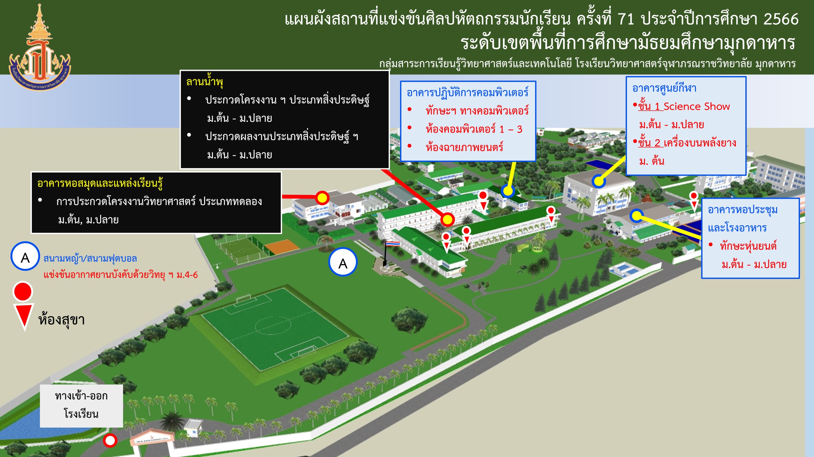 แผนผังสถานที่แข่งขันศิลปหัตถกรรมนักเรียนระดับชั้นมัธยมศึกษา ในระดับเขตพื้นที่การศึกษามัธยมศึกษา มุกดาหาร ครั้งที่ 71