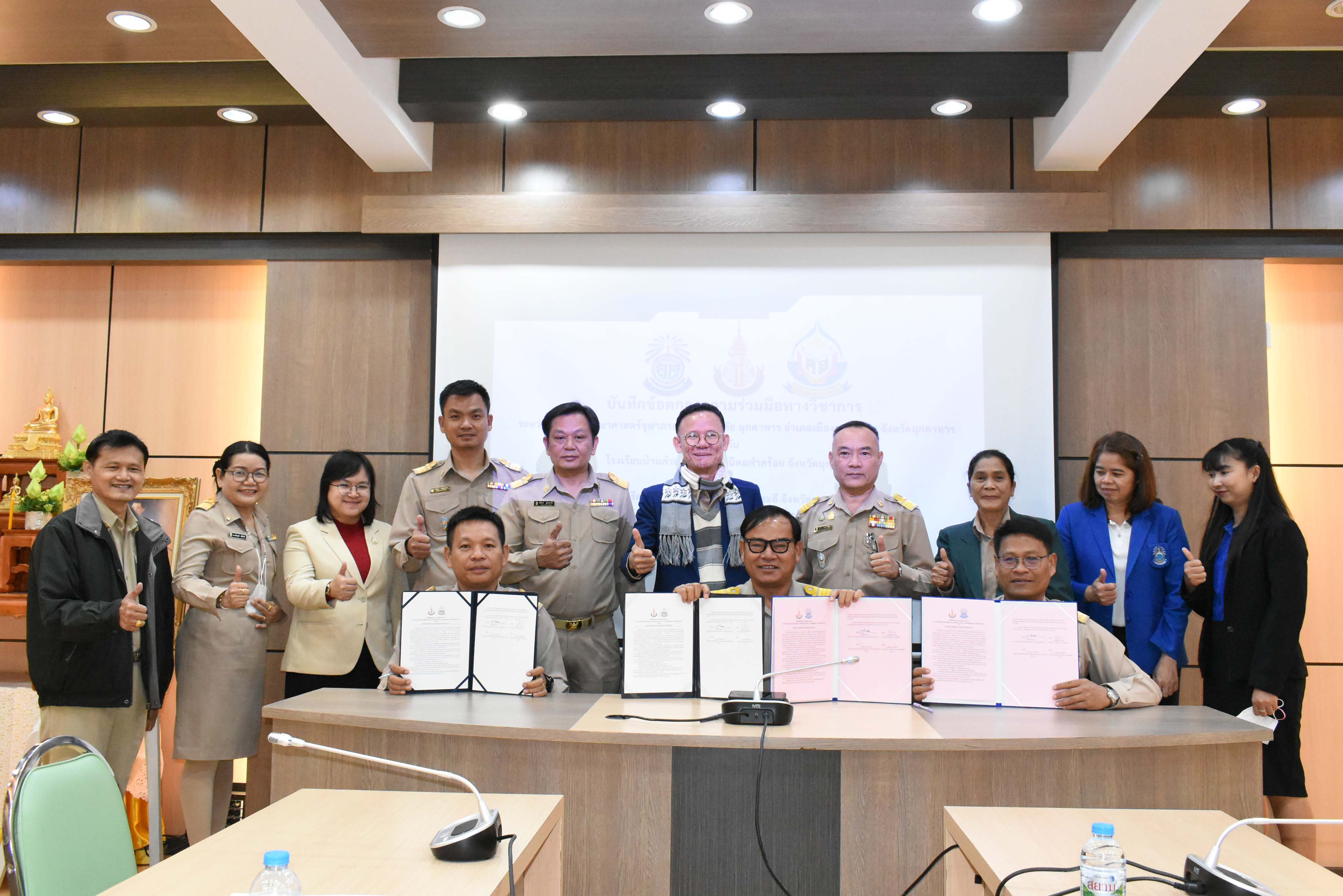 การลงนามบันทึกข้อตกลงความร่วมมือทางวิชาการกับโรงเรียนบ้านคำสร้อยและโรงเรียนบ้านโนนสังข์ศรี จังหวัดมุกดาหาร