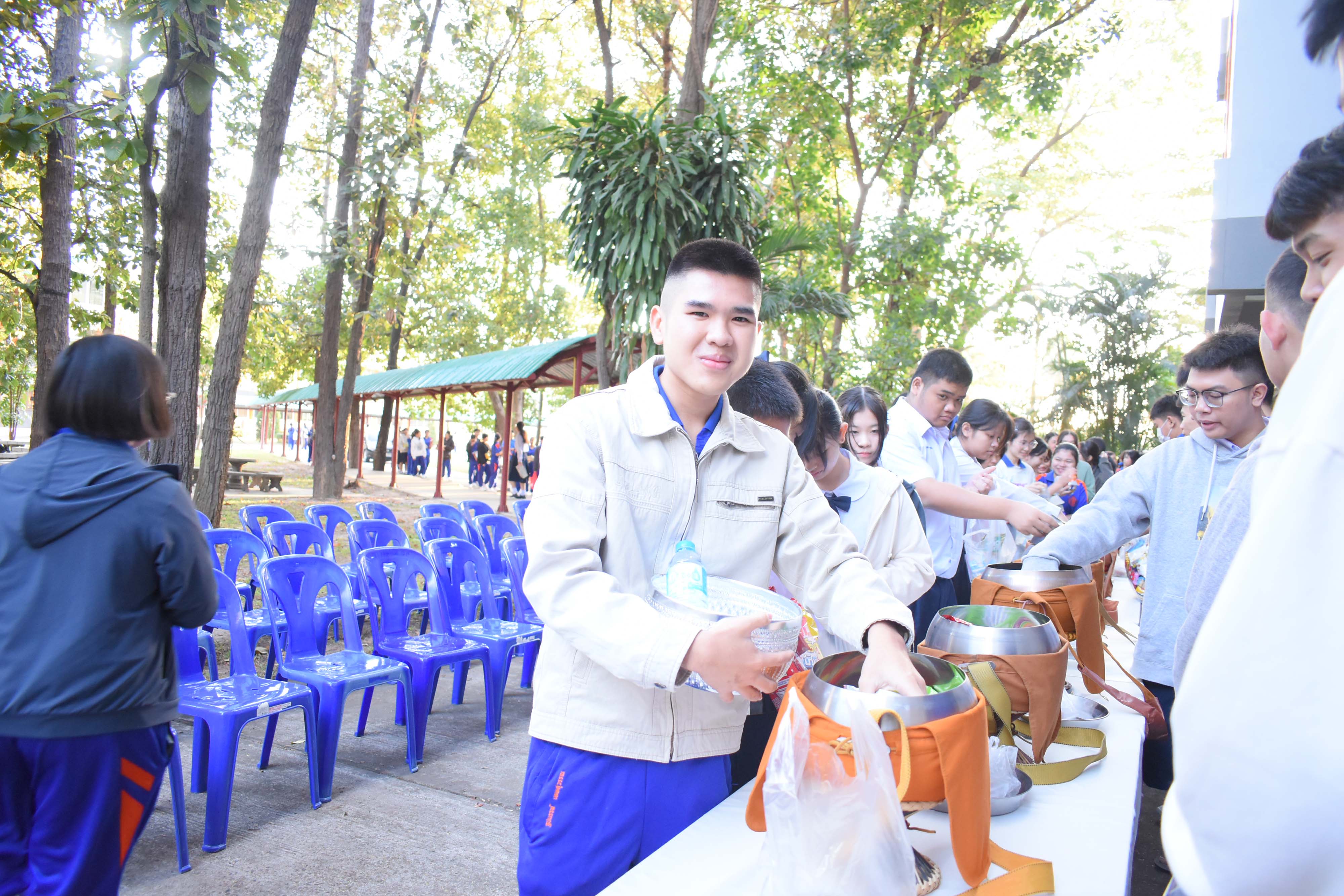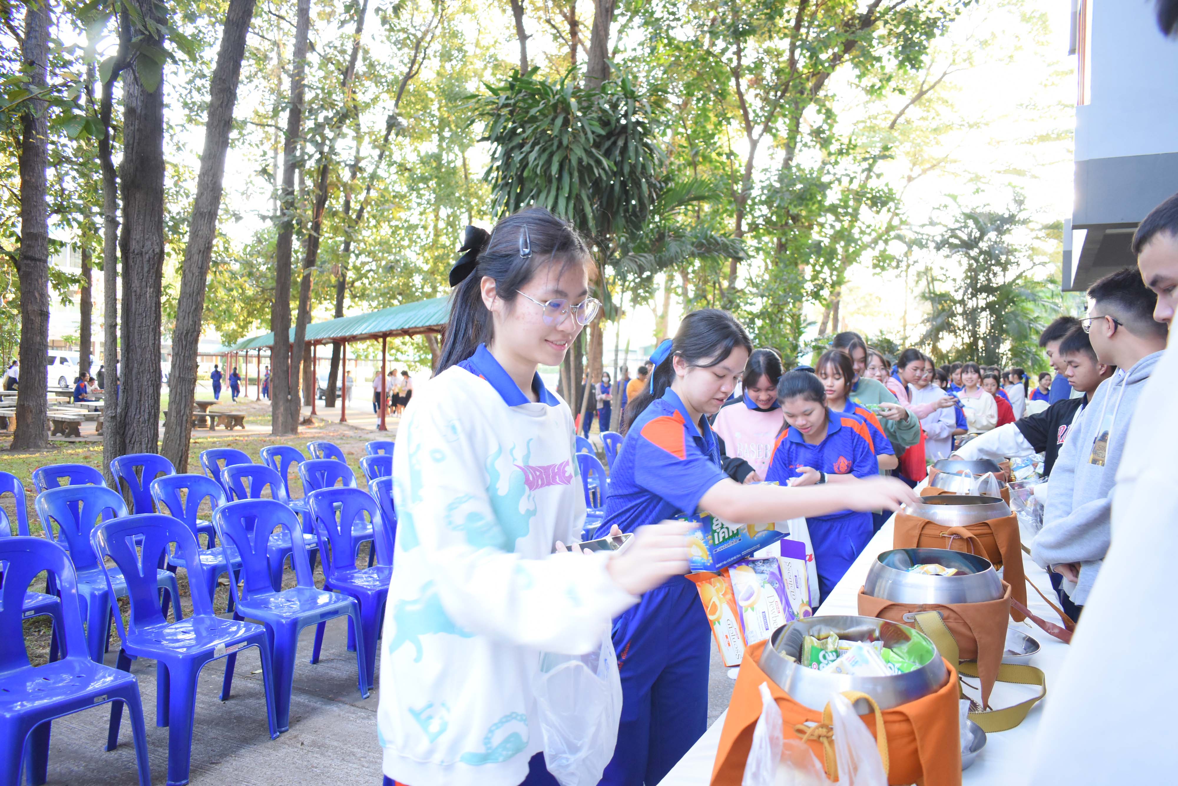 โรงเรียนวิทยาศาสตร์จุฬาภรณราชวิทยาลัย มุกดาหาร จัดกิจกรรมทำบุญตักบาตรเรือนพักนอนนักเรียนประจำ เดือนมกราคม 2567