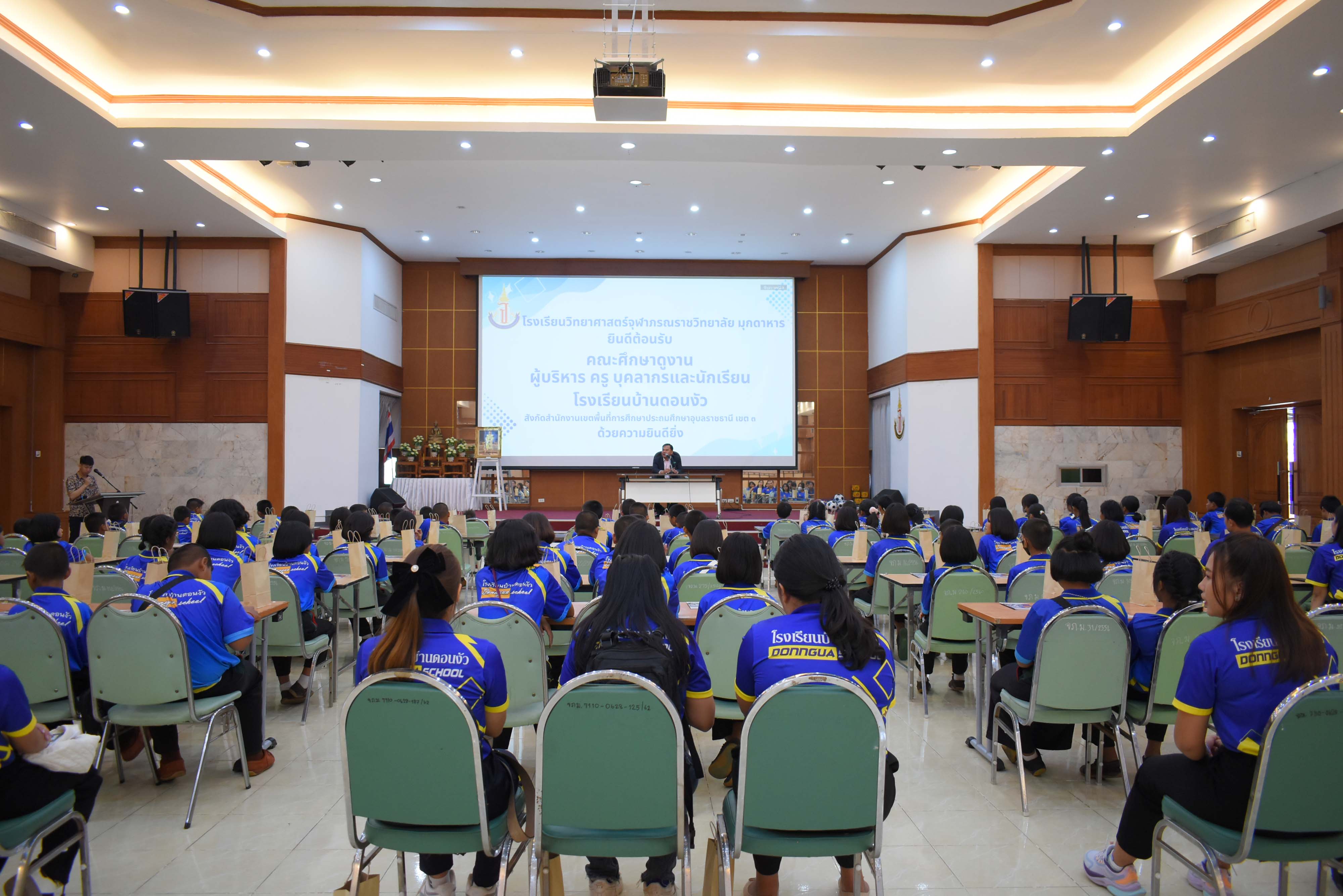 ต้อนรับคณะศึกษาดูงานผู้บริหาร ครู บุคลากรและนักเรียน โรงเรียนบ้านดอนงัว สังกัดสำนักงานพื้นที่การประถมศึกษาอุบลราชธานี เขต 3 จังหวัดอุบลราชธานี ณ หอประชุมโรงเรียนวิทยาศาสตร์จุฬาภรณราชวิทยาลัย มุกดาหาร ในวันศุกร์ที่ 2 กุมภาพันธ์ 2567 เวลา 10.00 น.