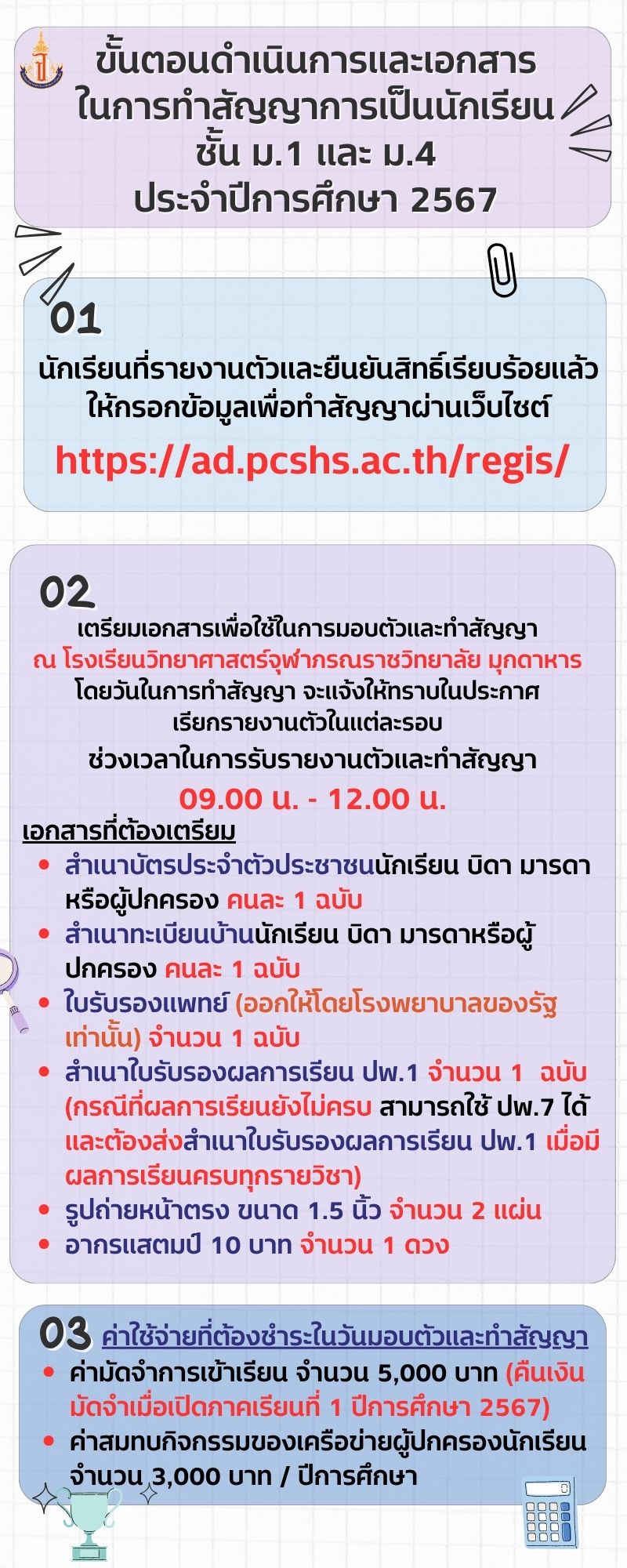 กำหนดการรายงานตัวและทำสัญญาเข้าเป็นนักเรียนชั้นมัธยมศึกษาปีที่ 1 ปีการศึกษา 2567