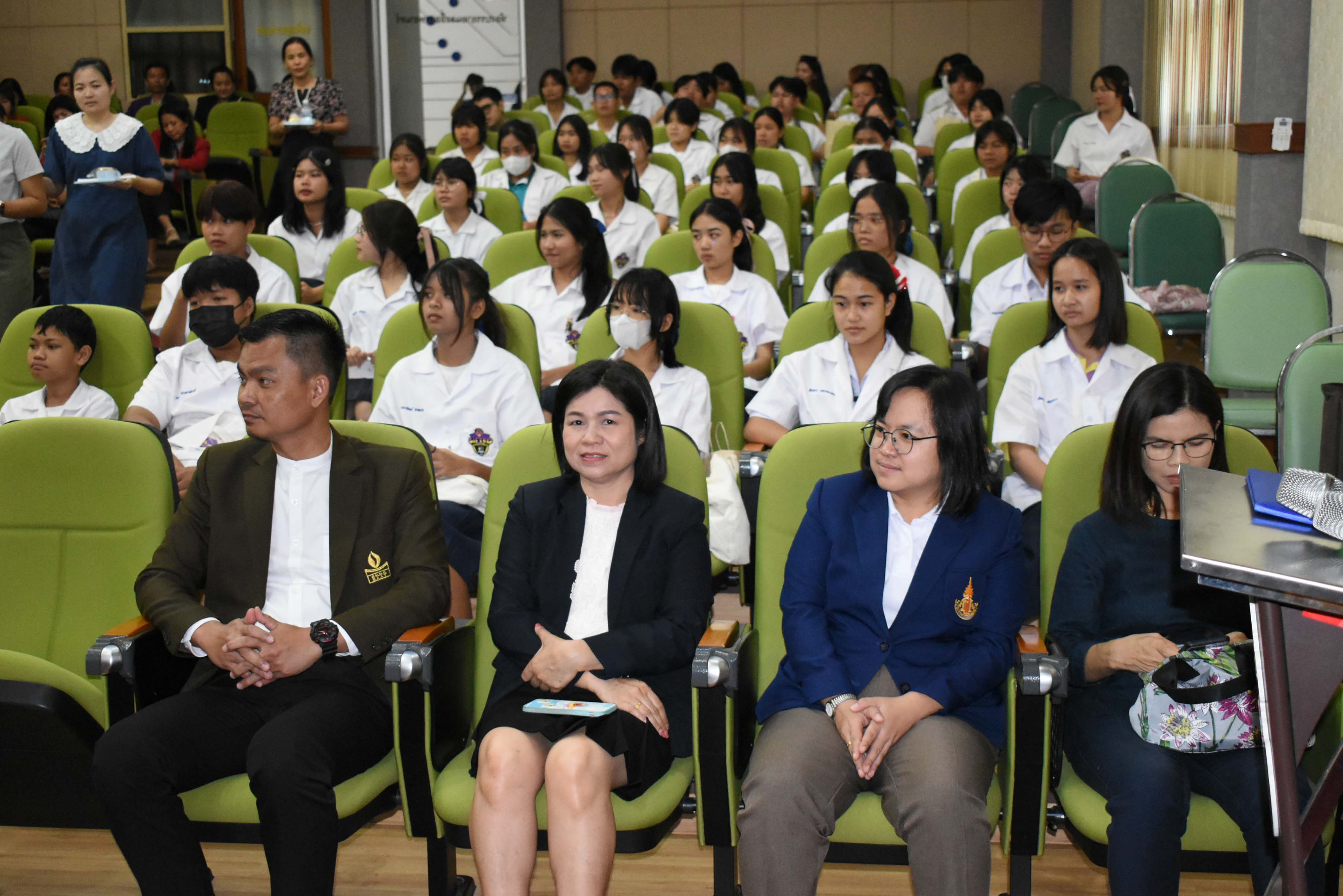 คณะผู้บริหาร ครูและบุคลากรโรงเรียนวิทยาศาสตร์จุฬาภรรราชวิทยาลัยมุกดาหาร ร่วมต้อนรับคณะศึกษาดูงานโรงเรียนศรีเมืองวิทยาคาร สำนักงานเขตพื้นที่การศึกษามัธยมศึกษา อุบลราชธานี อำนาจเจริญ และต้อนรับครูธนพัฒน์ ทับไธสง ครูผู้สอนสาขาเคมี