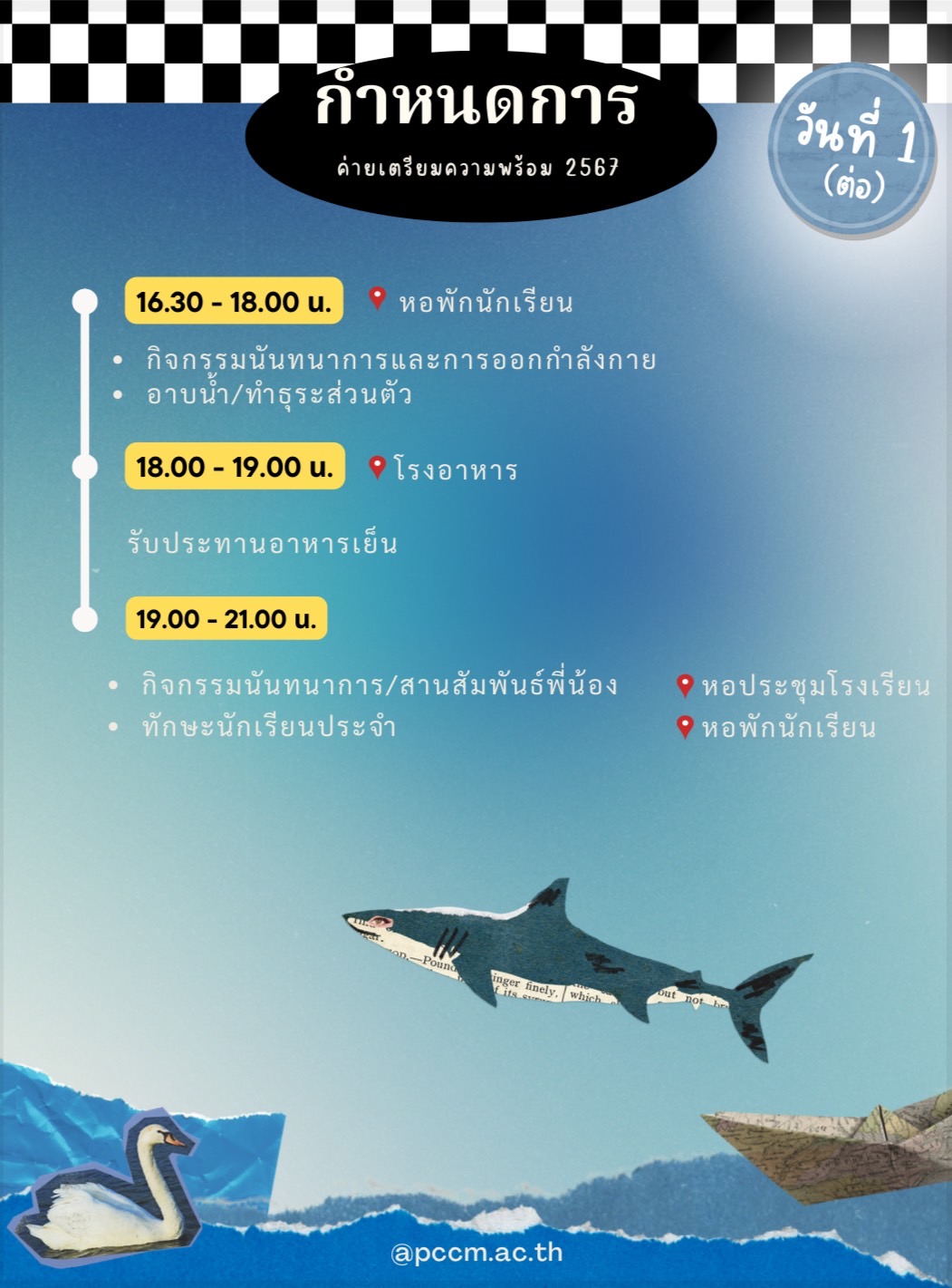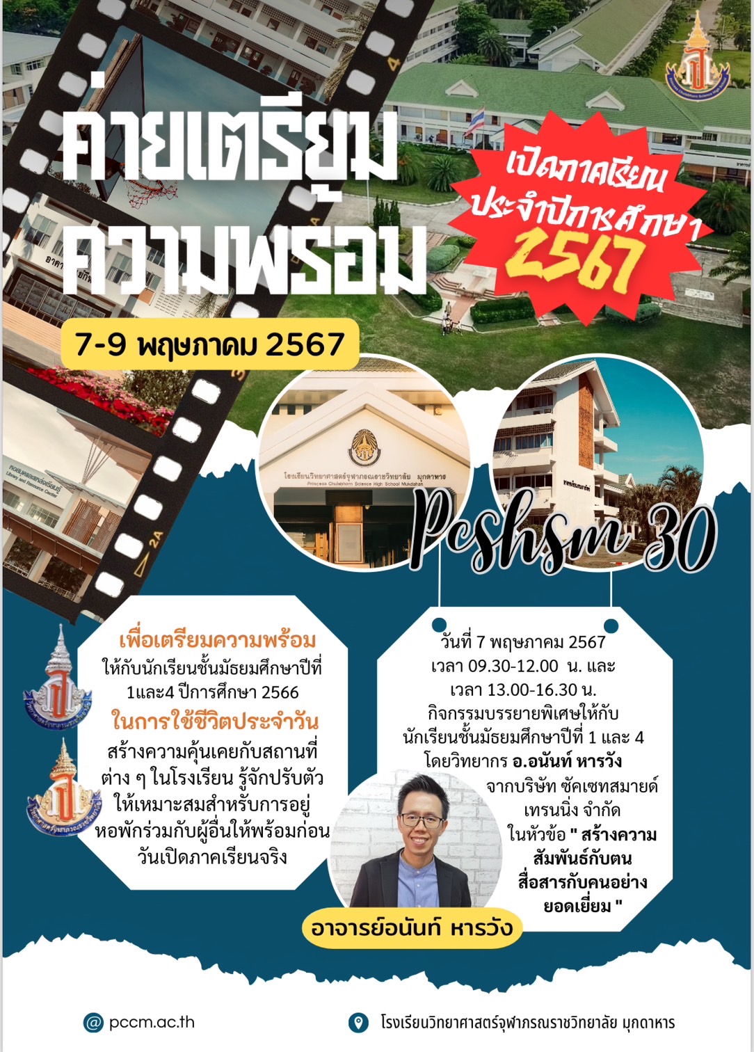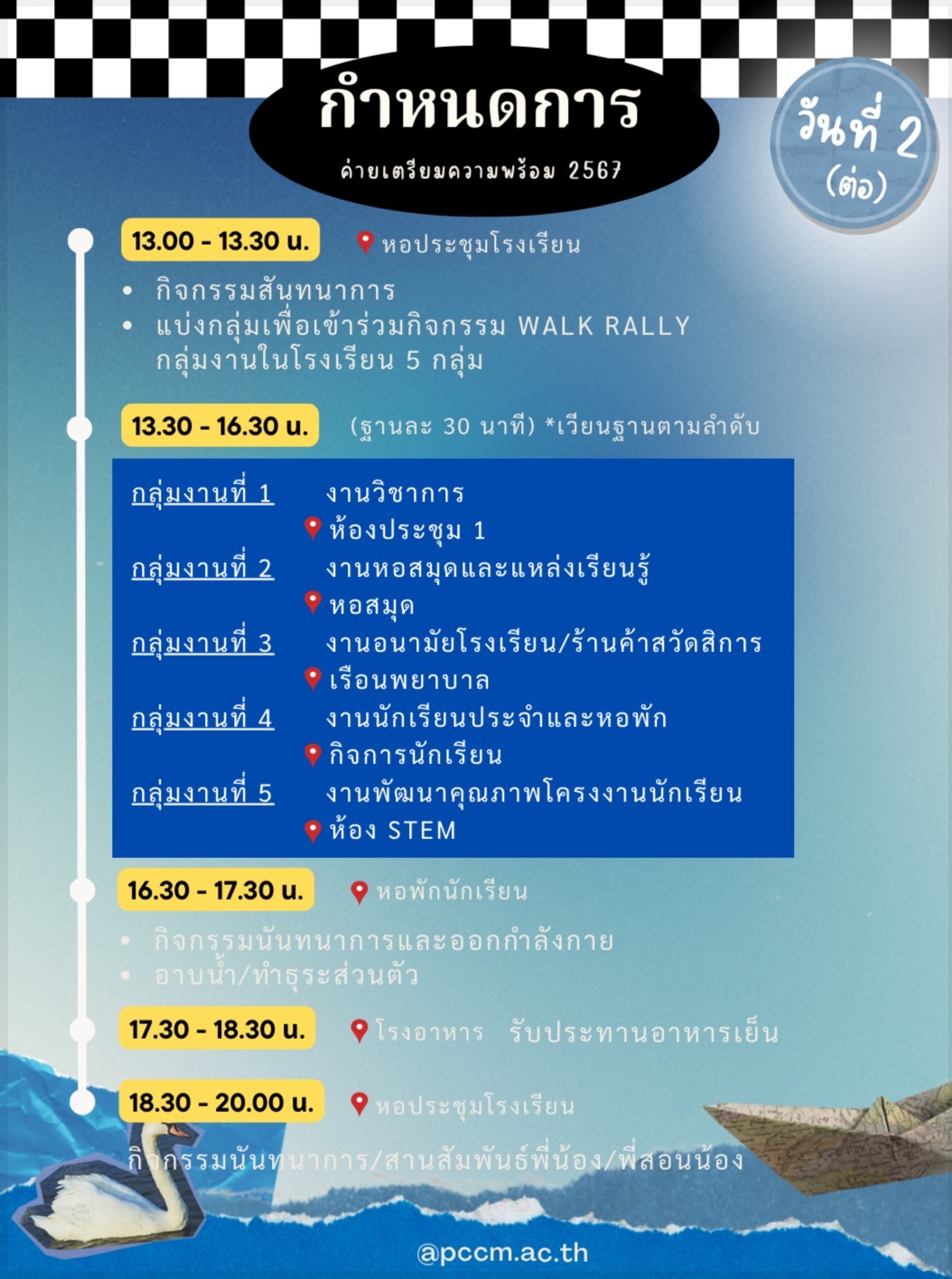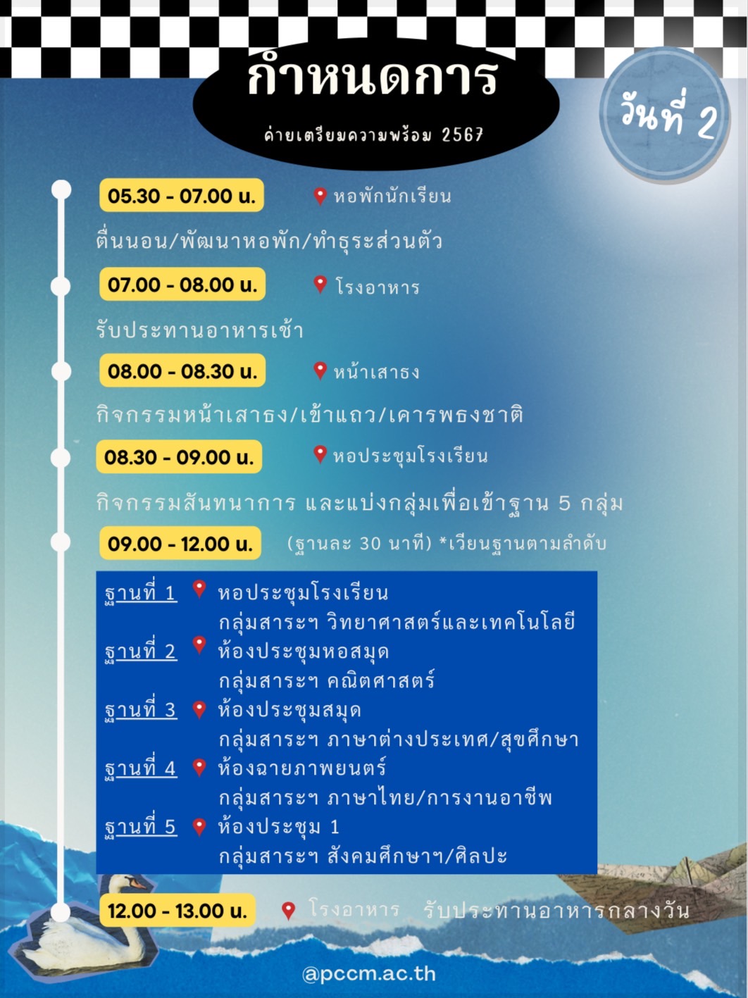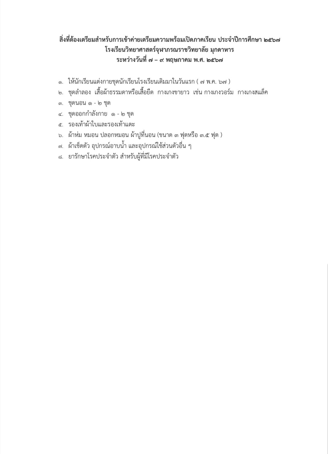 กำหนดการจัดกิจกรรมค่ายเตรียมความพร้อมก่อนเข้าเรียน ปีการศึกษา 2567