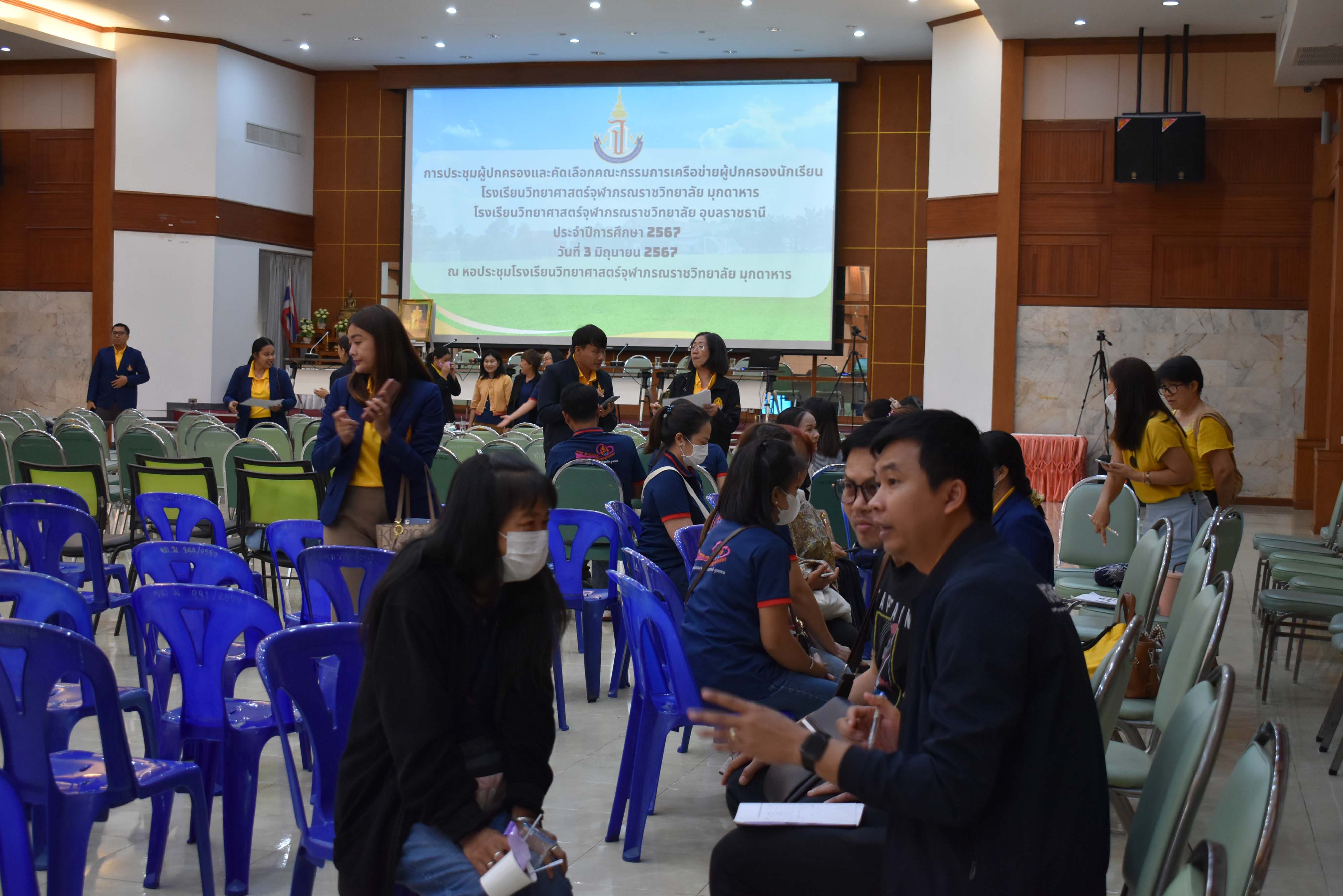 กิจกรรมการประชุมผู้ปกครองนักเรียน และคัดเลือกคณะกรรมการเครือข่ายผู้ปกครอง ประจำปีการศึกษา ๒๕๖๗ จัดขึ้นในวันจันทร์ที่ ๓ มิถุนายน ๒๕๖๗ เวลา ๑๓.๐๐ – ๑๖.๐๐ น.ณ หอประชุมโรงเรียนวิทยาศาสตร์จุฬาภรณราชวิทยาลัย มุกดาหาร