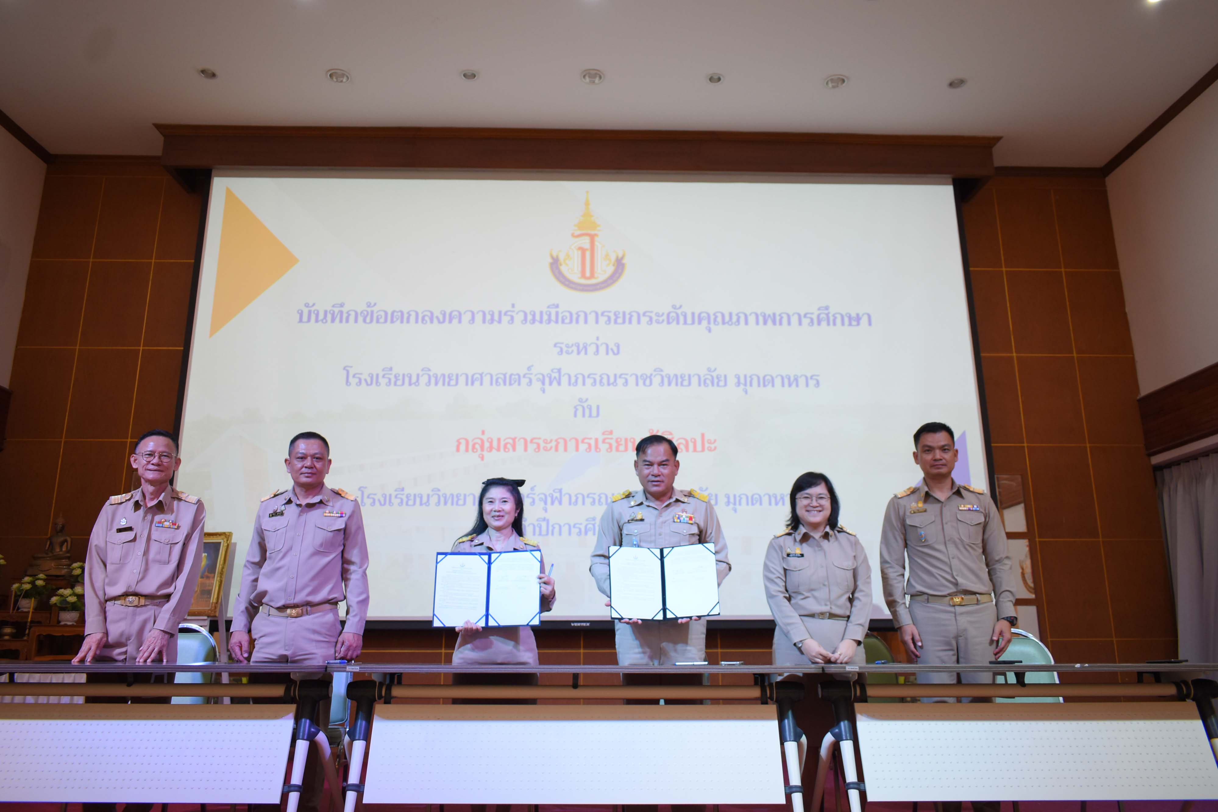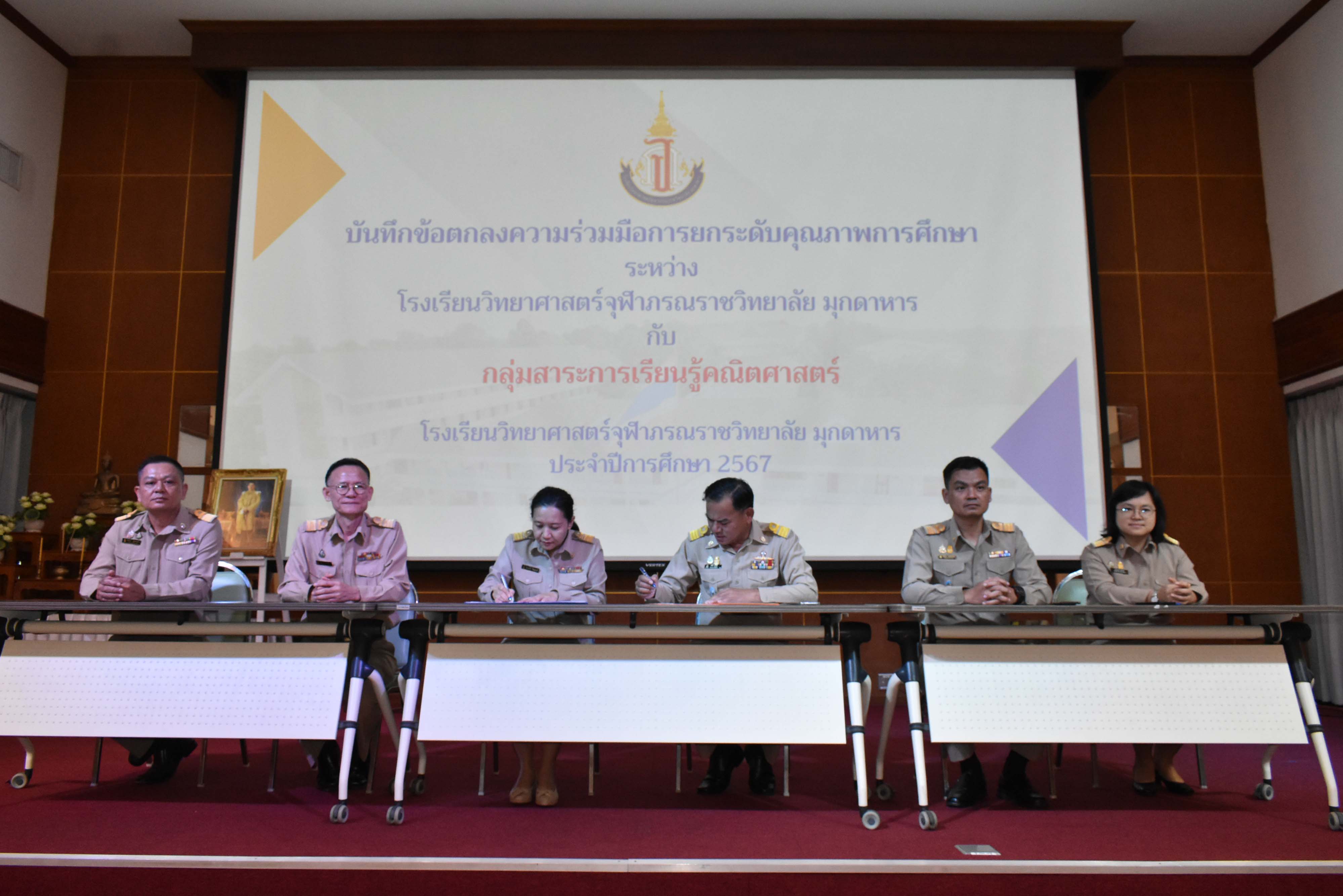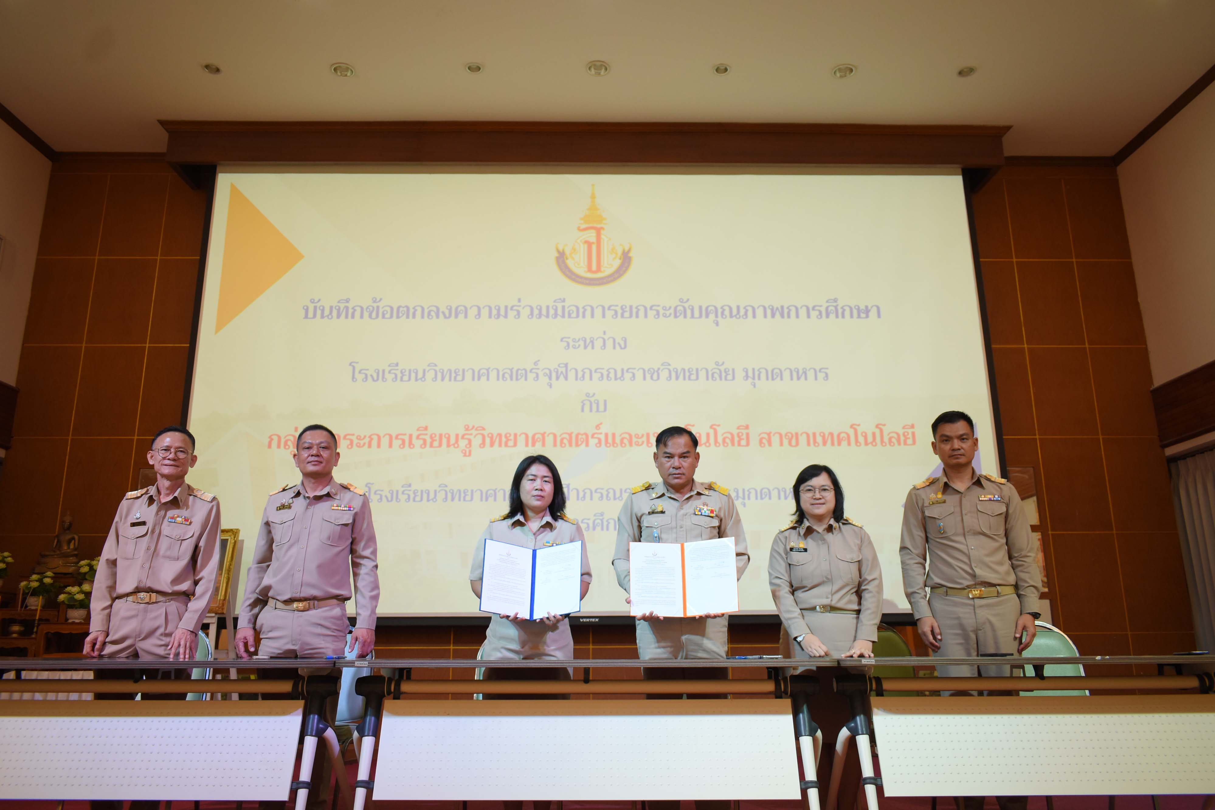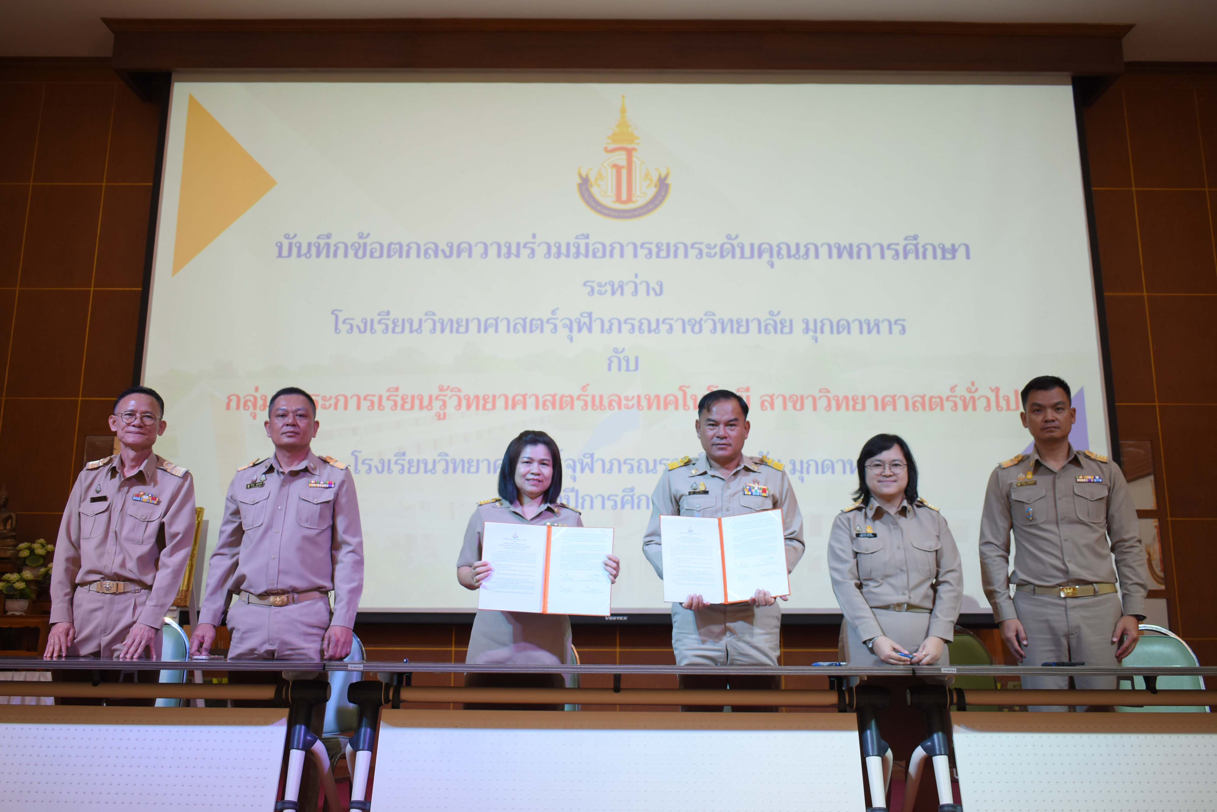 บันทึกข้อตกลงร่วมมือการยกระดับคุณภาพการศึกษาระหว่างโรงเรียนวิทยาศาสตร์จุฬาภรณราชวิทยาลัย มุกดาหาร กับกลุ่มสาระการเรียนรู้ฯ