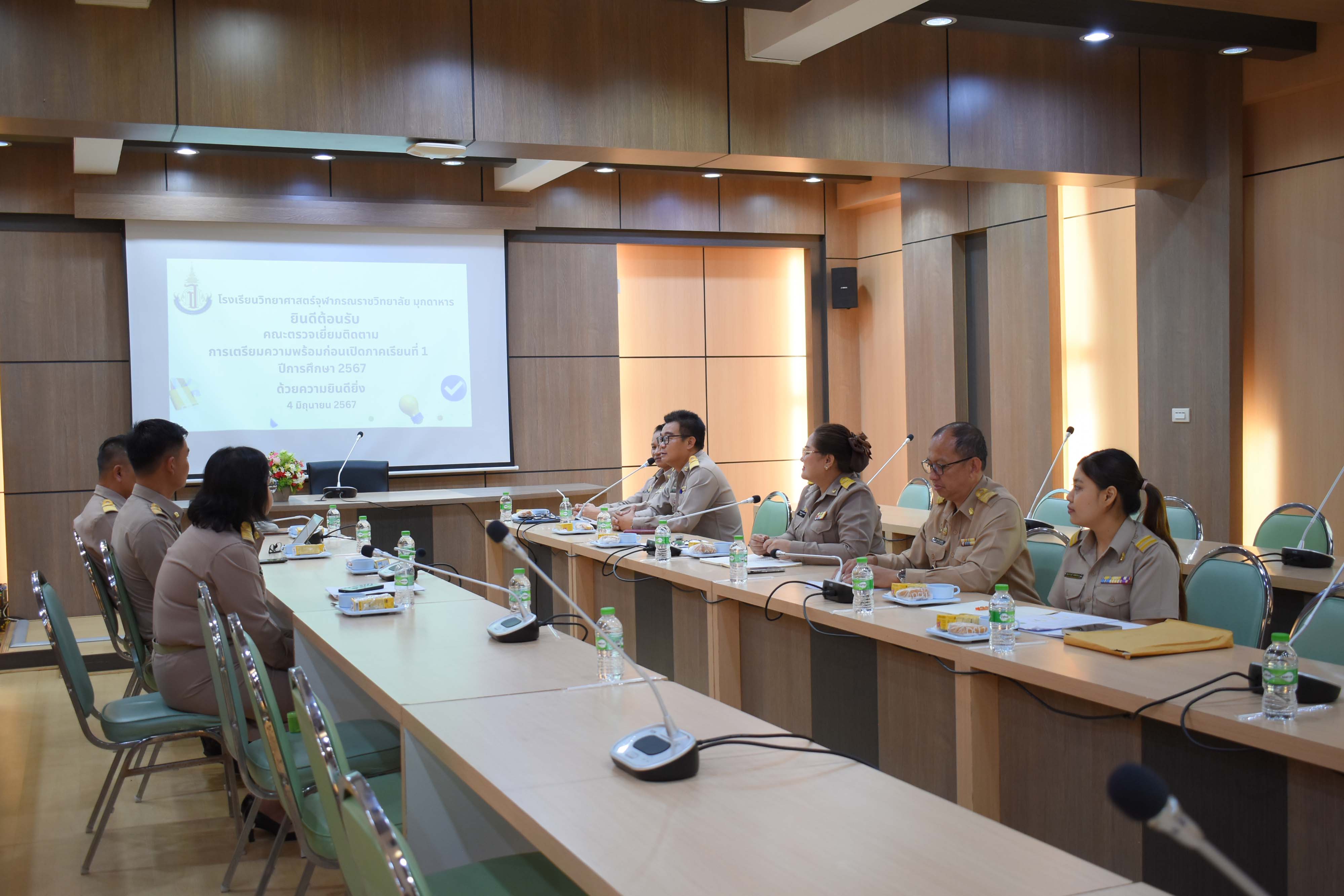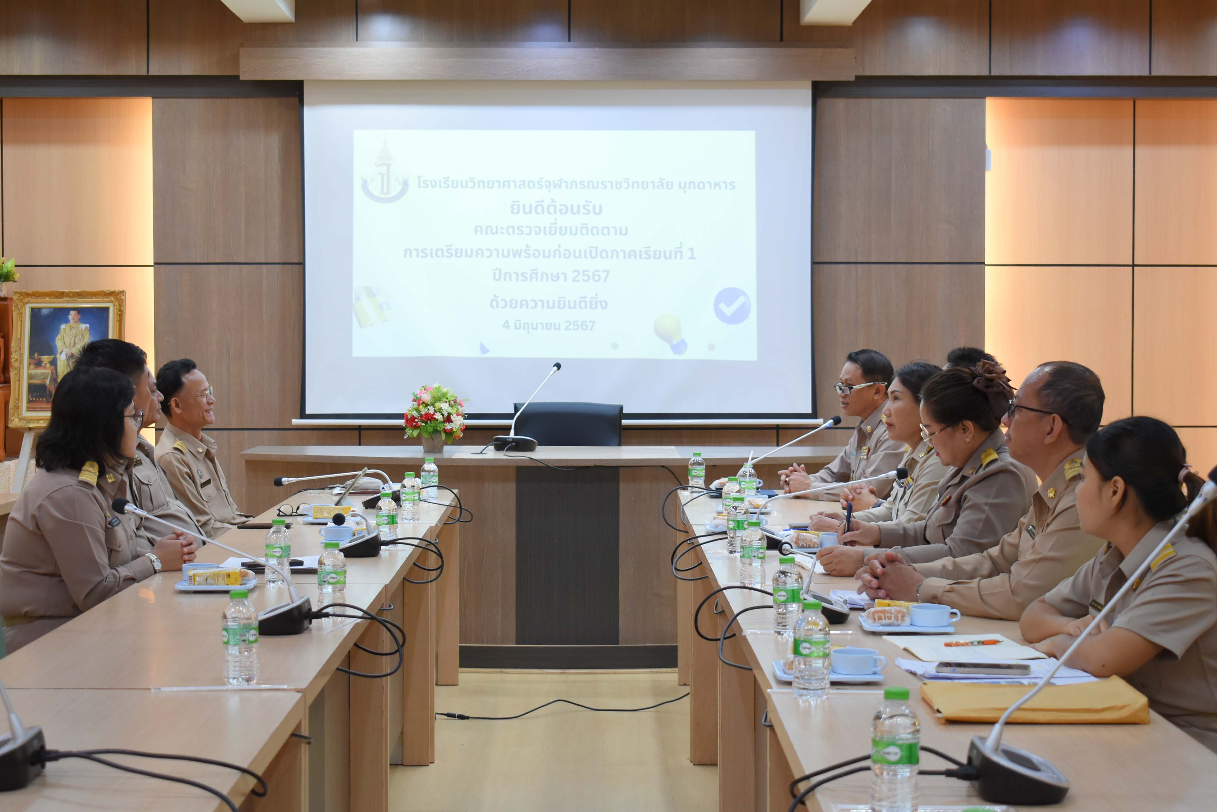 วันอังคารที่ 4 มิถุนายน 2567 เวลา 13.30 น. นายศุกดิ์ รุ่งแสง ผู้อำนวยการโรงเรียนวิทยาศาสตร์จุฬาภรณราชวิทยาลัย มุกดาหาร มอบหมายให้นายประกาศ อ่อนตาม รองผู้อำนวยการโรงเรียนฯพร้อมคณะผู้บริหาร ครู ร่วมต้อนรับคณะผู้ตรวจเยี่ยมติดตามการเตรียมความพร้อมก่อนเปิดภาคเรียนที่ 1/2567 จากสำนักงานเขตพื้นที่การศึกษามัธยมศึกษามุกดาหาร ณ ห้องประชุม 2