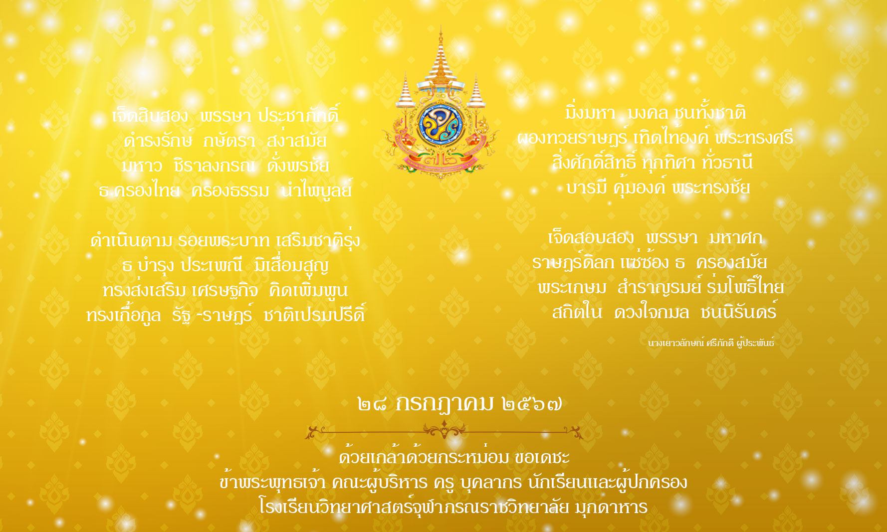 บทประพันธ์เทิดพระเกียรติ เนื่องในโอกาสมหามงคลเฉลิมพระชนมพรรษา พระบาทสมเด็จพระเจ้าอยู่หัว ทรงเจริญพระชนมพรรษา ๖ รอบ