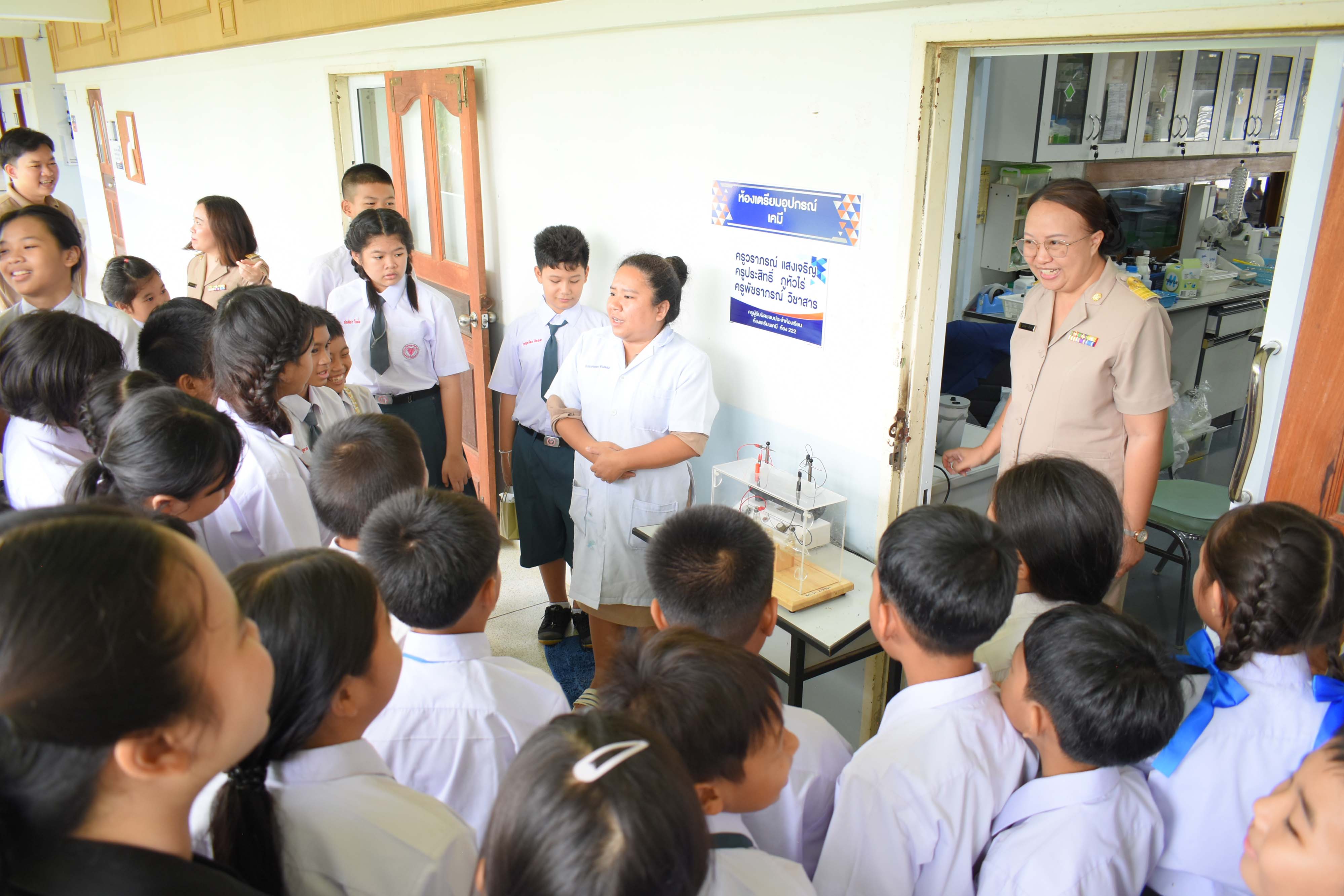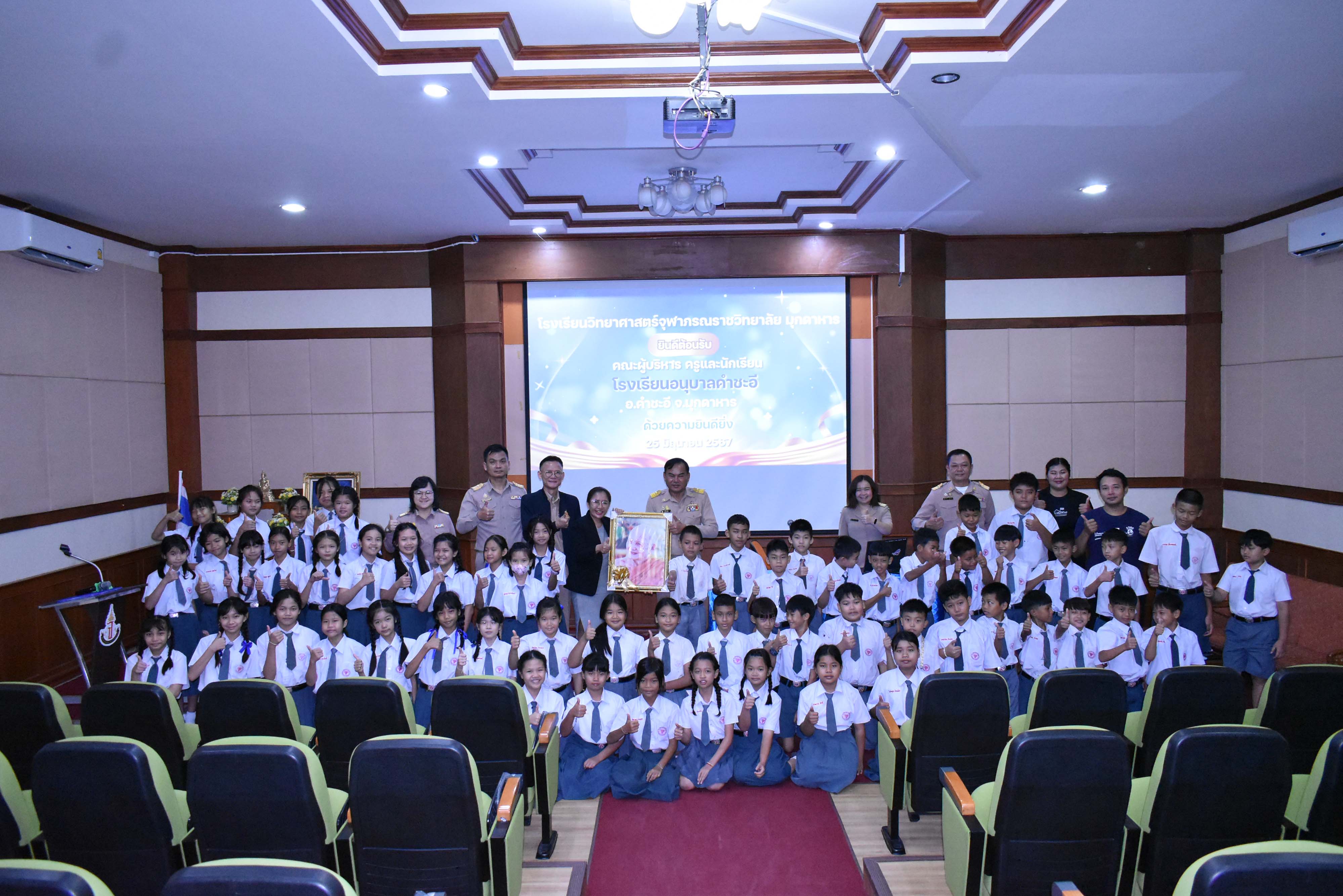 ในวันอังคารที่ 25 มิถุนายน พ.ศ. 2567 เวลา 09.00 น. นายศักดิ์ รุ่งแสง ผู้อำนวยการโรงเรียนวิทยาศาสตร์จุฬาภรราชวิทยาลัย มุกดาหาร พร้อมด้วยรองผู้อำนวยการทั้ง 4 กลุ่มงานร่วมต้อนรับคณะผู้บริหาร ครู และนักเรียน จากโรงเรียนอนุบาลคำชะอี จังหวัดมุกดาหาร ที่เข้าทัศนศึกษาเยี่ยมชมบรรยากาศในการจัดการเรียนการสอน ของโรงเรียนวิทยาศาสตร์จุฬาภรราชวิทยาลัย มุกดาหาร ณ ห้องสโลป อาคารปฎิบัติการคอมพิวเตอร์