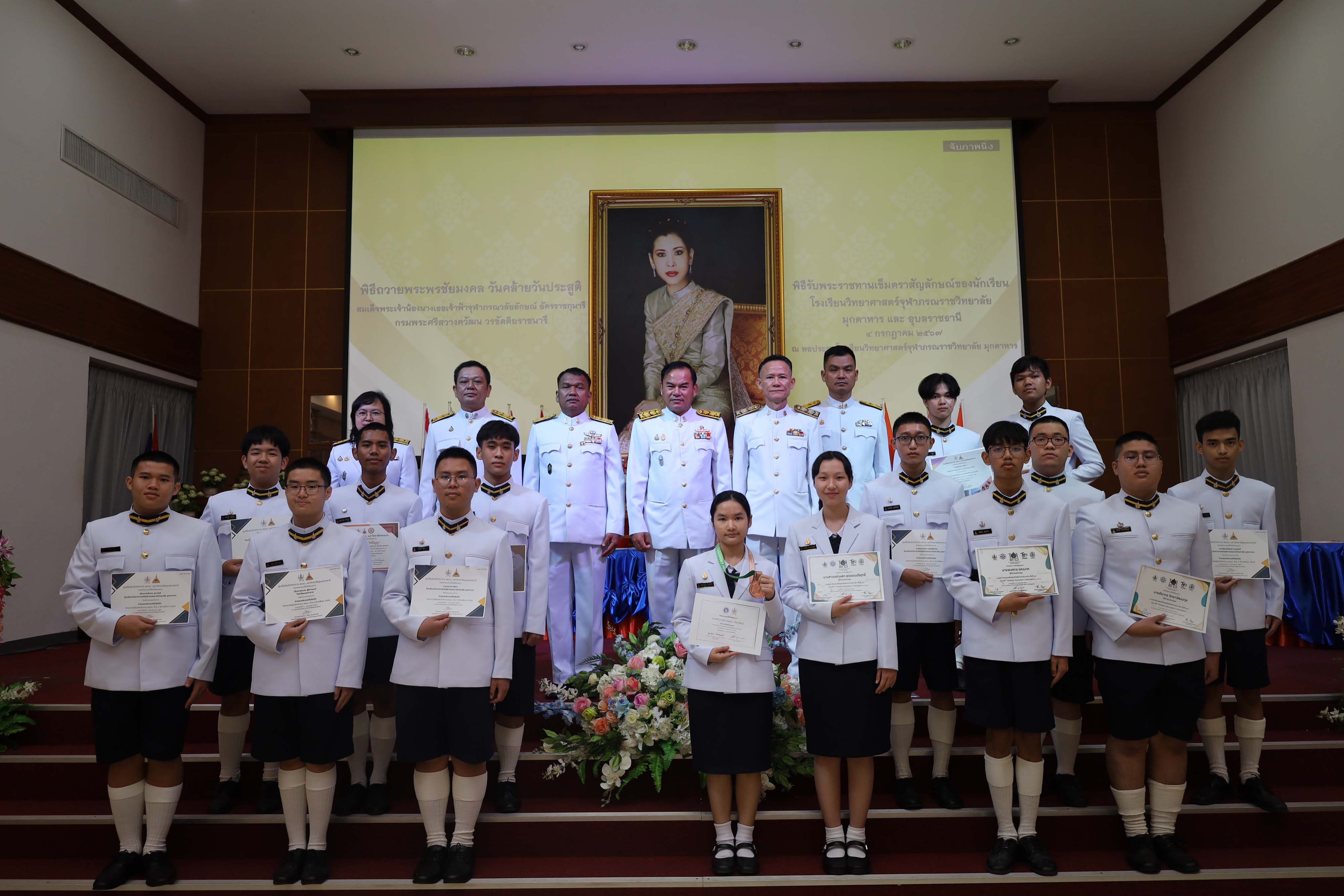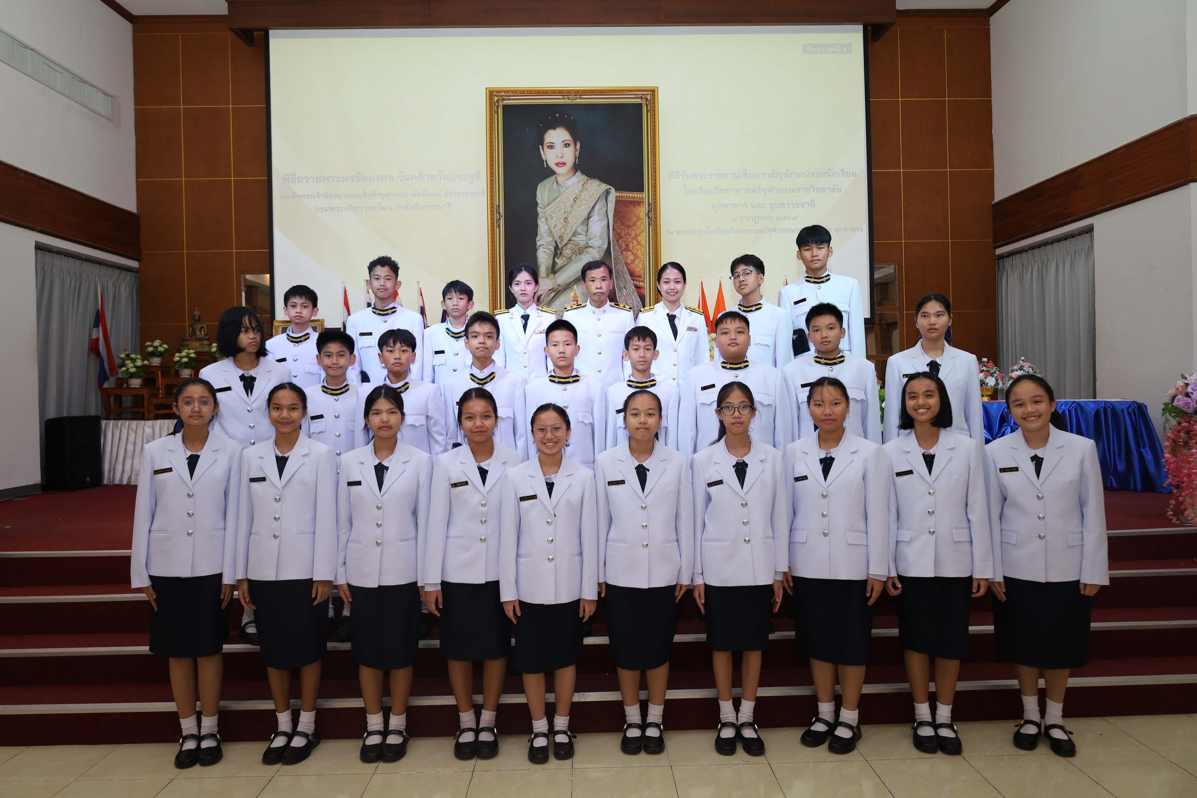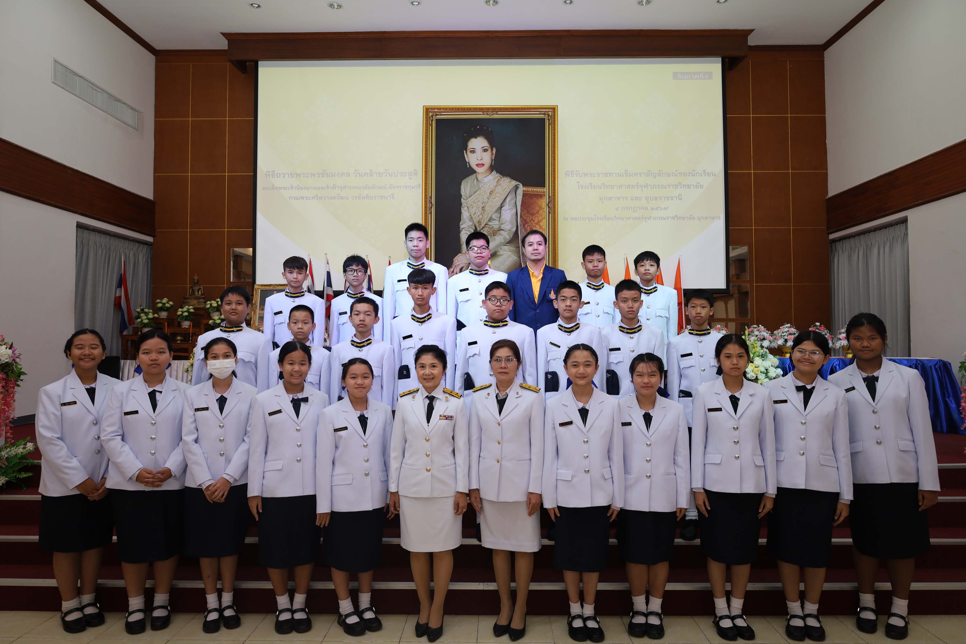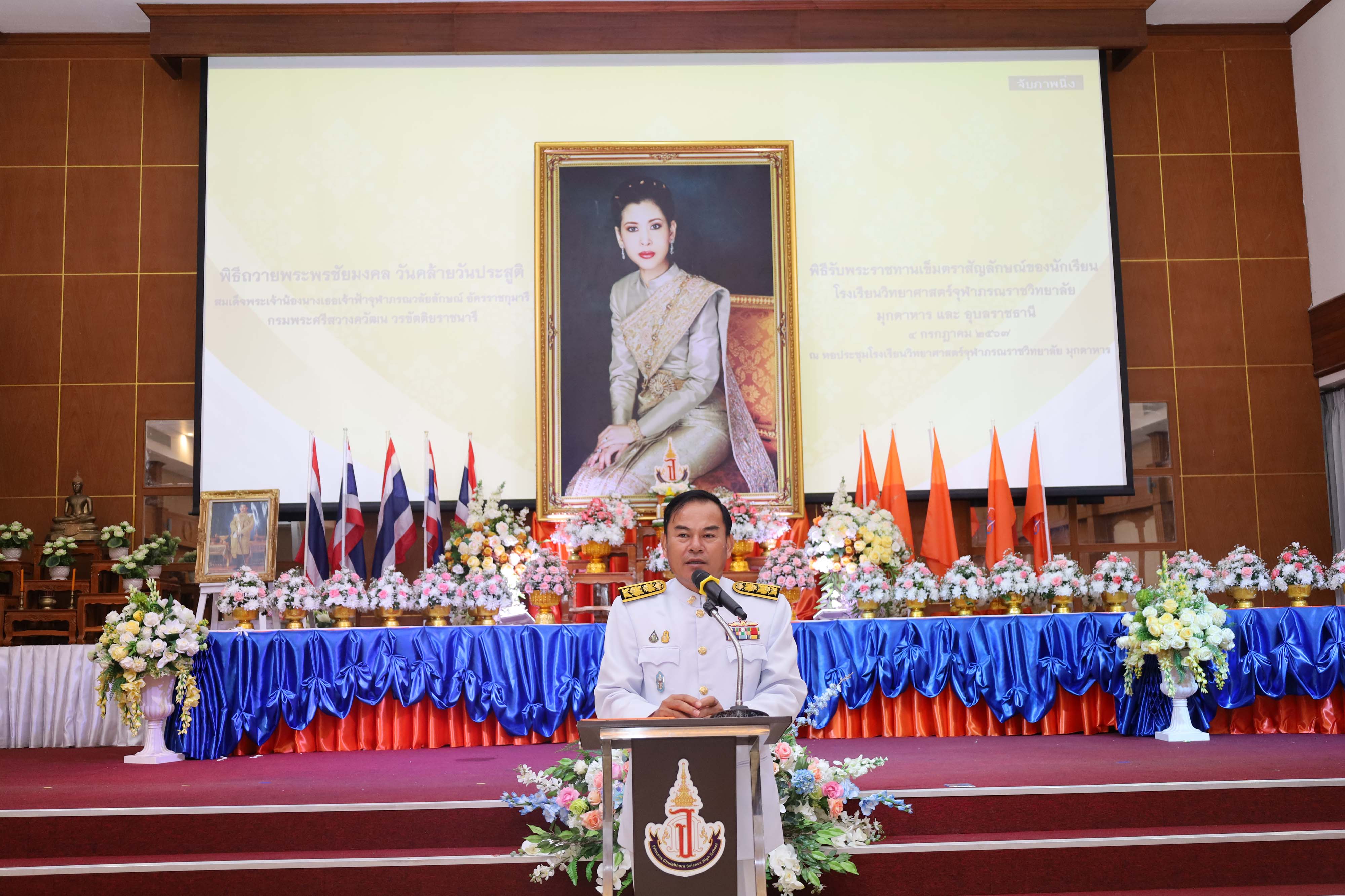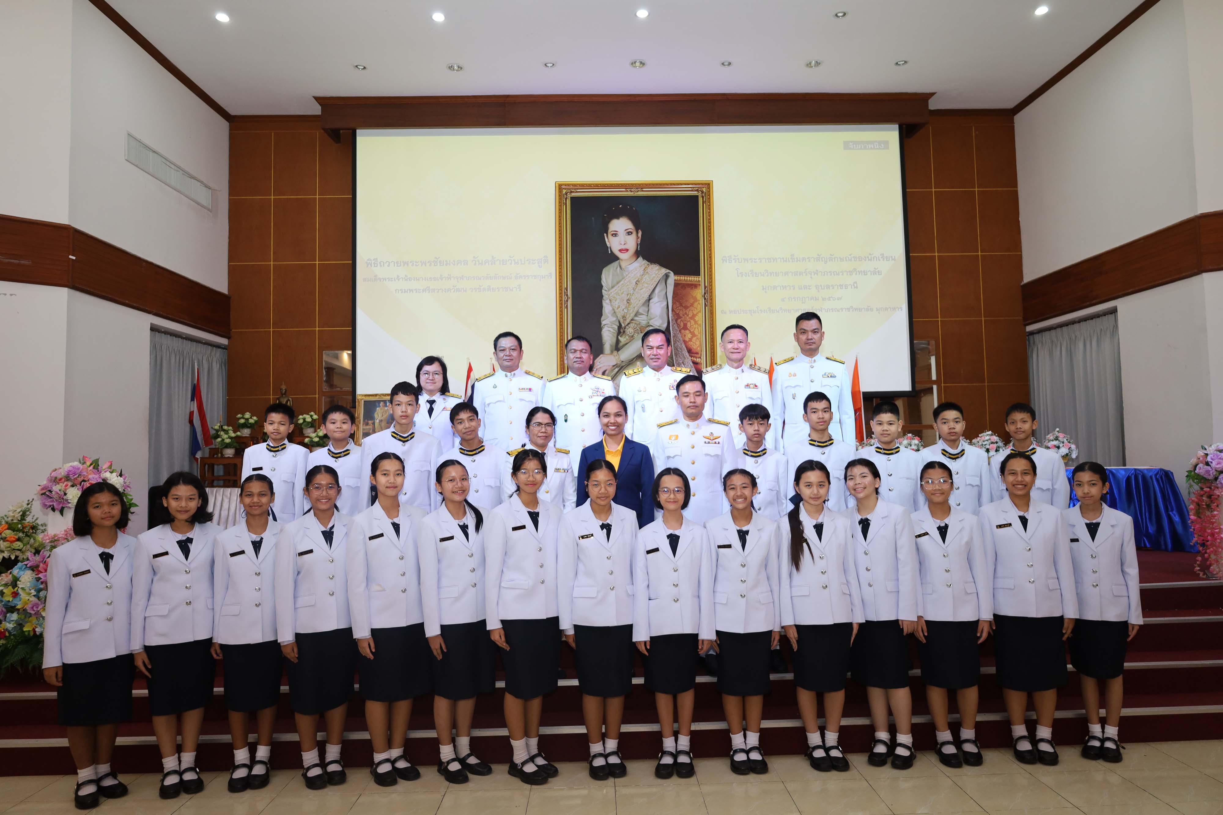 พิธีถวายพระพรชัยมงคล วันคล้ายวันประสูติสมเด็จพระน้องนางเธอเจ้าฟ้าจุฬาภรณวลัยลักษณ์ อัครราชกุมารี กรมพระศรีสวางควัฒน วรขัตติยราชนารี และพิธีรับพระราชทานเข็มตราสัญลักษณ์ของนักเรียน โรงเรียนวิทยาศาสตร์จุฬาภรณราชวิทยาลัย มุกดาหาร และโรงเรียนวิทยาศาสตร์จุฬาภรณราชวิทยาลัย อุบลราชธานี เนื่องในวันวันจุฬาภรณ์ ประจำปีการศึกษา 2567 จัดขึ้นในวันพฤหัสบดีที่ 4 กรกฎาคม 2567 เวลา 08.00-12.00 น. ณ หอประชุมโรงเรียนวิทยาศาสตร์จุฬาภรณราชวิทยาลัย มุกดาหาร