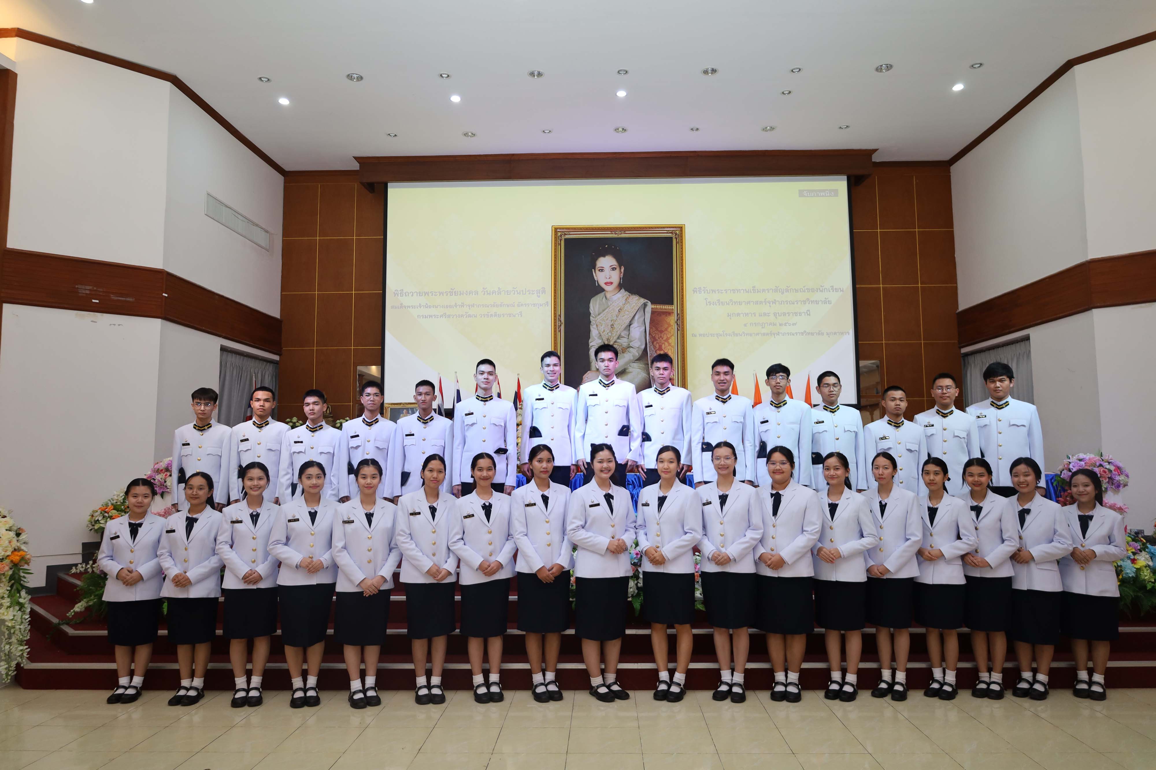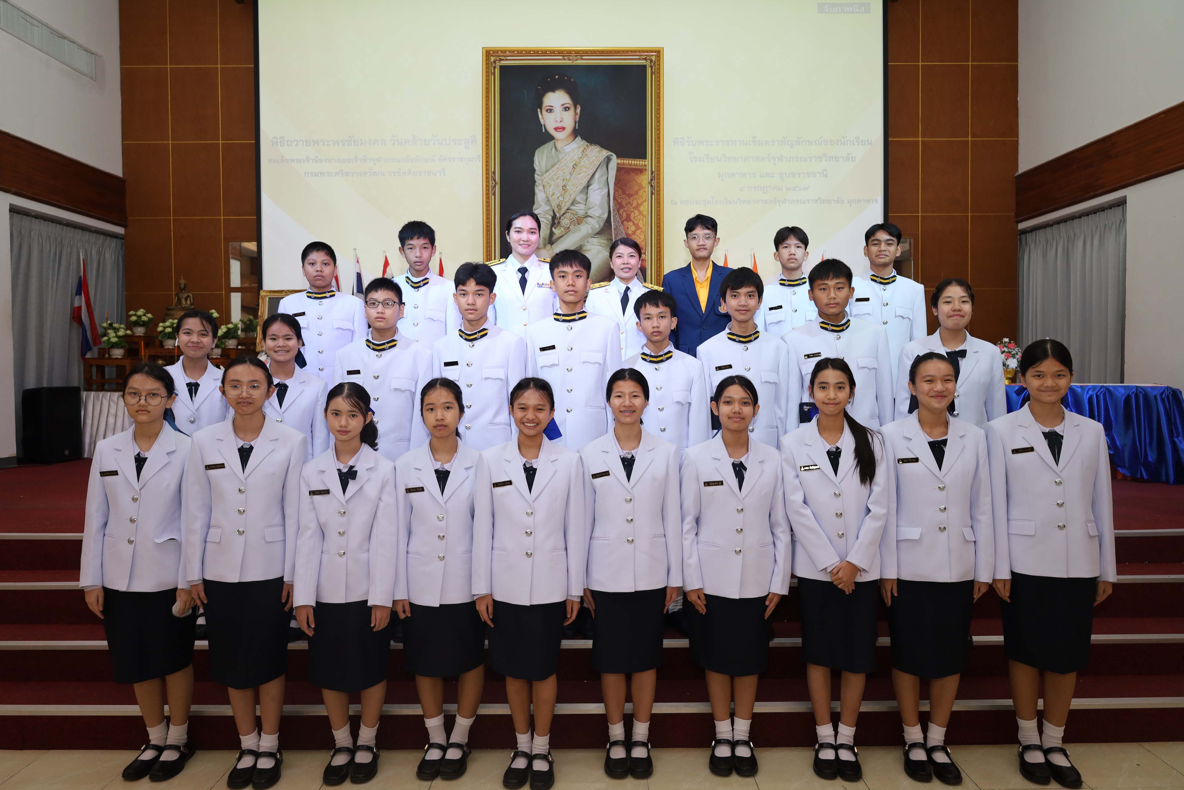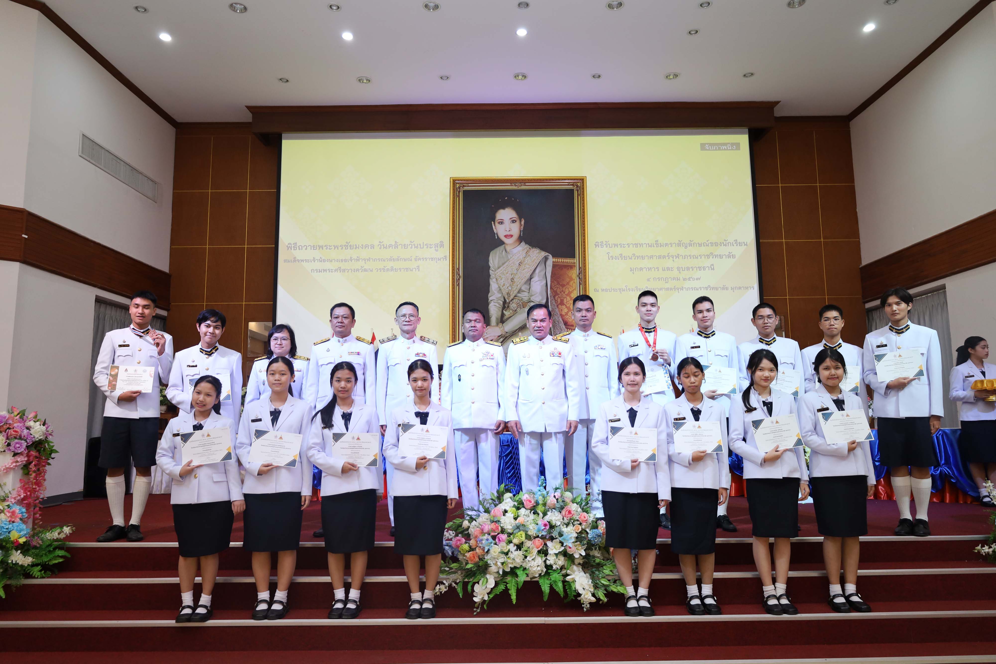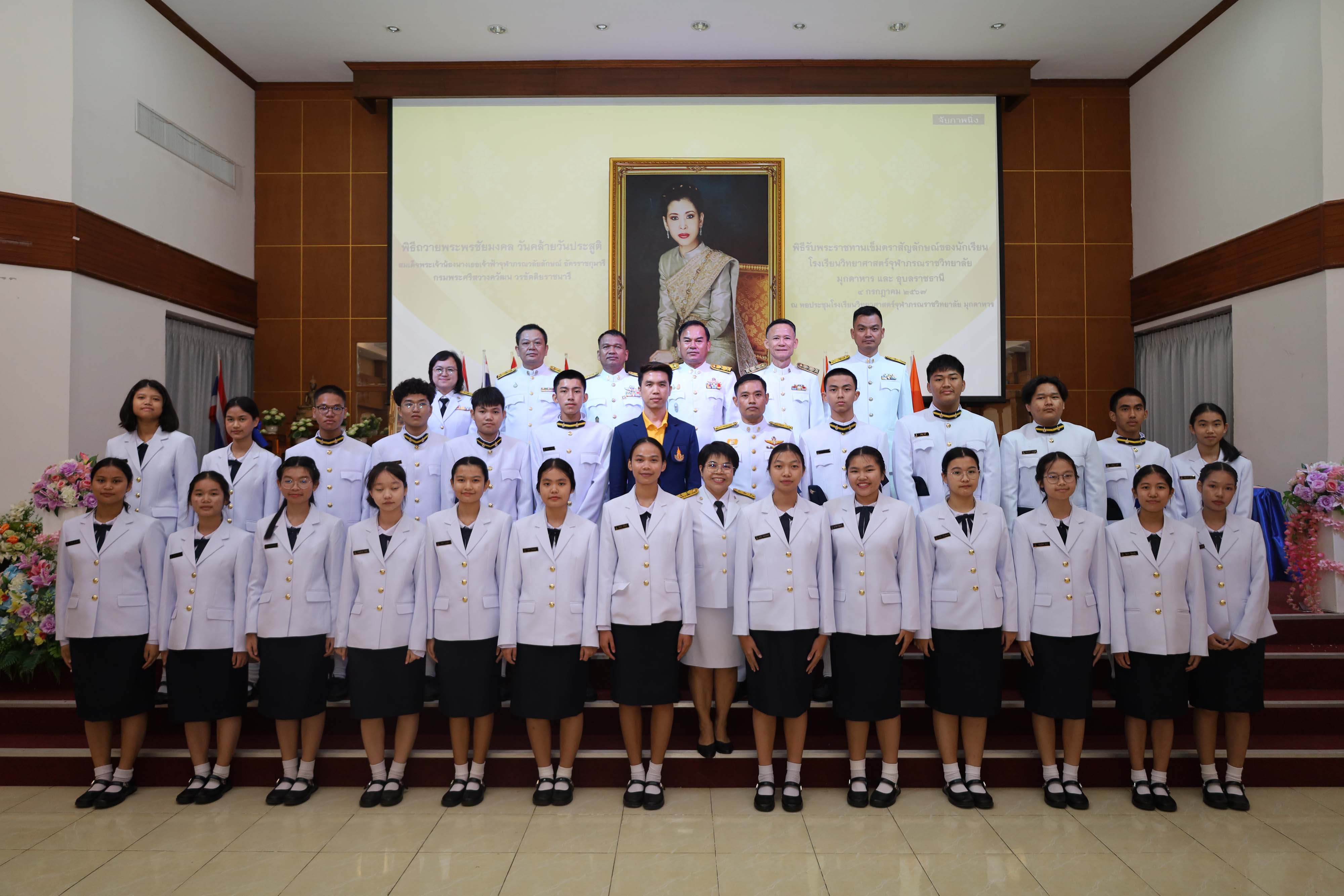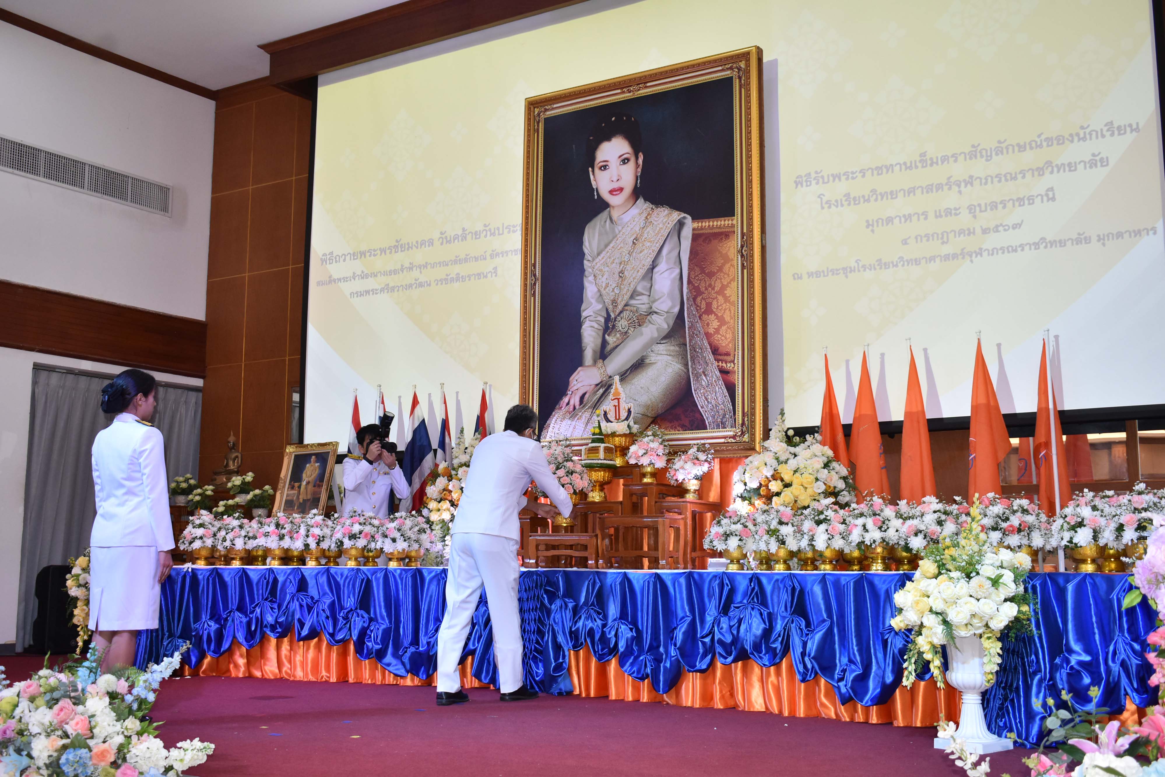 พิธีถวายพระพรชัยมงคล วันคล้ายวันประสูติสมเด็จพระน้องนางเธอเจ้าฟ้าจุฬาภรณวลัยลักษณ์ อัครราชกุมารี กรมพระศรีสวางควัฒน วรขัตติยราชนารี และพิธีรับพระราชทานเข็มตราสัญลักษณ์ของนักเรียน โรงเรียนวิทยาศาสตร์จุฬาภรณราชวิทยาลัย มุกดาหาร และโรงเรียนวิทยาศาสตร์จุฬาภรณราชวิทยาลัย อุบลราชธานี เนื่องในวันวันจุฬาภรณ์ ประจำปีการศึกษา 2567 จัดขึ้นในวันพฤหัสบดีที่ 4 กรกฎาคม 2567 เวลา 08.00-12.00 น. ณ หอประชุมโรงเรียนวิทยาศาสตร์จุฬาภรณราชวิทยาลัย มุกดาหาร