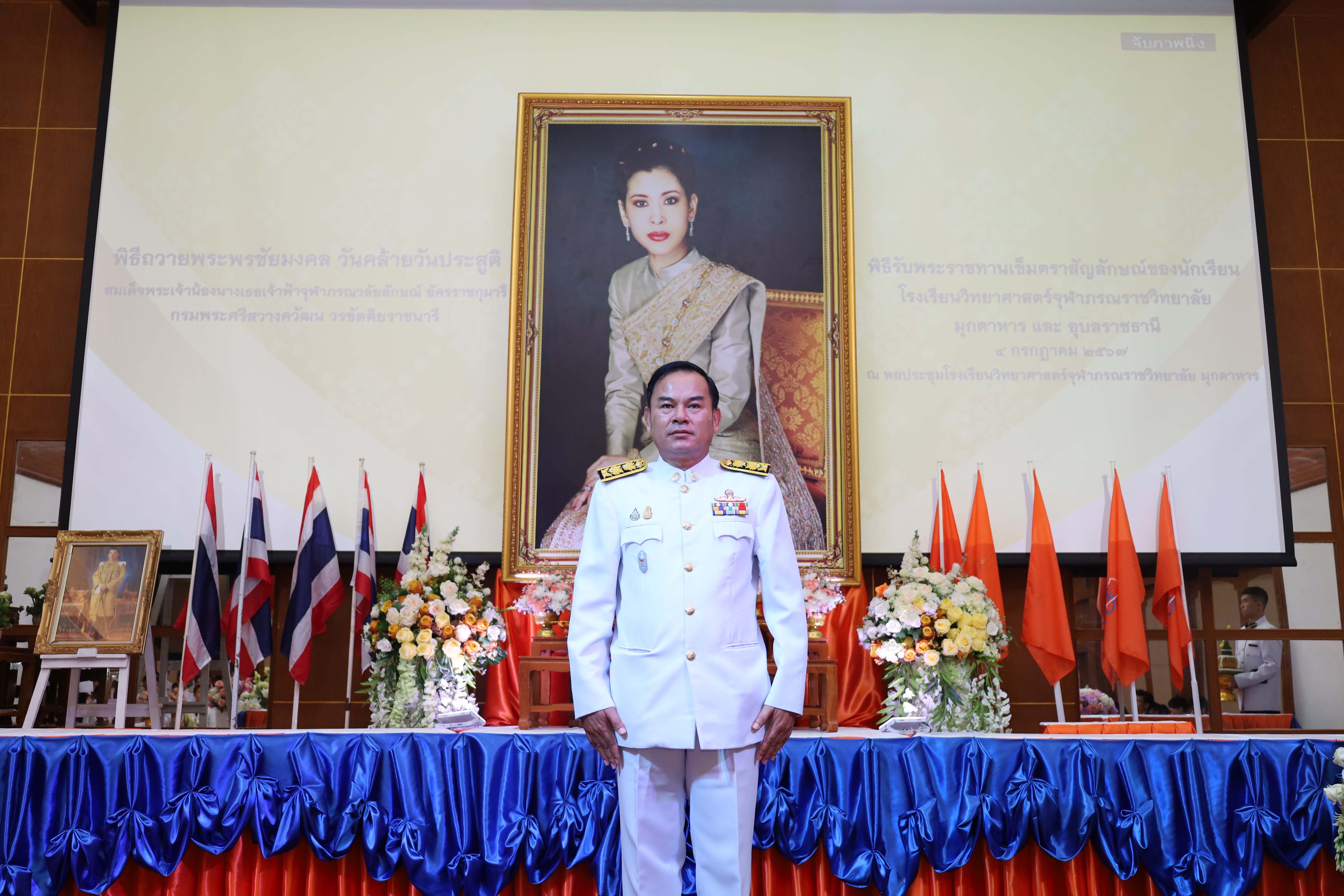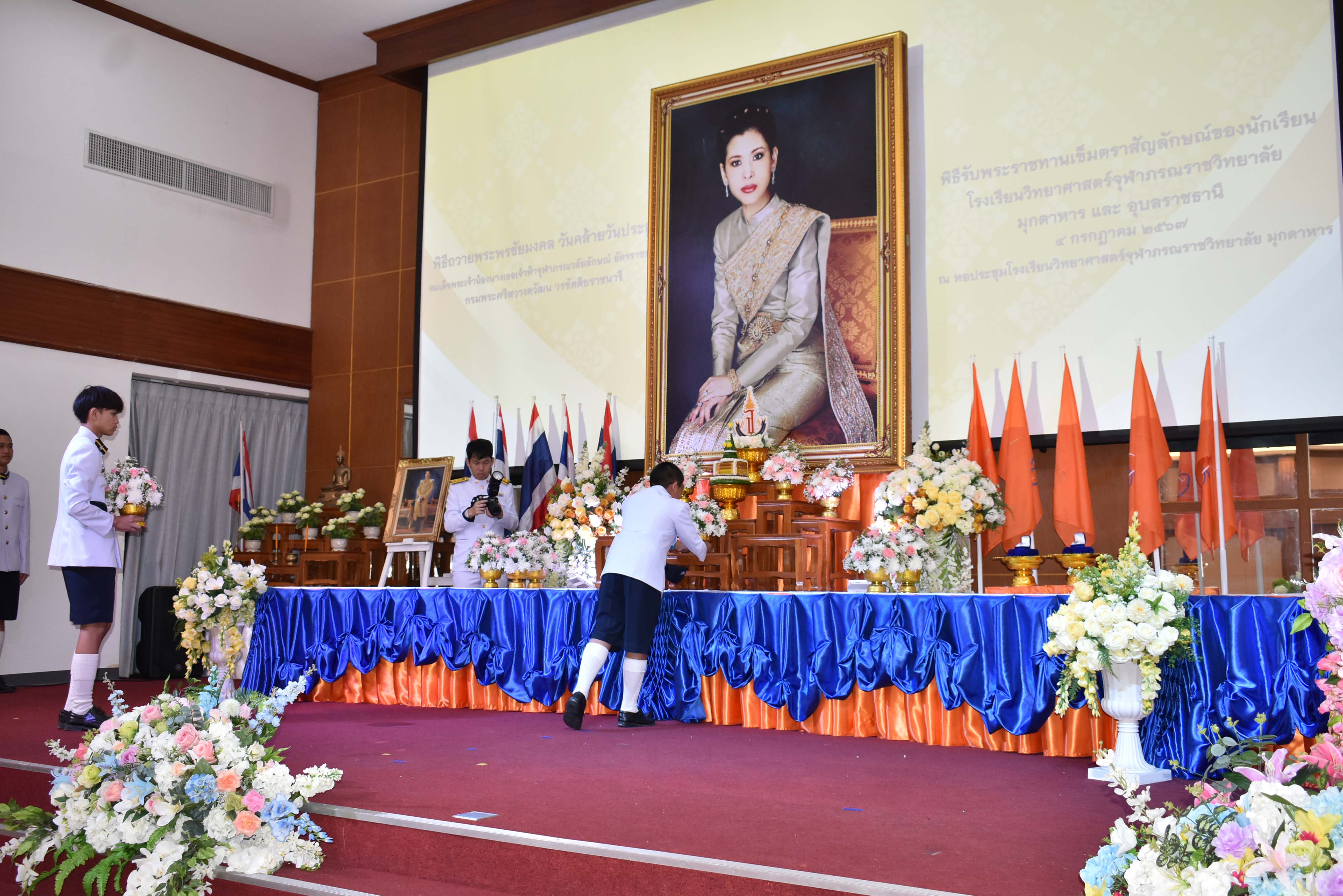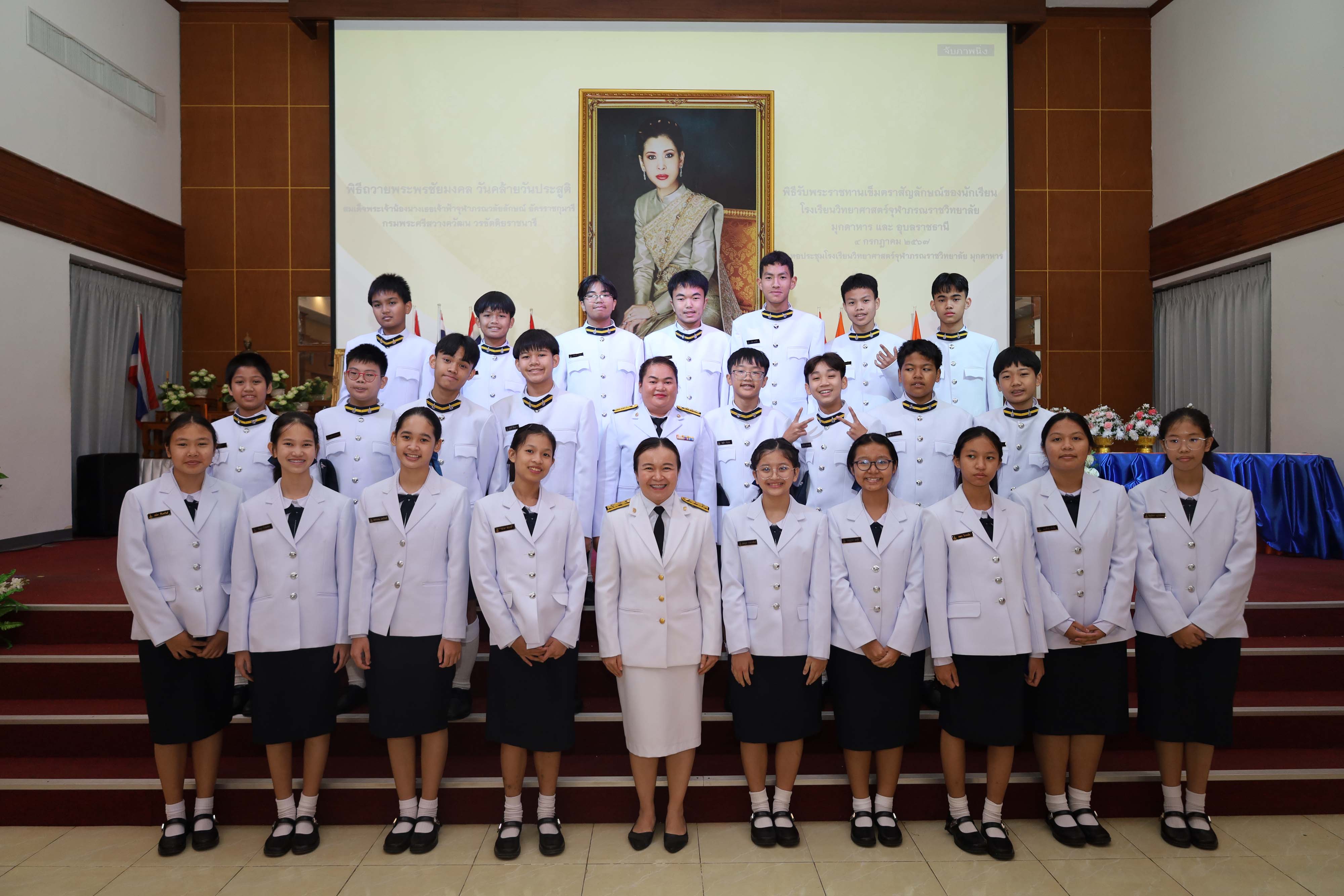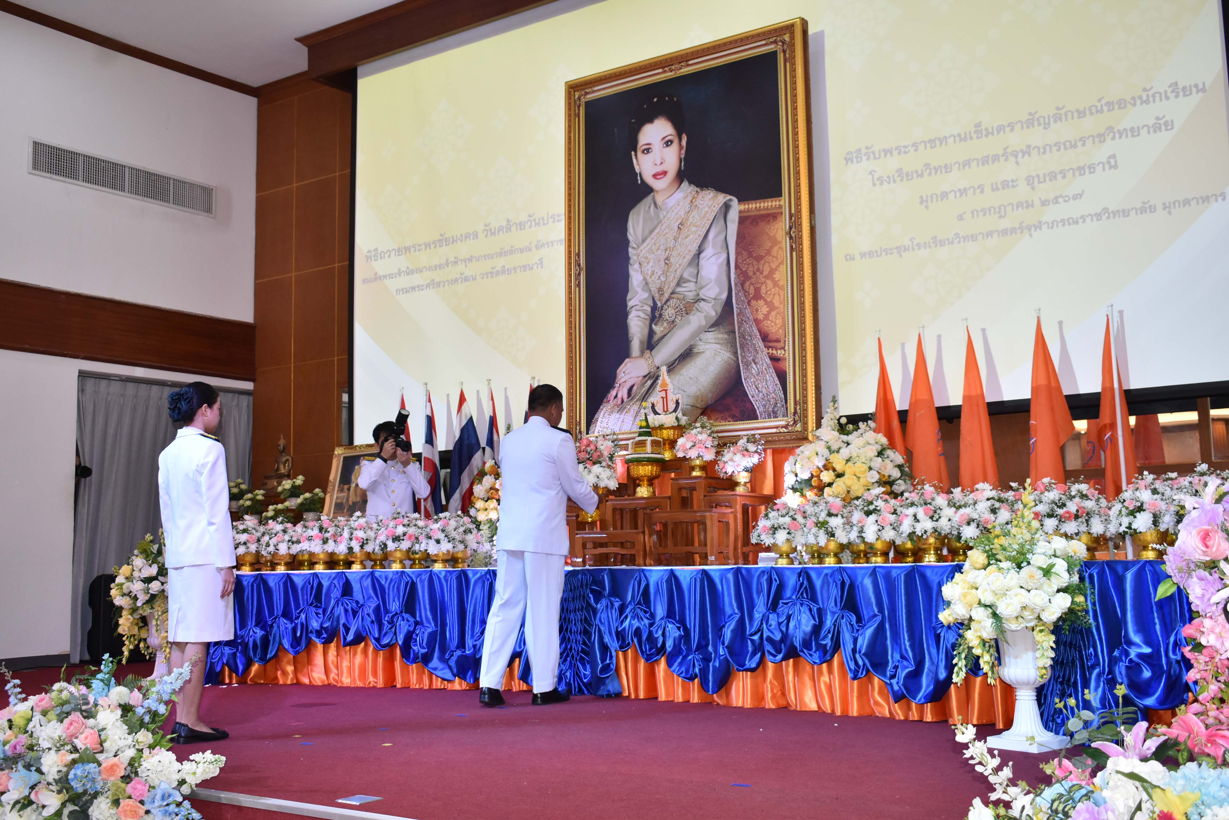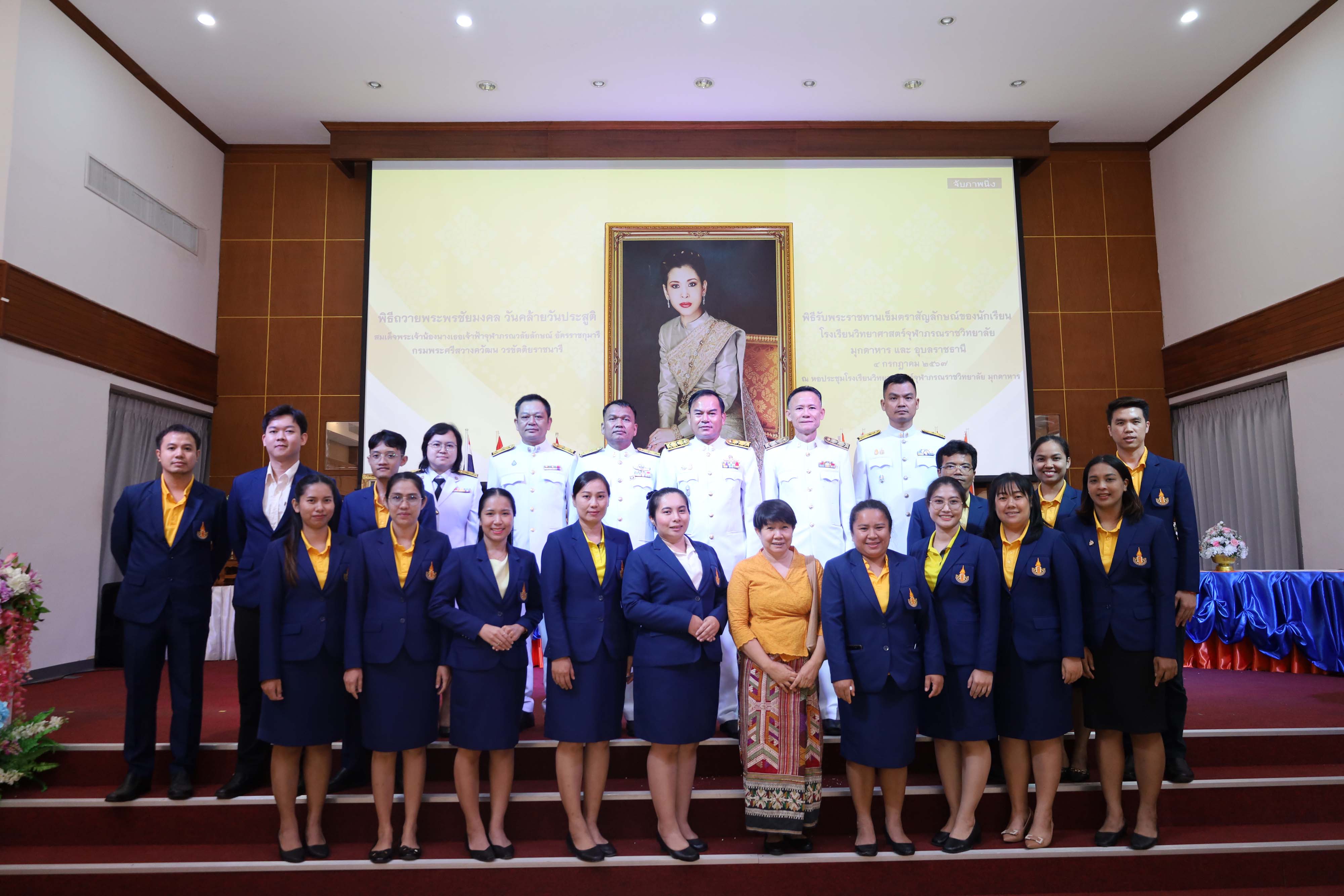 พิธีถวายพระพรชัยมงคล วันคล้ายวันประสูติสมเด็จพระน้องนางเธอเจ้าฟ้าจุฬาภรณวลัยลักษณ์ อัครราชกุมารี กรมพระศรีสวางควัฒน วรขัตติยราชนารี และพิธีรับพระราชทานเข็มตราสัญลักษณ์ของนักเรียน โรงเรียนวิทยาศาสตร์จุฬาภรณราชวิทยาลัย มุกดาหาร และโรงเรียนวิทยาศาสตร์จุฬาภรณราชวิทยาลัย อุบลราชธานี เนื่องในวันวันจุฬาภรณ์ ประจำปีการศึกษา 2567 จัดขึ้นในวันพฤหัสบดีที่ 4 กรกฎาคม 2567 เวลา 08.00-12.00 น. ณ หอประชุมโรงเรียนวิทยาศาสตร์จุฬาภรณราชวิทยาลัย มุกดาหาร