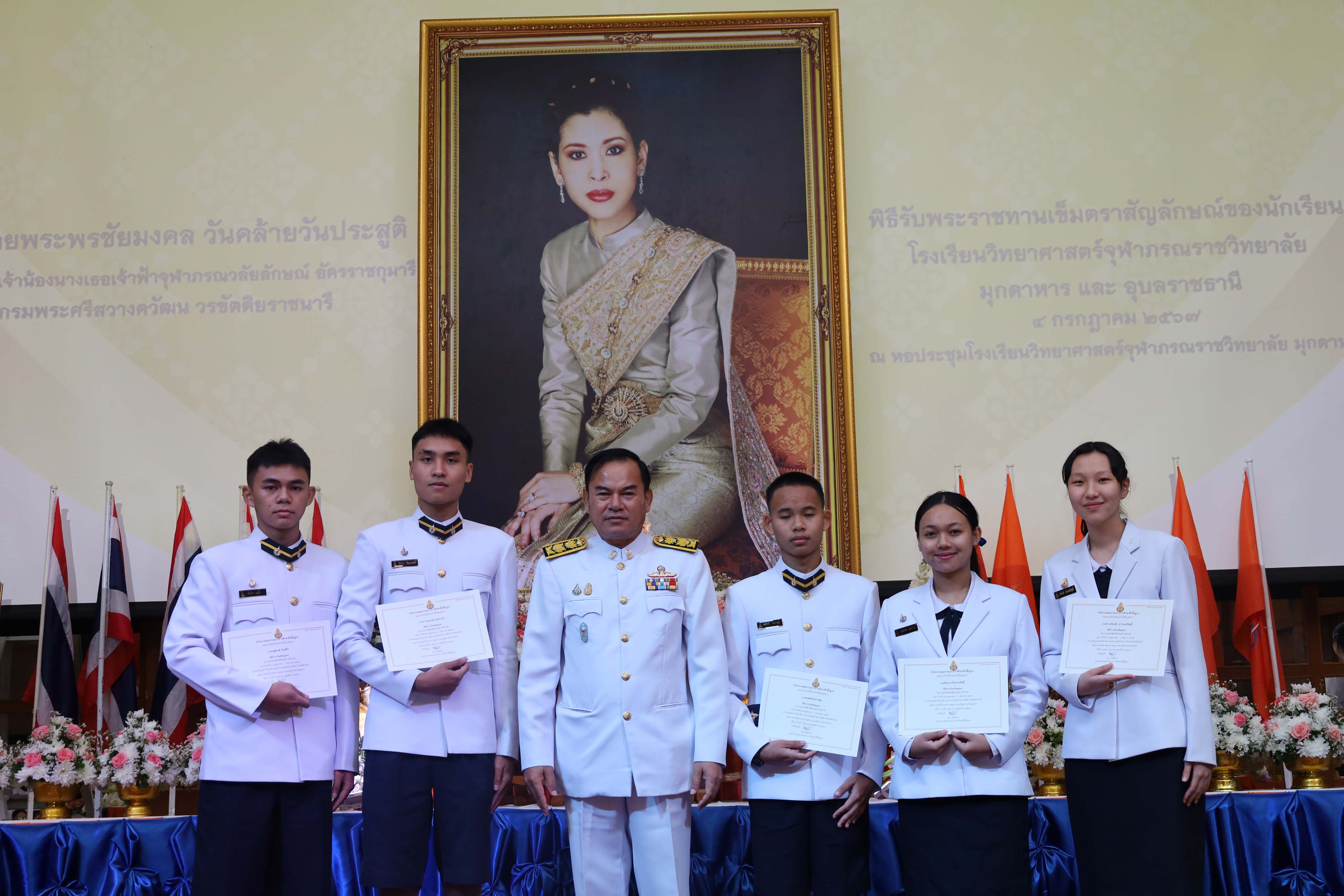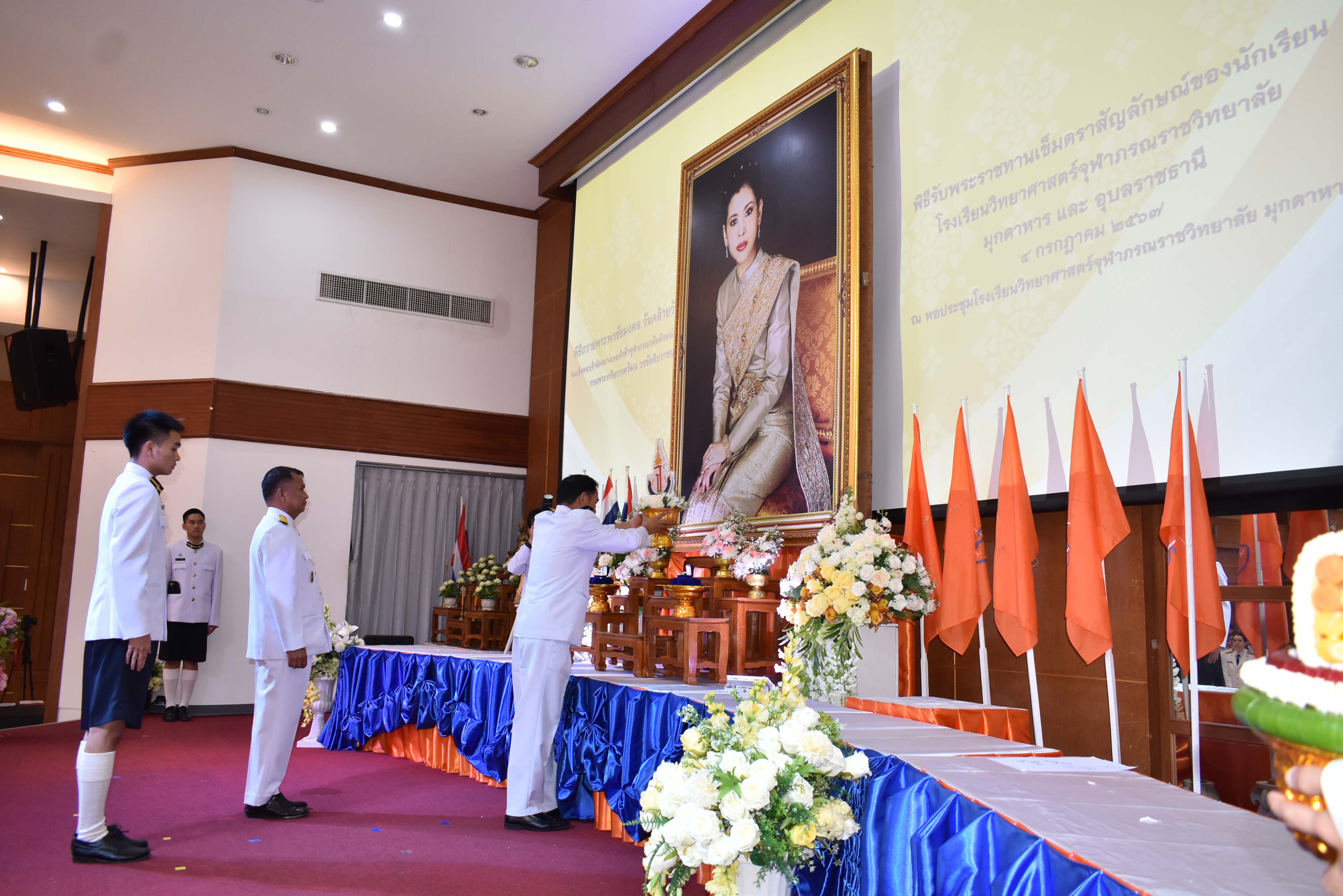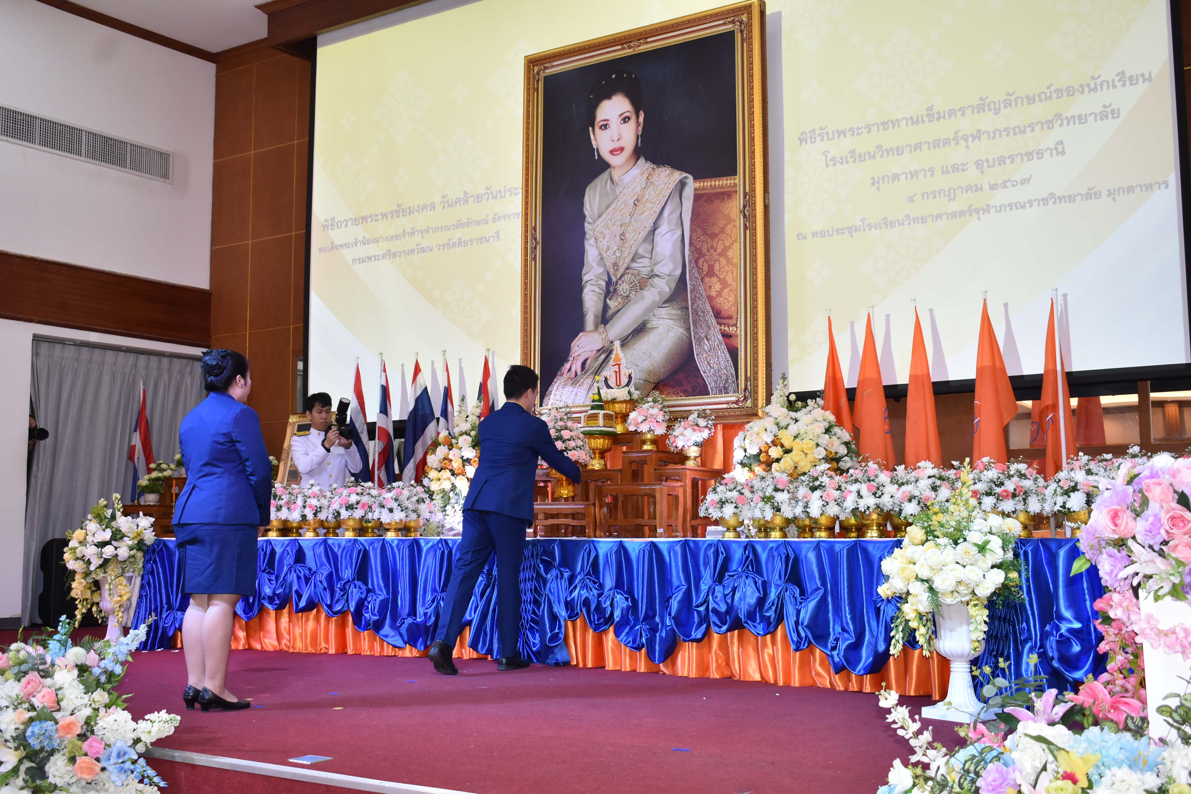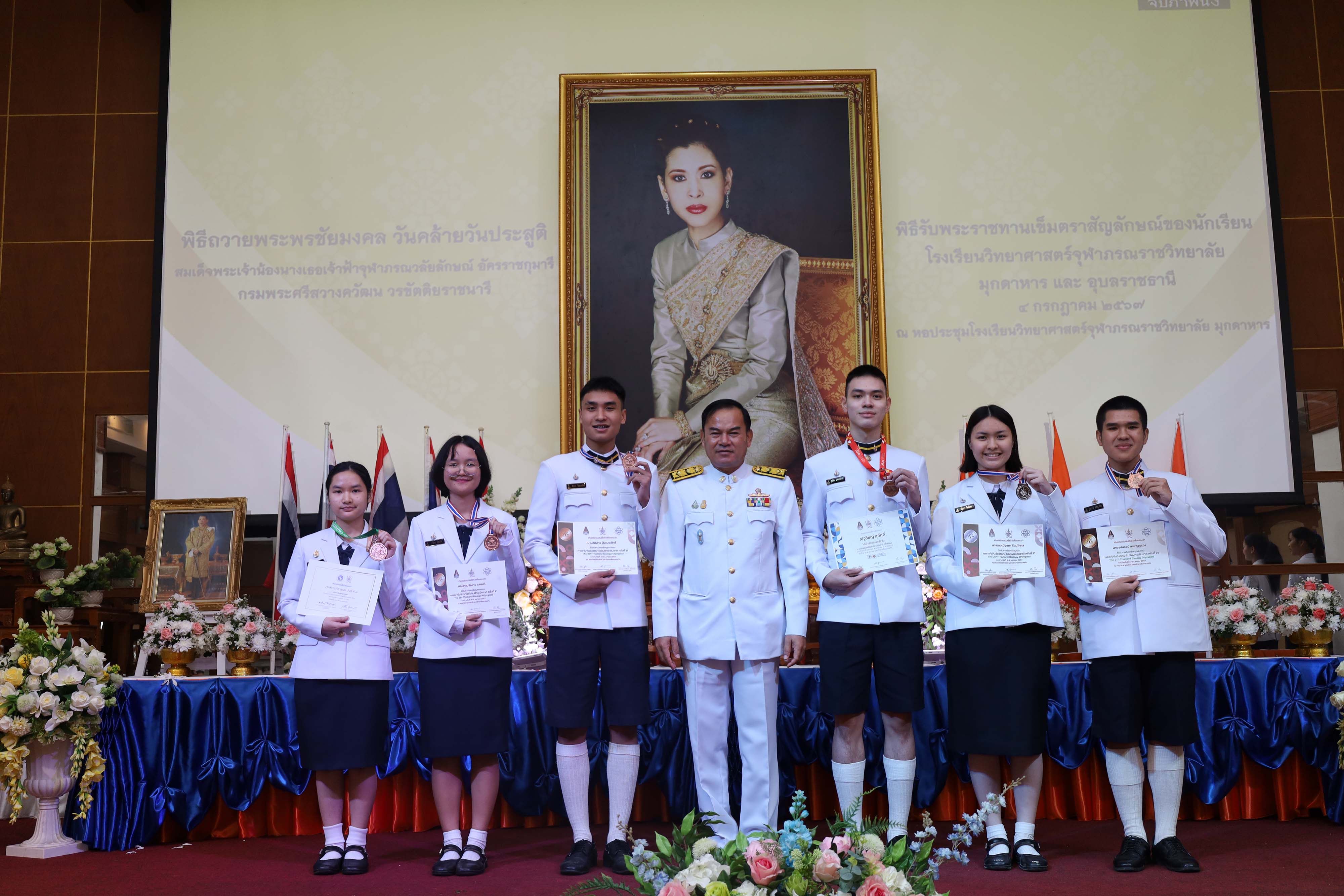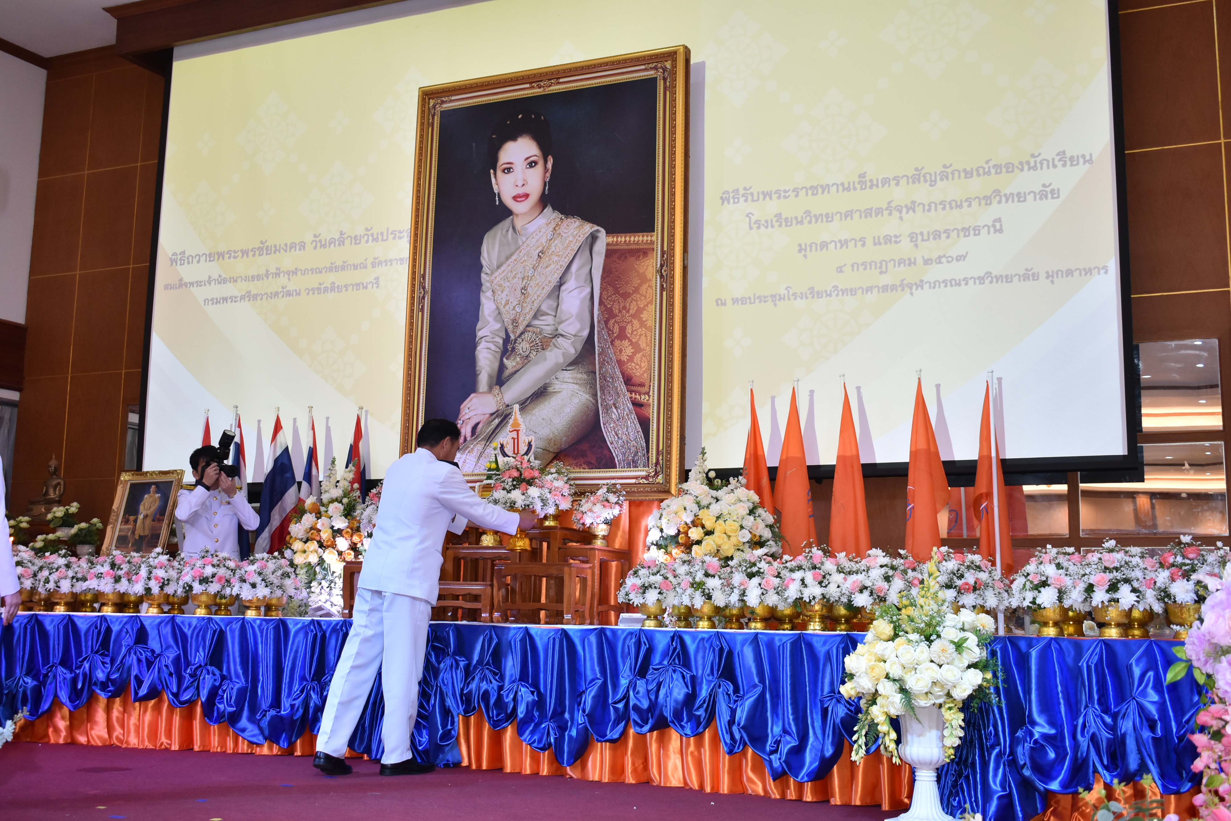 พิธีถวายพระพรชัยมงคล วันคล้ายวันประสูติสมเด็จพระน้องนางเธอเจ้าฟ้าจุฬาภรณวลัยลักษณ์ อัครราชกุมารี กรมพระศรีสวางควัฒน วรขัตติยราชนารี และพิธีรับพระราชทานเข็มตราสัญลักษณ์ของนักเรียน โรงเรียนวิทยาศาสตร์จุฬาภรณราชวิทยาลัย มุกดาหาร และโรงเรียนวิทยาศาสตร์จุฬาภรณราชวิทยาลัย อุบลราชธานี เนื่องในวันวันจุฬาภรณ์ ประจำปีการศึกษา 2567 จัดขึ้นในวันพฤหัสบดีที่ 4 กรกฎาคม 2567 เวลา 08.00-12.00 น. ณ หอประชุมโรงเรียนวิทยาศาสตร์จุฬาภรณราชวิทยาลัย มุกดาหาร