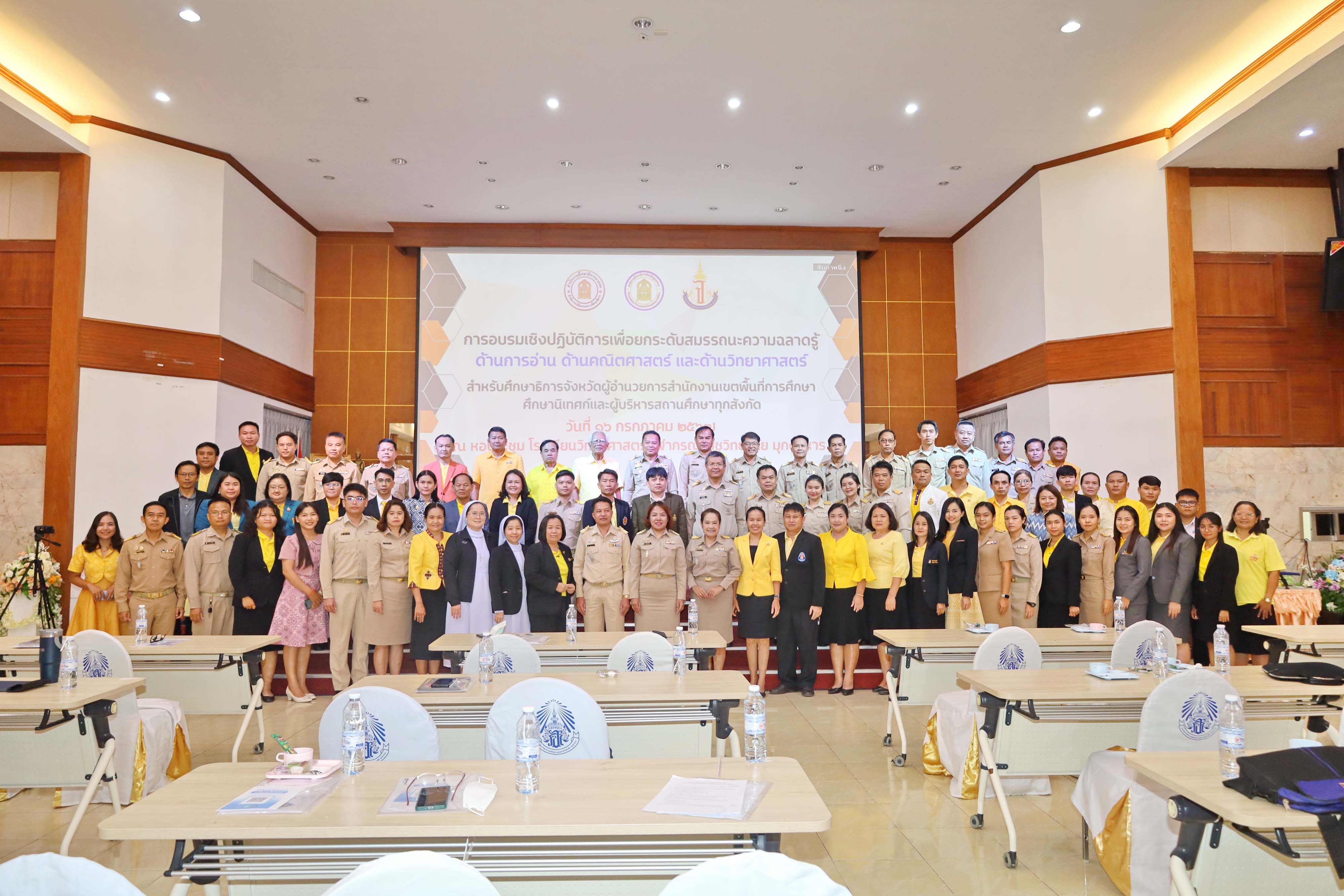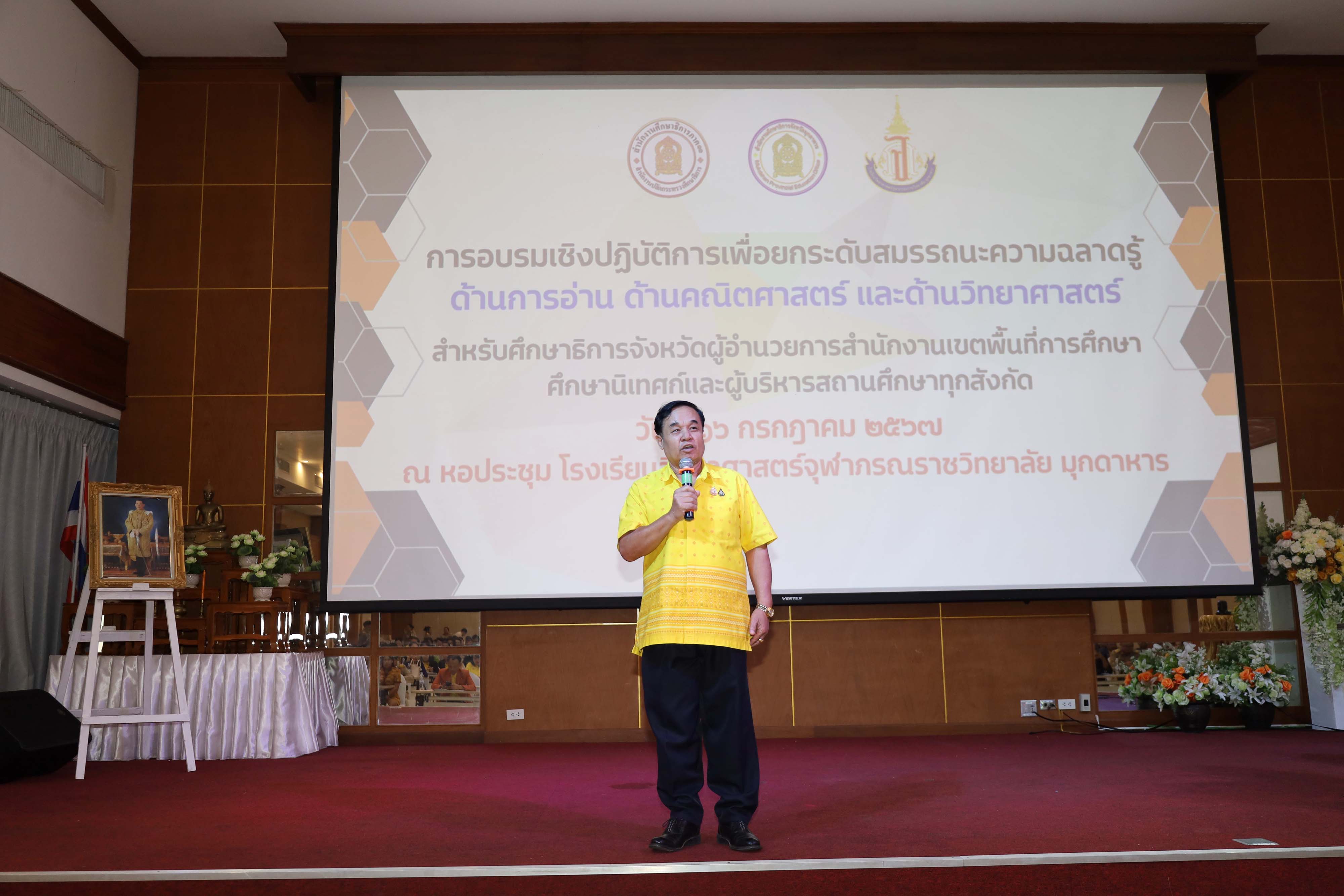 กิจกรรมการอบรมเชิงปฏิบัติการเพื่อยกระดับสมรรถนะความฉลาดรู้ ด้านการอ่าน ด้านคณิตศาสตร์ และด้านวิทยาศาสตร์ สำหรับศึกษาธิการจังหวัดผู้อำนวยการสำนักงานเขตพื้นที่การศึกษาศึกษานิเทศก์และผู้บริหารสถานศึกษาทุกสังกัด ในวันที่ 16 กรกฎาคม 2567 ณ หอประชุมโรงเรียนวิทยาศาสตร์จุฬาภรณราชวิทยาลัย มุกดาหาร