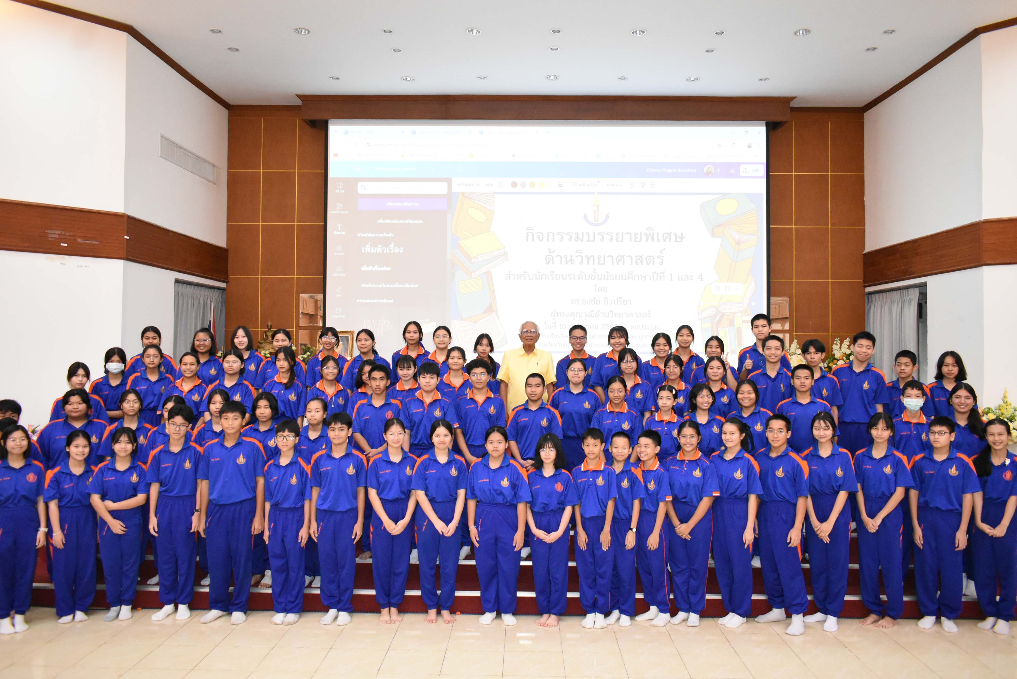 กิจกรรมบรรยายพิเศษด้านวิทยาศาสตร์สำหรับนักเรียนระดับชั้นมัธยมศึกษาปีที่ 1 และ มัธยมศึกษาปีที่ 4 วิทยากรโดย ดร.ธงชัย ชิวปรีชา
