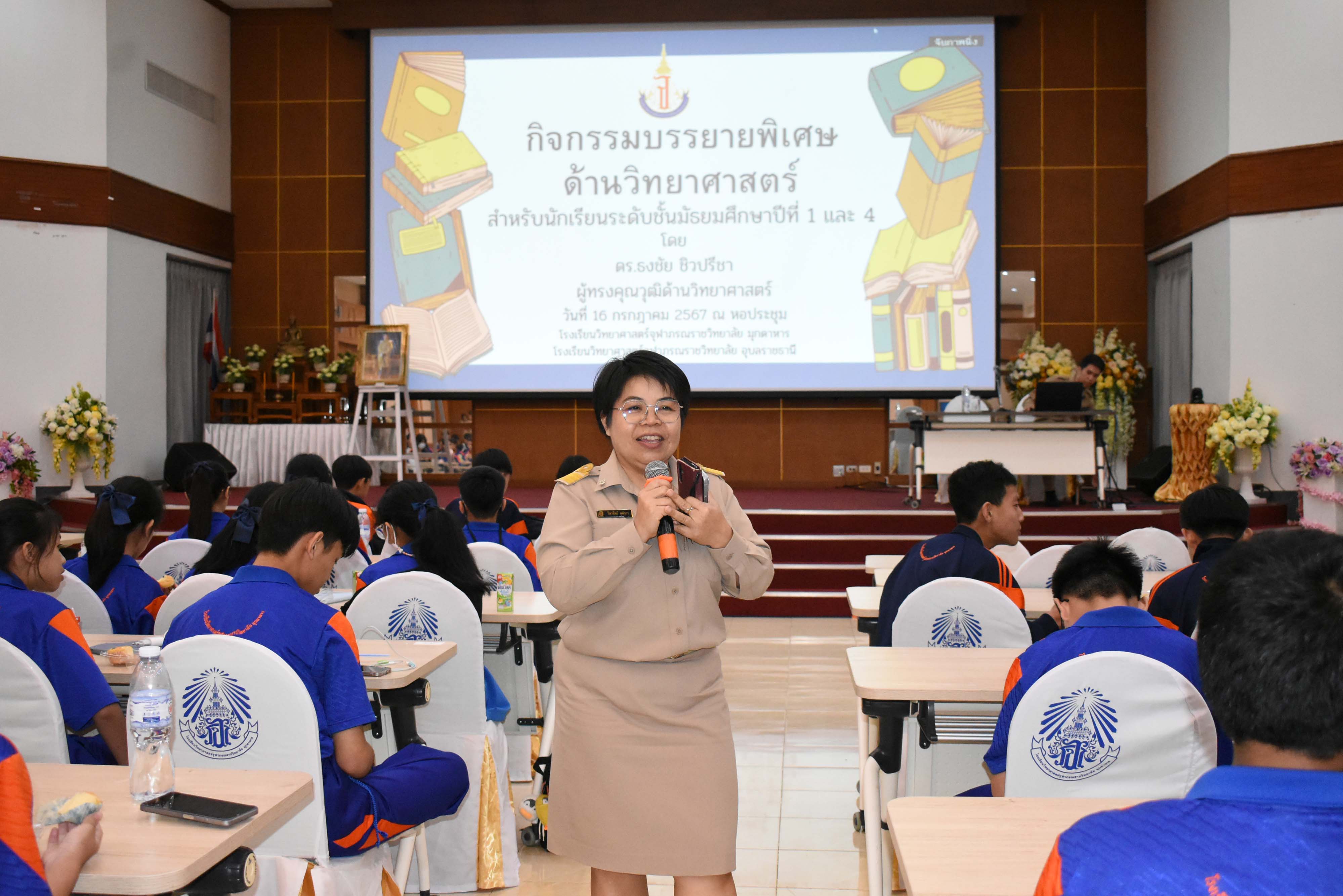 โรงเรียนวิทยาศาสตร์จุฬาภรณราชวิทยาลัย มุกดาหาร จัดกิจกรรมบรรยายพิเศษ ด้านวิทยาศาสตร์สำหรับนักเรียนระดับชั้นมัธยมศึกษาปีที่ 1 และมัธยมศึกษาปีที่ 4 โรงเรียนวิทยาศาสตร์จุฬาภรณราชวิทยาลัย มุกดาหาร และโรงเรียนวิทยาศาสตร์จุฬาภรณราชวิทยาลัย อุบลราชธานี วิทยากรโดย ดร.ธงชัย ชิวปรีชา ผู้ทรงคุณวุฒิด้านวิทยาศาสตร์ วันที่ 16 กรกฎาคม 2567 เวลา 16.00-18.00 น. ณ หอประชุม โรงเรียนวิทยาศาสตร์จุฬาภรณราชวิทยาลัย มุกดาหาร