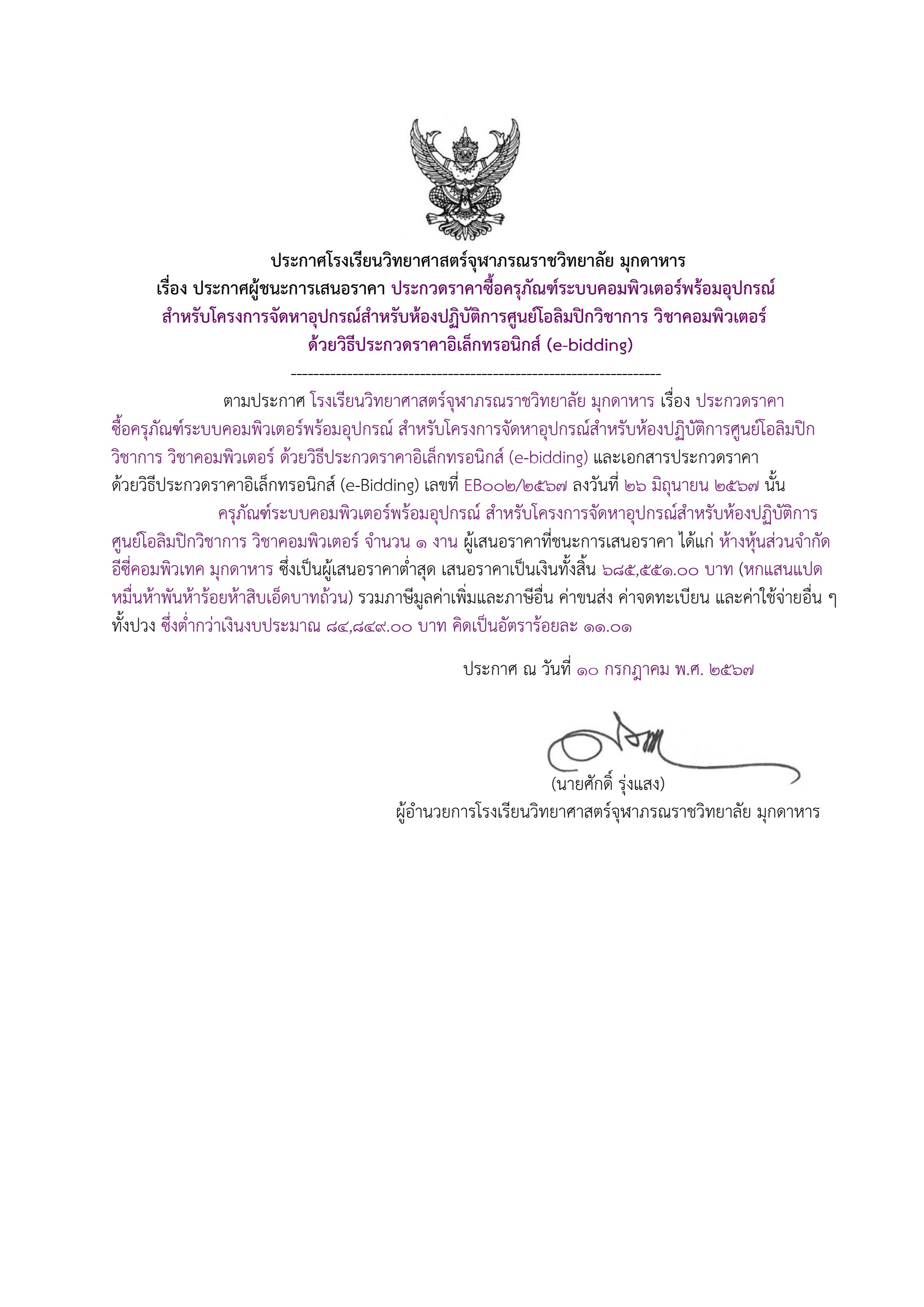 ประกาศผู้ชนะการประกวดราคาซื้อครุภัณฑ์ระบบคอมพิวเตอร์พร้อมอุปกรณ์ สำหรับโครงการศูนย์โอลิมปิกวิชาการคอมพิวเตอร์ ด้วยวิธีประกวดราคา