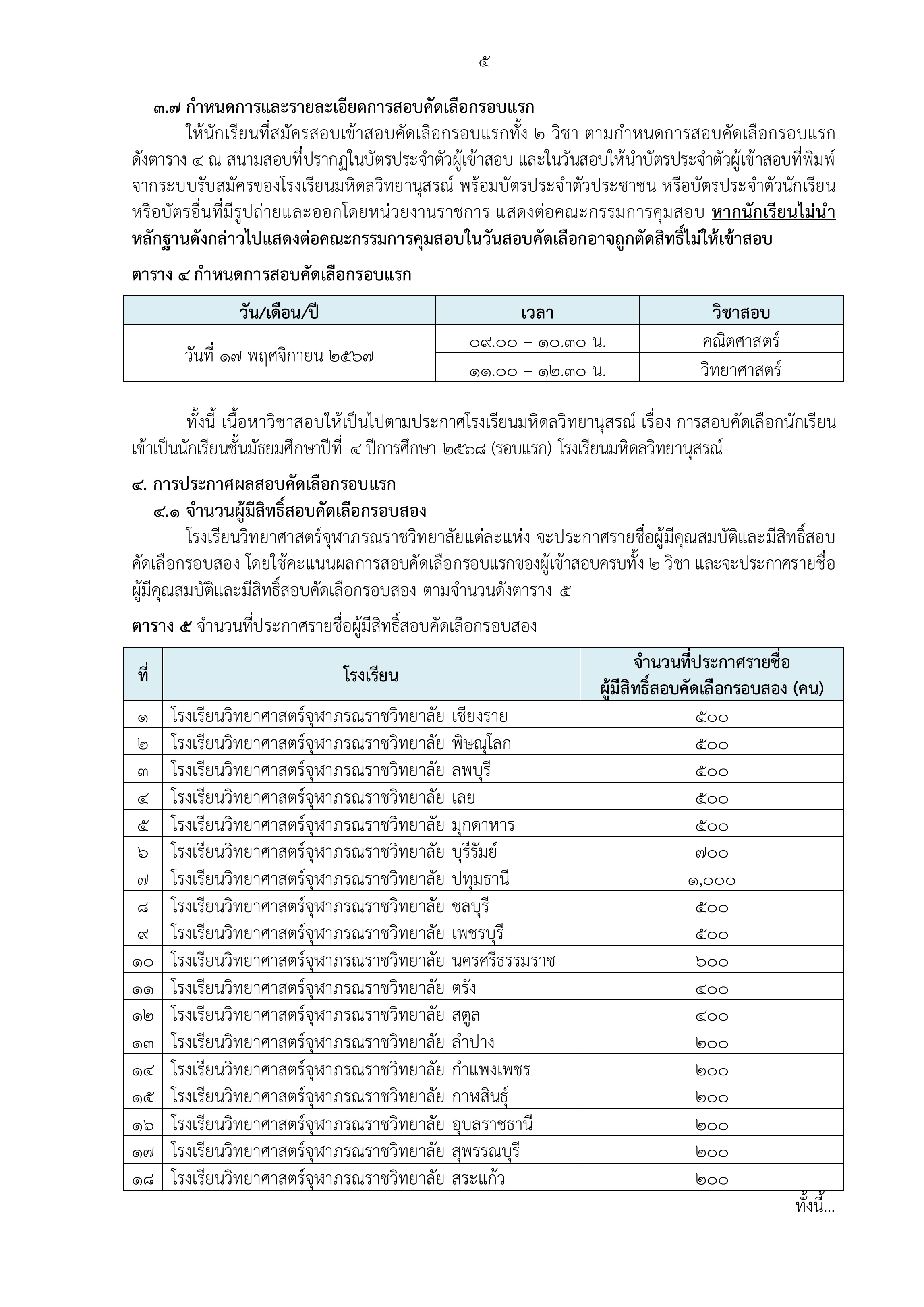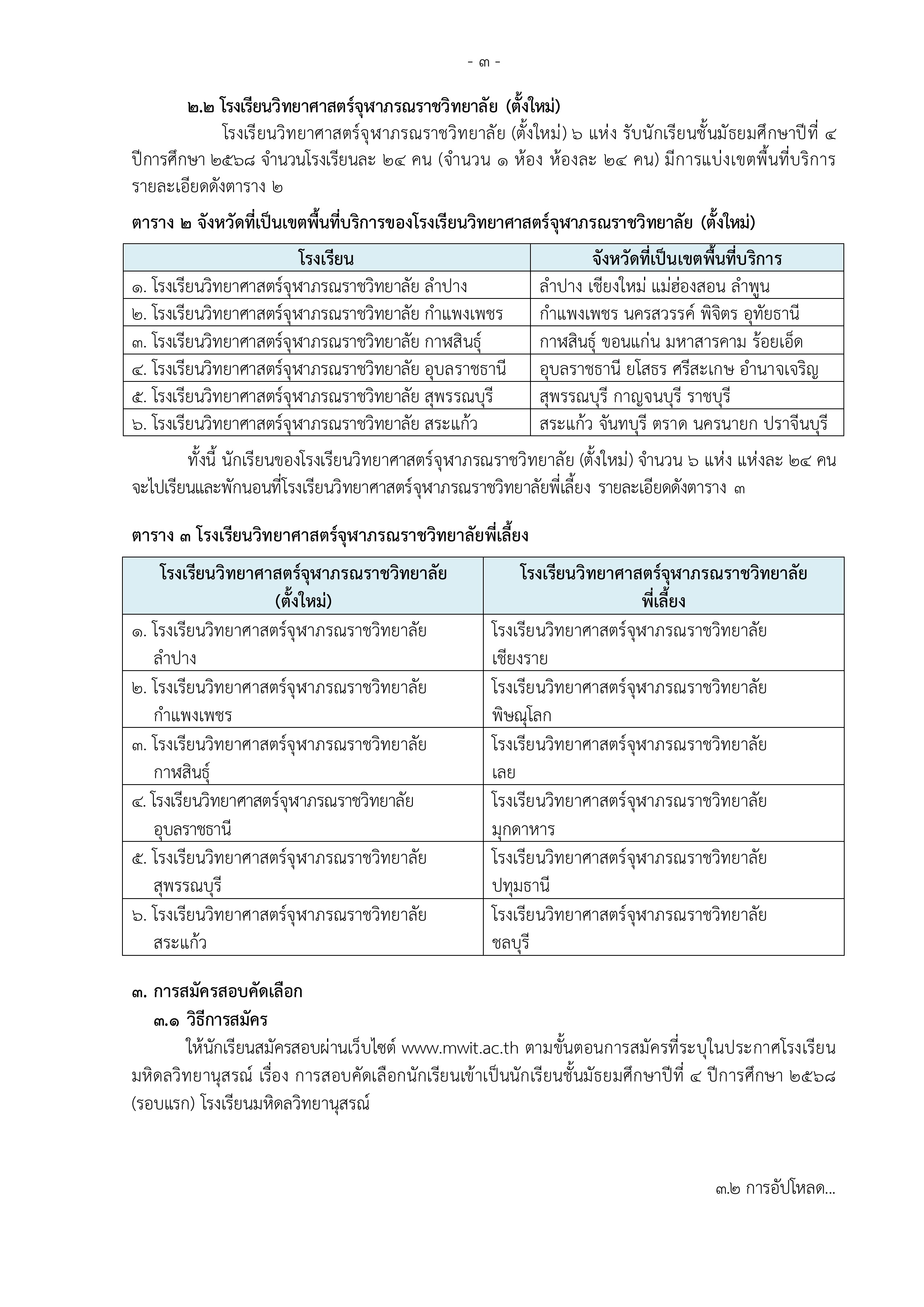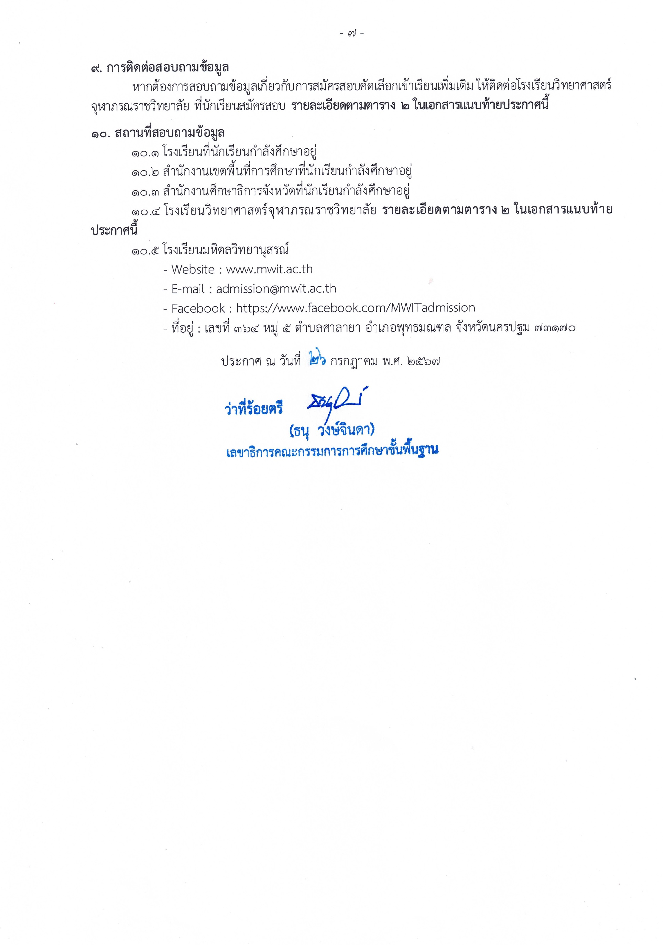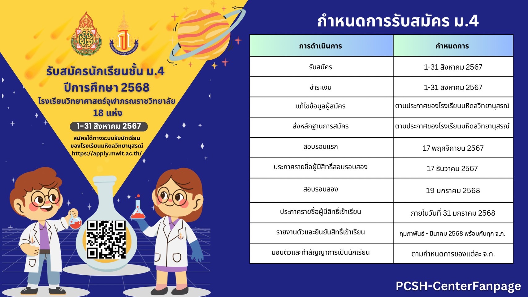 ประกาศรับสมัครนักเรียนเข้าเรียน โรงเรียนวิทยาศาสตร์จุฬาภรณราชวิทยาลัย ชั้นมัธยมศึกษาปีที่ 4 ปีการศึกษา 2568
