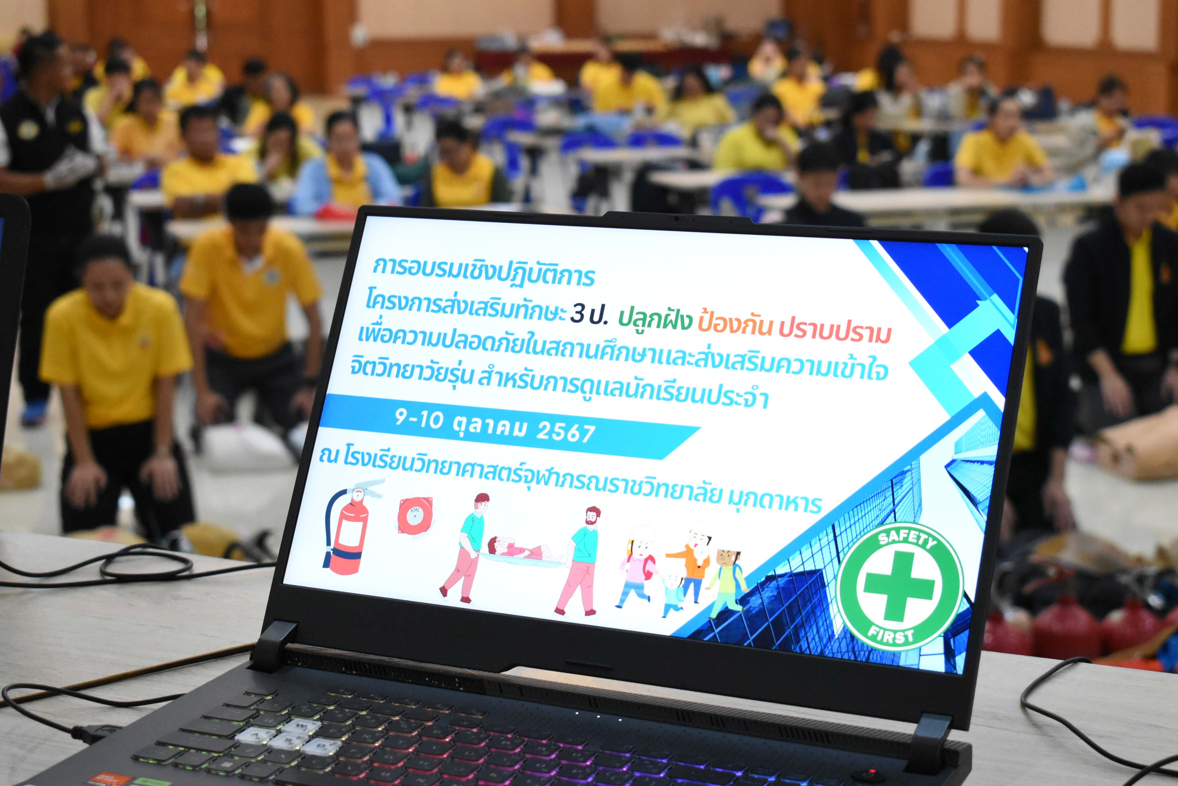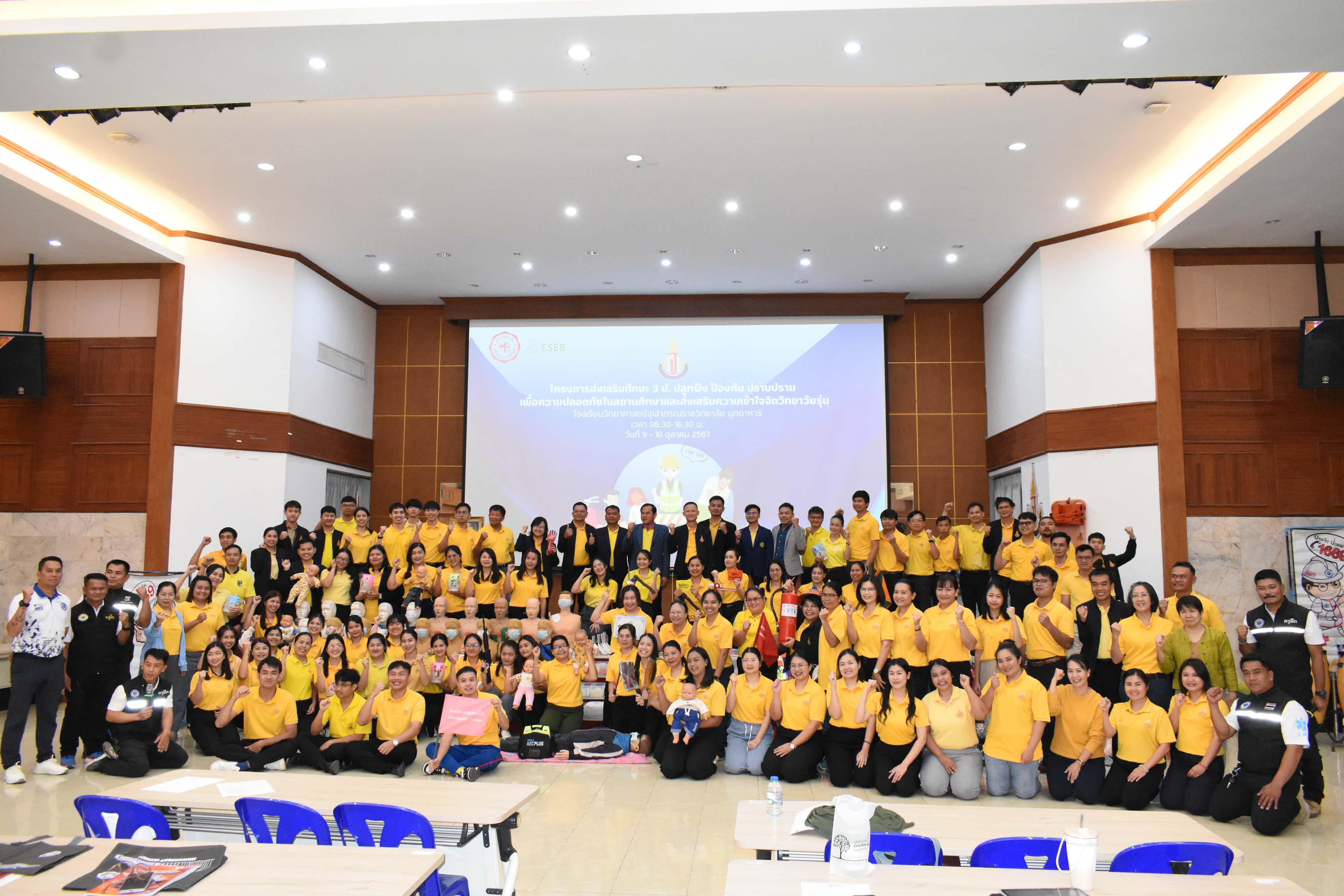กิจกรรมอบรมเชิงปฏิบัติการส่งเสริมทักษะ3 ป.ปลูก ป้องกัน ปราบปราม เพื่อความปลอดภัยในสถานศึกษาและส่งเสริมความเข้าใจจิตวิทยาวัยรุ่น สำหรับการดูแลนักเรียนประจำ จัดขึ้นในระหว่างวันที่ 9-10 ตุลาคม 2567 เวลา 09.00-17.00 น. ณ อาคารหอประชุมโรงเรียนวิทยาศาสตร์จุฬาภรณราชวิทยาลัย มุกดาหาร