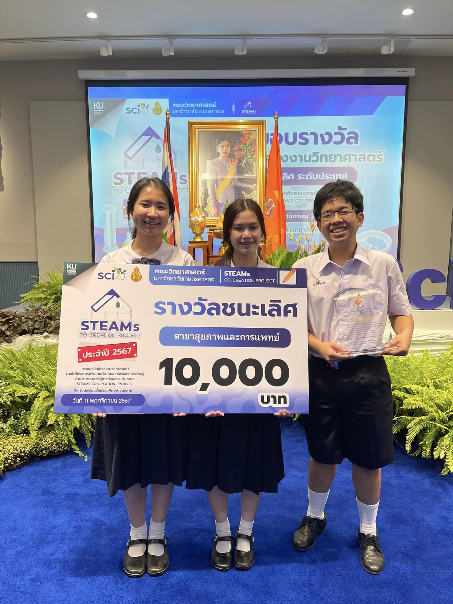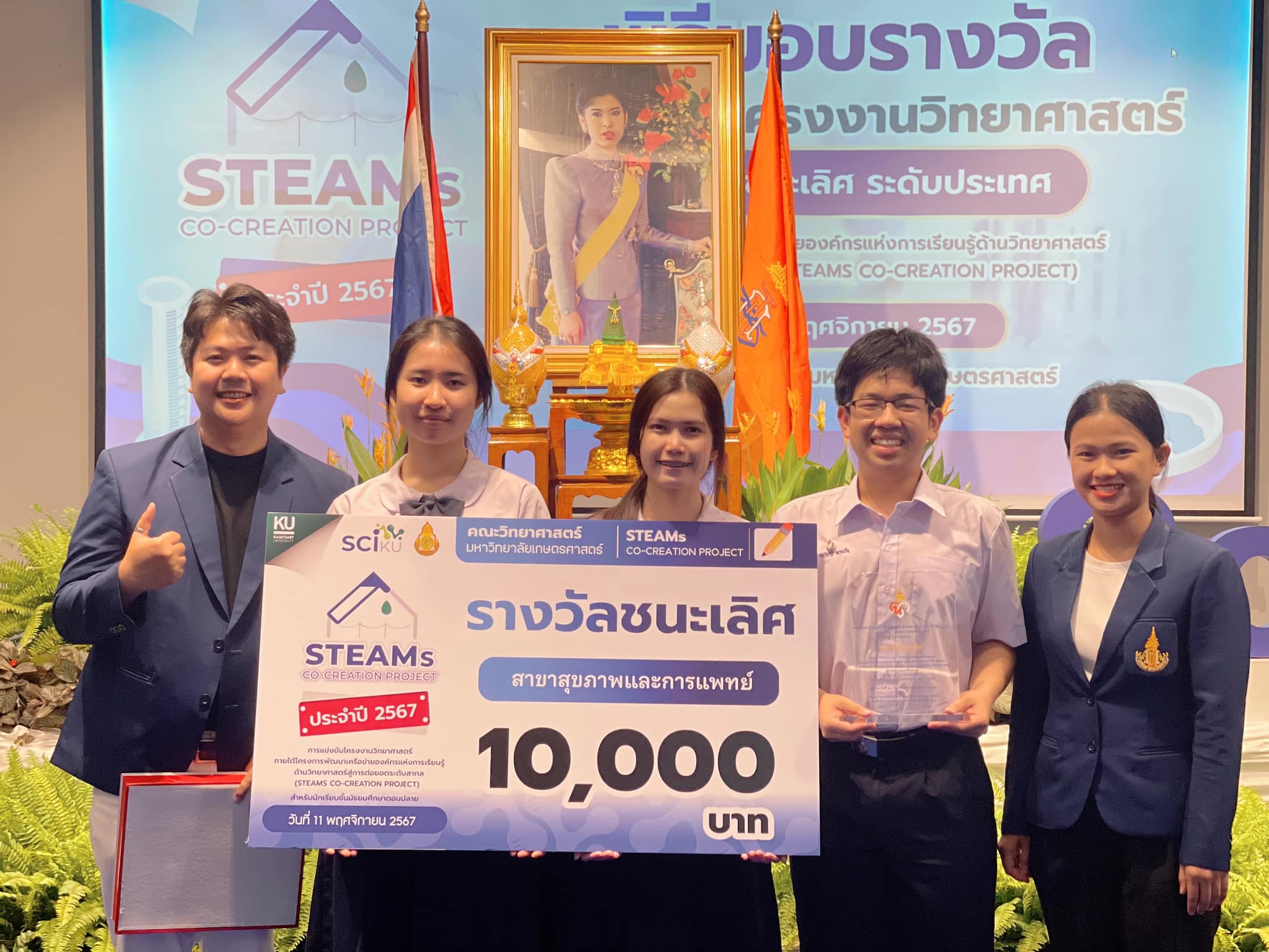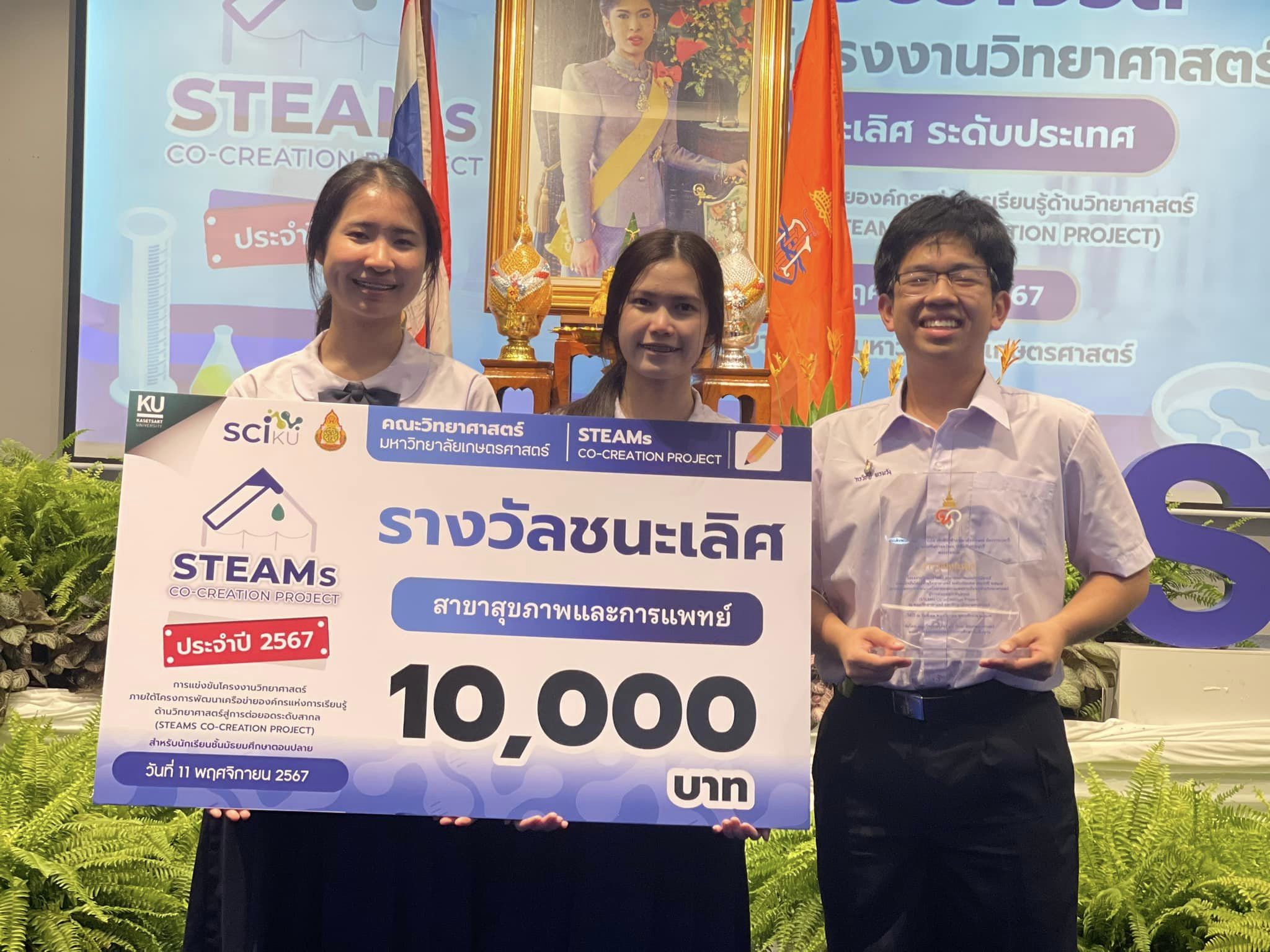 แสดงความยินดีกับนักเรียนโรงเรียนวิทยาศาสตร์จุฬาภรณราชวิทยาลัย มุกดาหาร ที่ได้รับโล่พระราชทาน จากสมเด็จพระเจ้าน้องนางเธอ เจ้าฟ้าจุฬาภรณวลัยลักษณ์ อัครราชกุมารี กรมพระศรีสวางควัฒน วรขัตติยราชนารี รางวัลชนะเลิศ การประกวดโครงงานวิทยาศาสตร์ STEAMs Co-Creation Project จากคณะวิทยาศาสตร์ มหาวิทยาลัยเกษตรศาสตร์ วันที่ 11 พฤศจิกายน 2567 โดยมีรายละเอียด ดังนี้