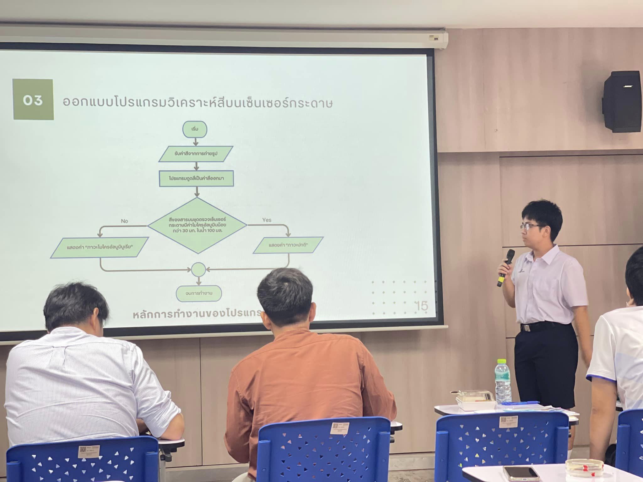 โครงงาน เรื่อง การพัฒนาเซนเซอร์กระดาษในการตรวจวัดไมโครอัลบูมินในน้ำปัสสาวะ โดยใช้กระดาษไมโครฟลูอิดิก ร่วมกับการวิเคราะห์ด้วย Image processing เพื่อประยุกต์เป็นแอพพลิเคชั่นสำหรับวินิจฉัยโรคไตเรื้อรังเบื้องต้น ผู้พัฒนางาน นางสาวเบญญาภา ปลายเนตร นางสาวปิ่นมุก พจนา นายกรวิชญ์ พรมวัง ครูที่ปรึกษา นายธีระวุฒิ จันทะพันธ์ นางสาวจินดา โพนะทา