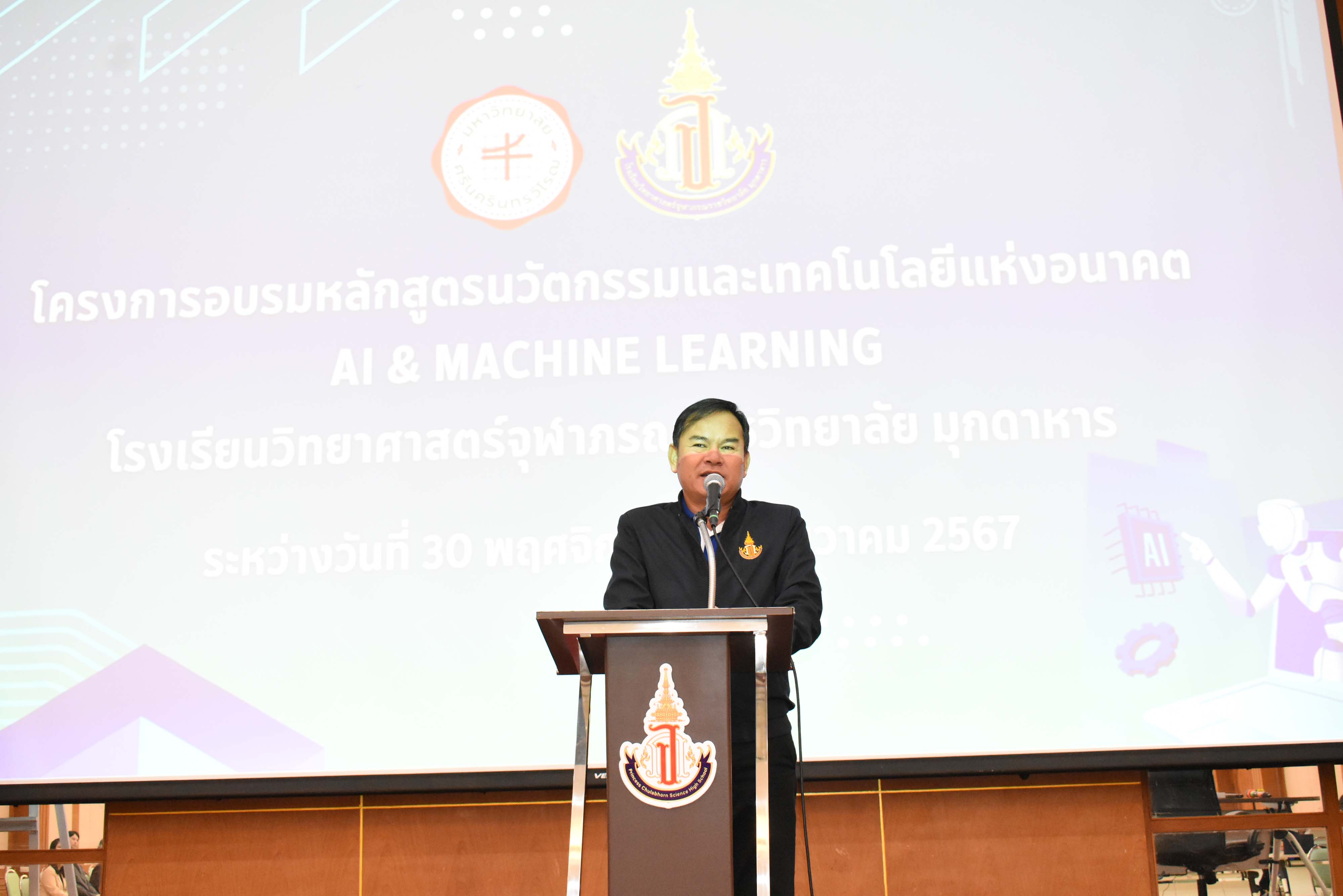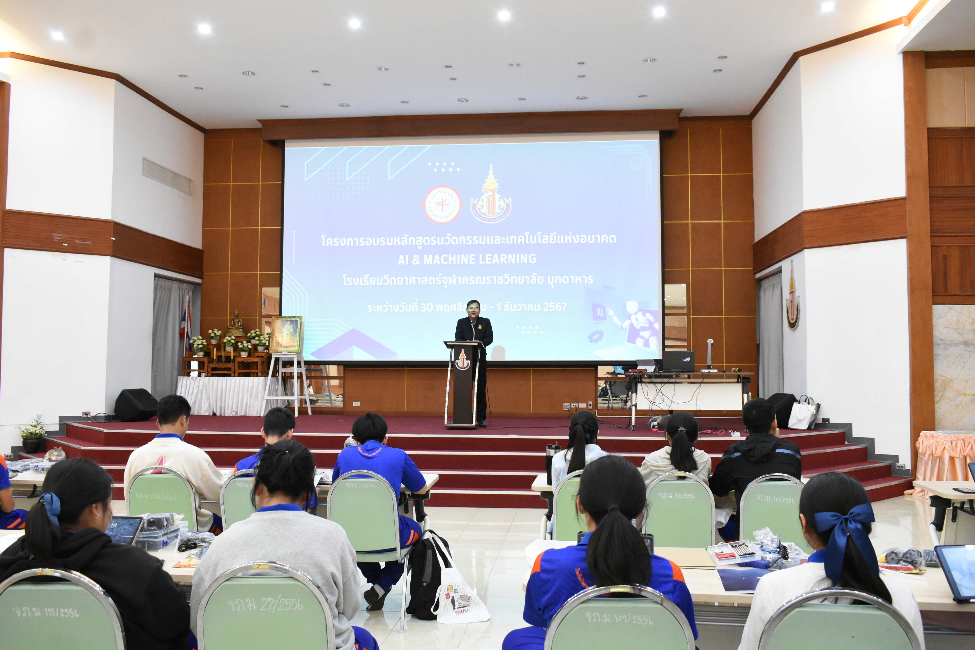 กลุ่มสาระการเรียนรู้วิทยาศาสตร์และเทคโนโลยี โรงเรียนวิทยาศาสตร์จุฬาภรณราชวิทยาลัย มุกดาหาร จัดกิจกรรมอบรมเชิงปฏิบัติการนวัตกรรมและเทคโนโลยีแห่งอนาคตปัญญาประดิษฐ์ AI & Machine Learning สำหรับนักเรียนชั้นมัธยมศึกษาตอนปลาย ปีการศึกษา 2567 ในระหว่างวันที่ 30 พฤศจิกายน ถึง 1 ธันวาคม 2567 เวลา 09.00-16.00 น. ณ อาคารหอประชุมโรงเรียนวิทยาศาสตร์จุฬาภรณราชวิทยาลัย มุกดาหาร