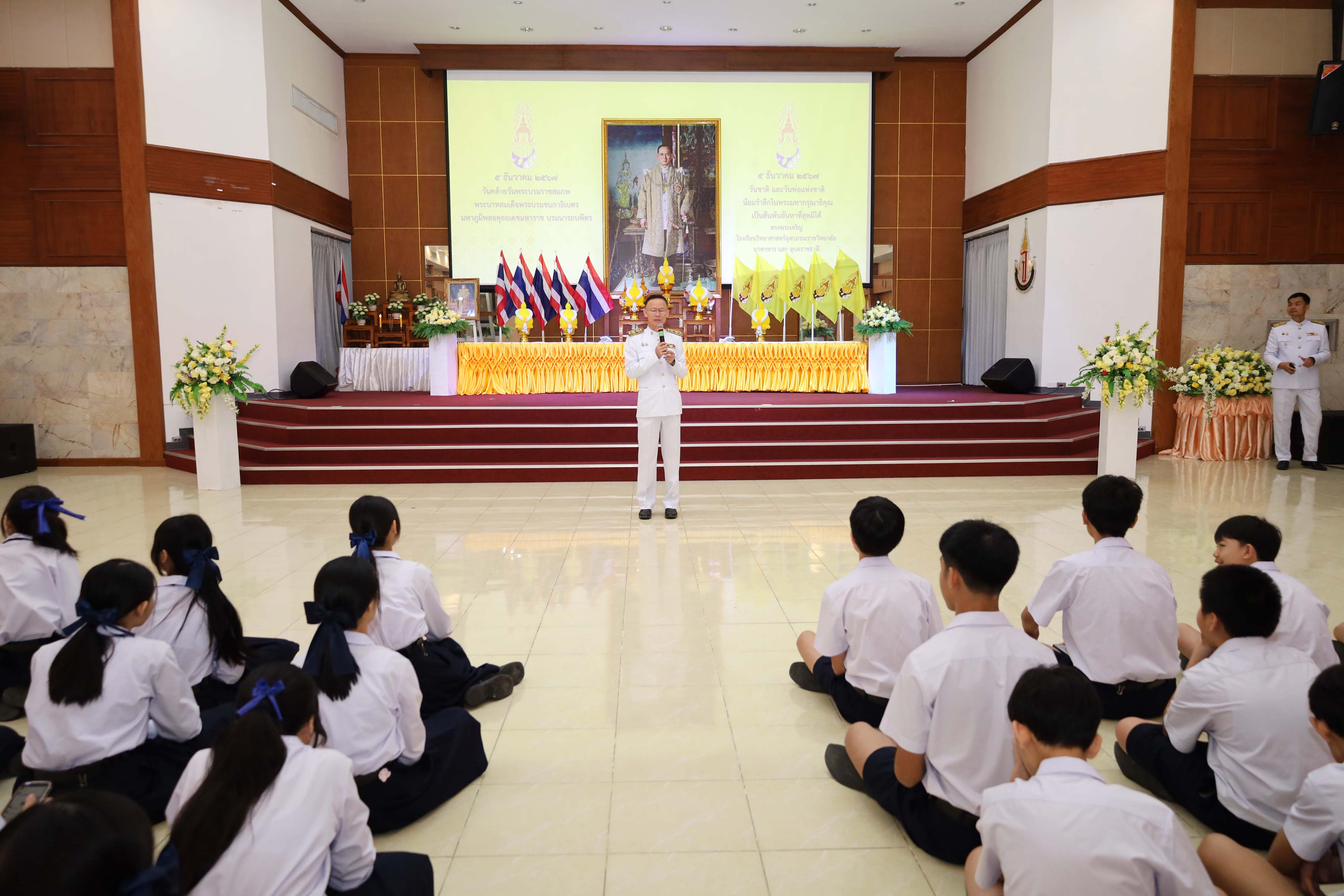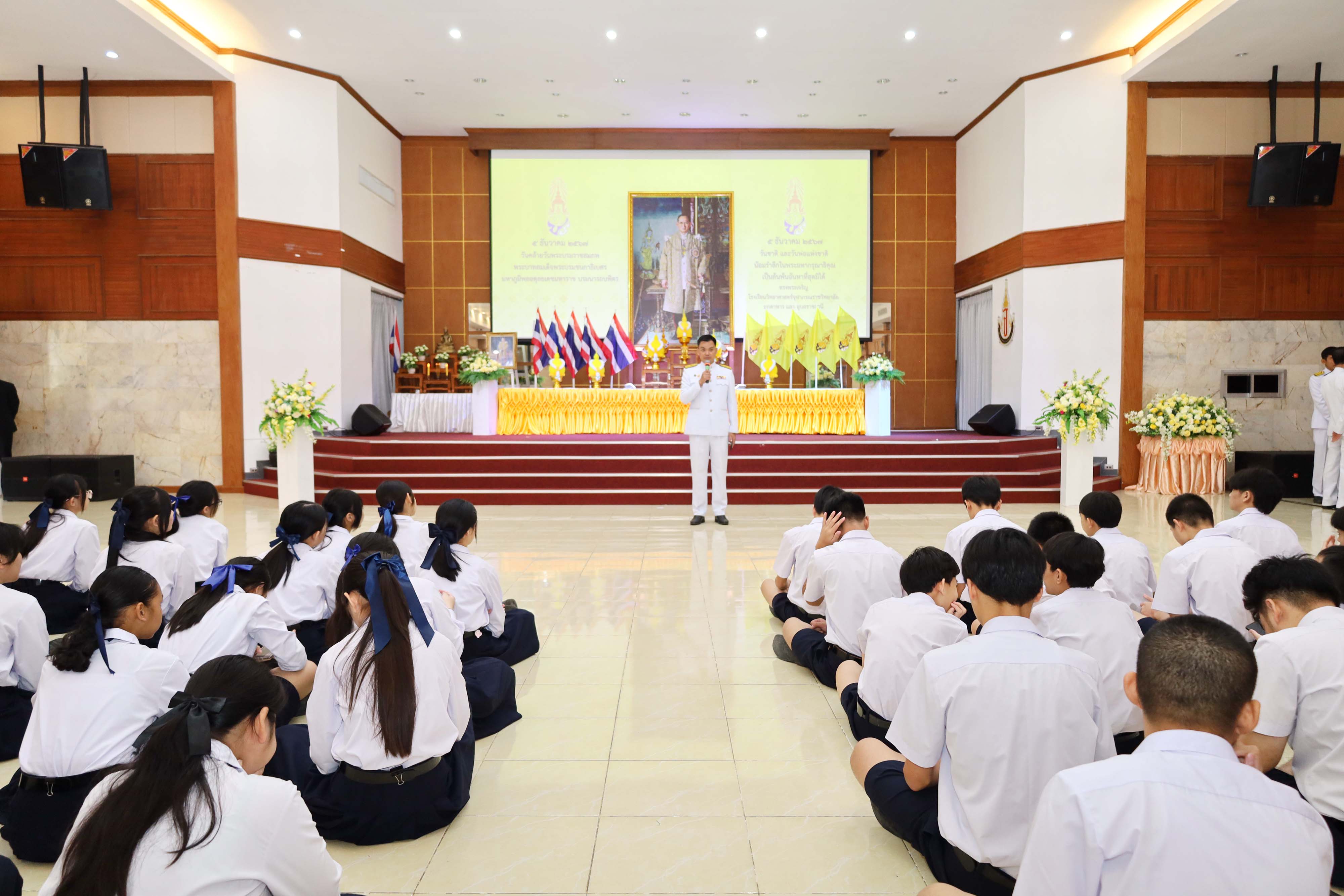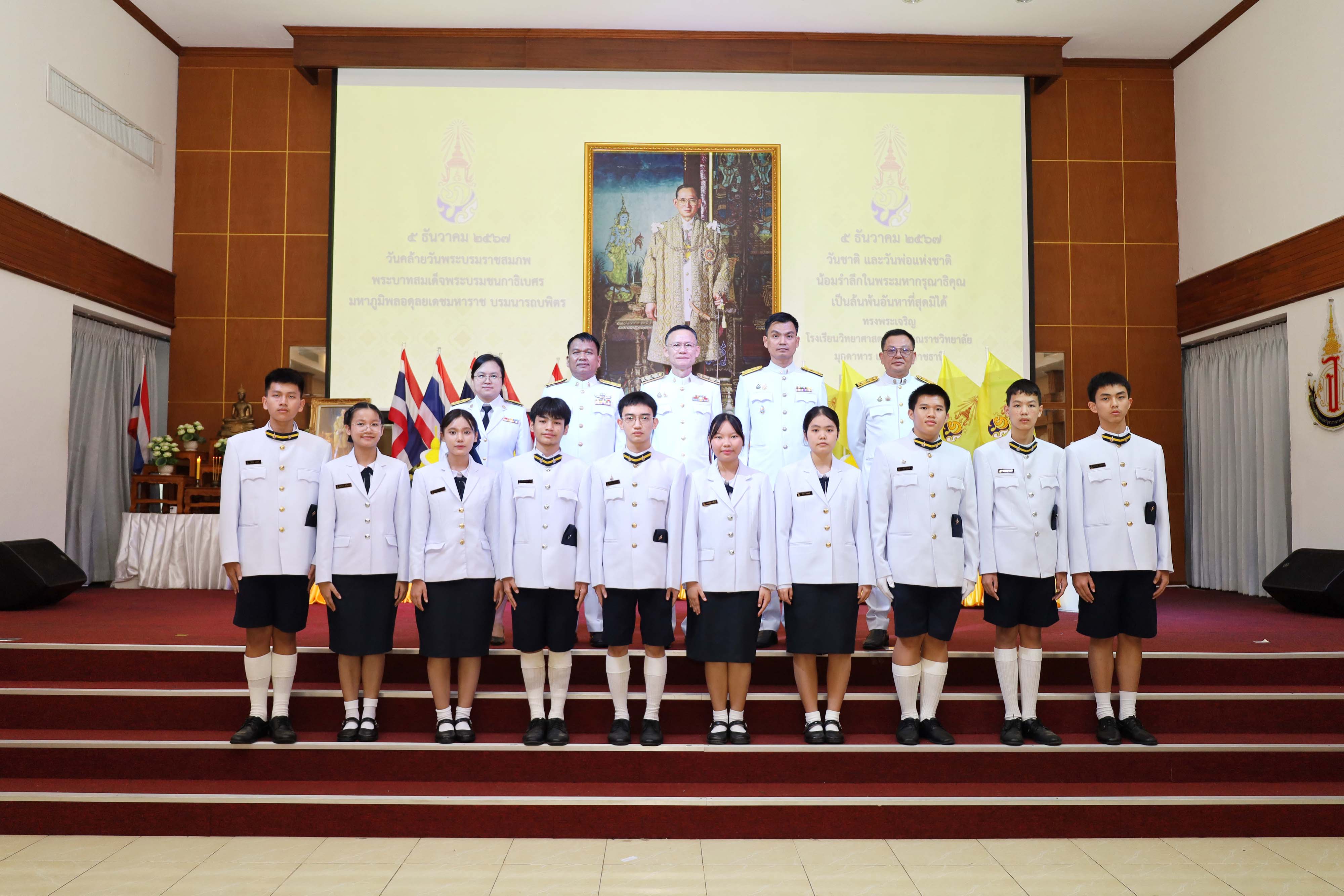 โรงเรียนวิทยาศาสตร์จุฬาภรณราชวิทยาลัย มุกดาหาร จัดกิจกรรมวันคล้ายวันพระบรมราชสมภพของพระบาทสมเด็จพระบรมชนกาธิเบศร มหาภูมิพลอดุลยเดชมหาราช บรมนาถบพิตร วันชาติ วันพ่อแห่งชาติ ในวันพฤหัสบดีที่ 5 ธันวาคม 2567 เวลา 08.00-09.00 น. ณ หอประชุมโรงเรียนวิทยาศาสตร์จุฬาภรณราชวิทยาลัย มุกดาหาร