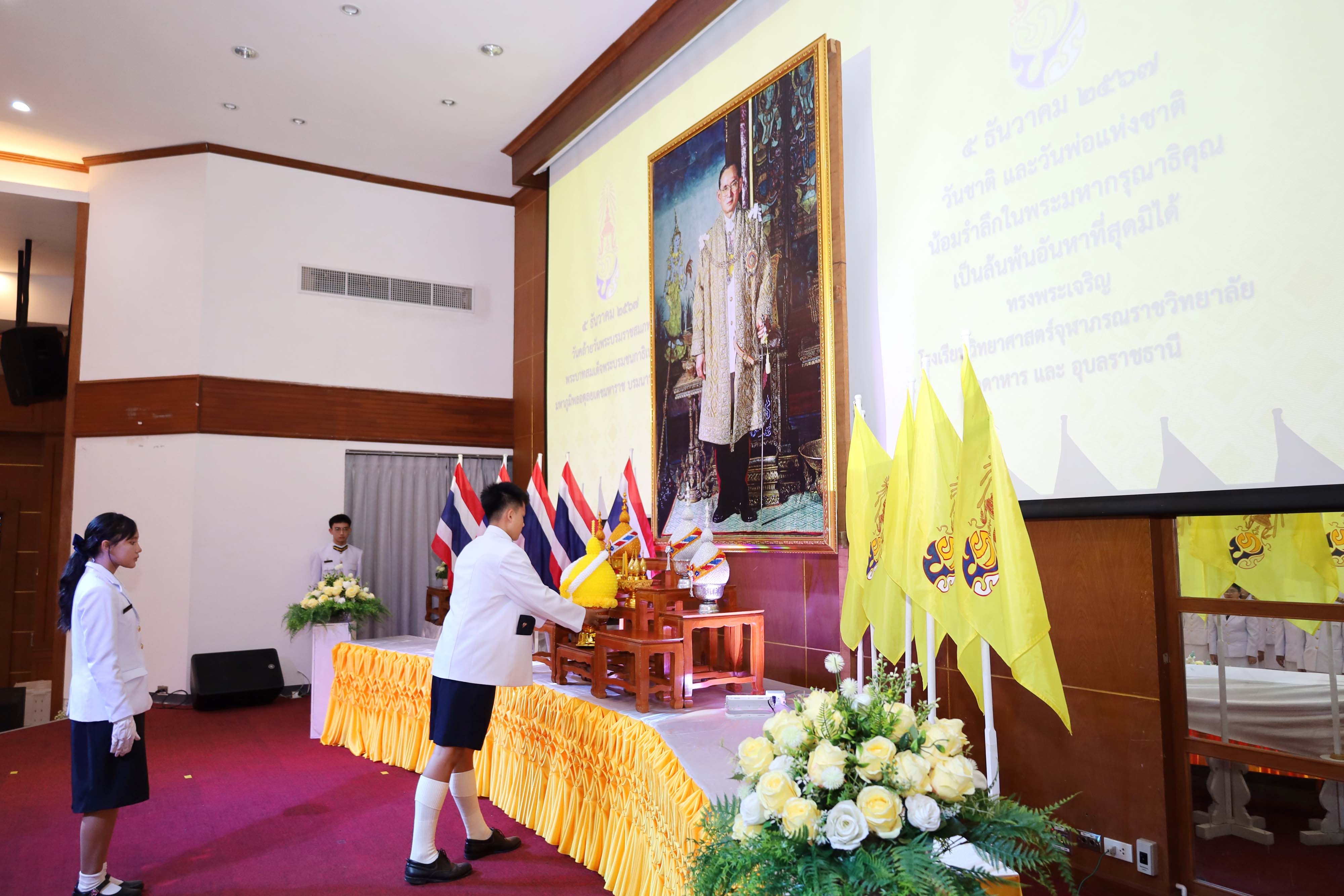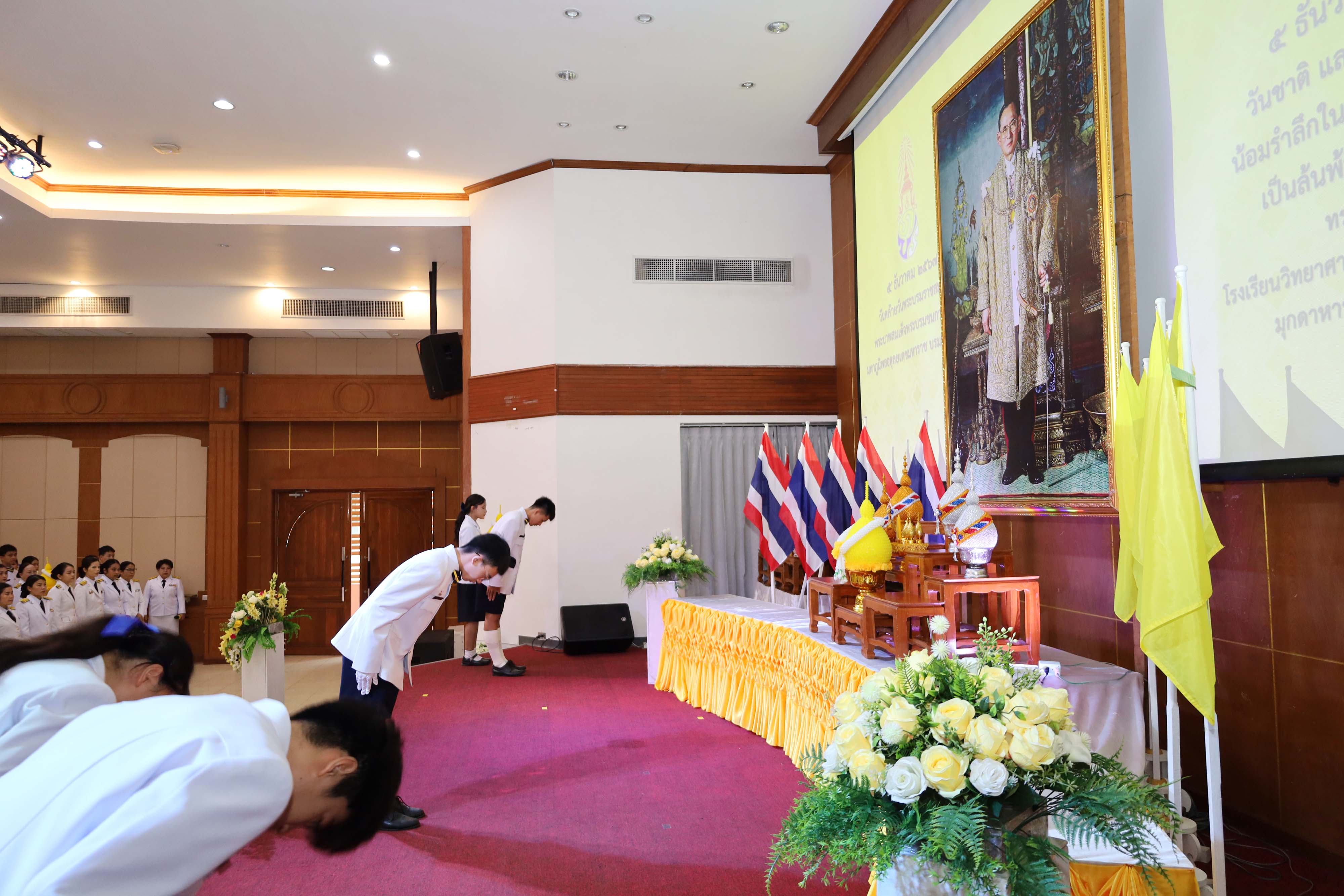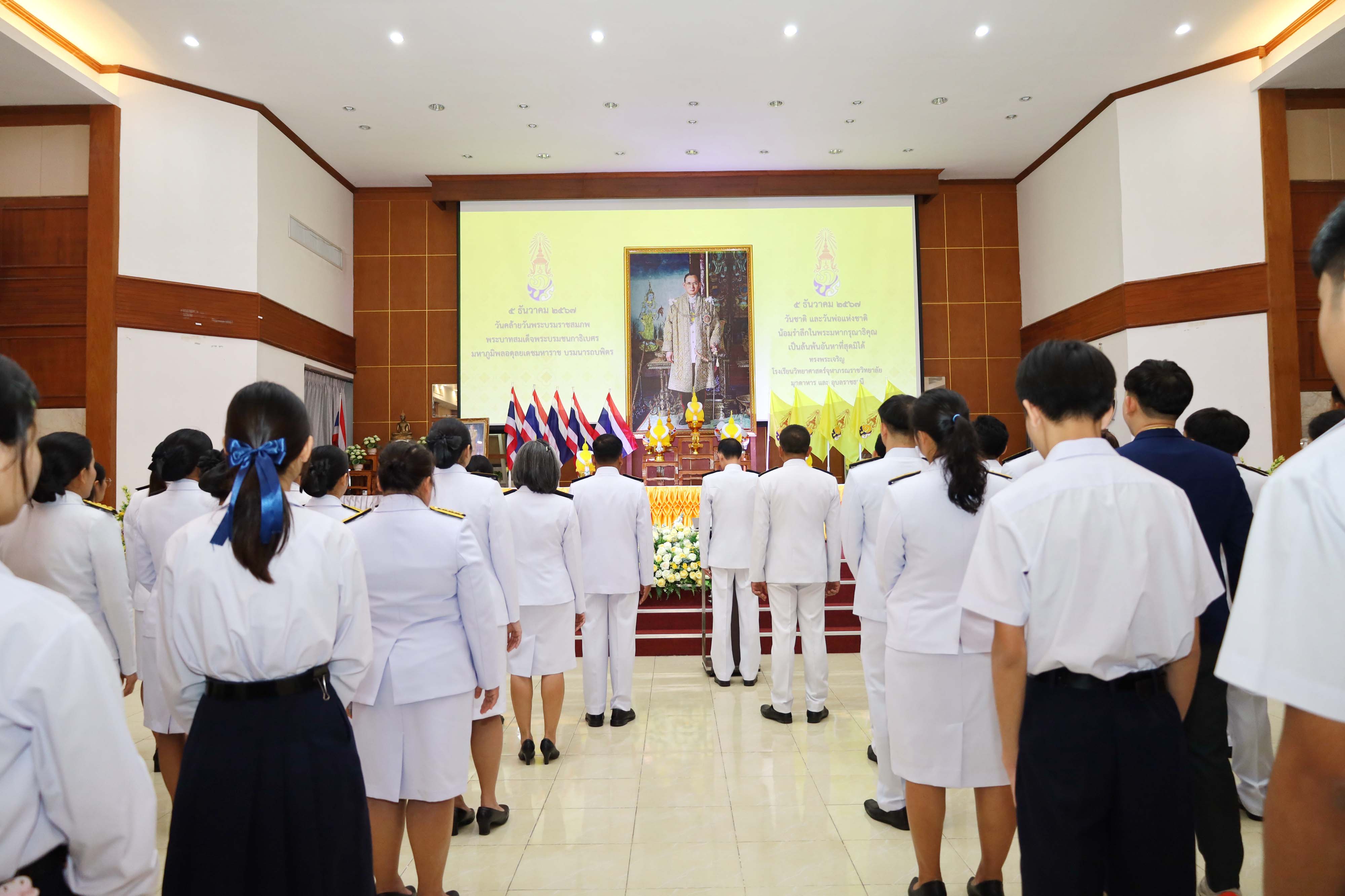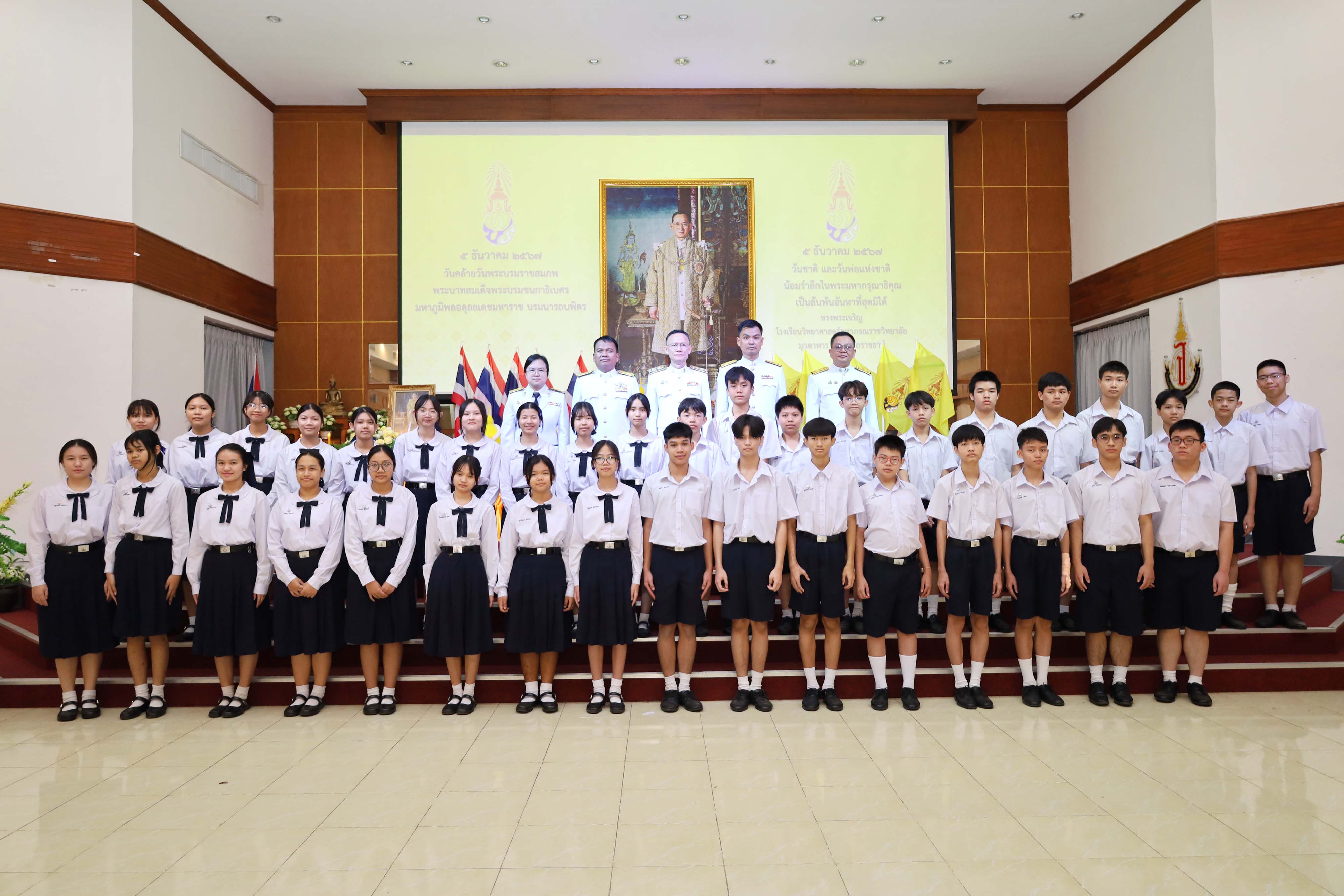 โรงเรียนวิทยาศาสตร์จุฬาภรณราชวิทยาลัย มุกดาหาร จัดกิจกรรมวันคล้ายวันพระบรมราชสมภพของพระบาทสมเด็จพระบรมชนกาธิเบศร มหาภูมิพลอดุลยเดชมหาราช บรมนาถบพิตร วันชาติ วันพ่อแห่งชาติ ในวันพฤหัสบดีที่ 5 ธันวาคม 2567 เวลา 08.00-09.00 น. ณ หอประชุมโรงเรียนวิทยาศาสตร์จุฬาภรณราชวิทยาลัย มุกดาหาร
