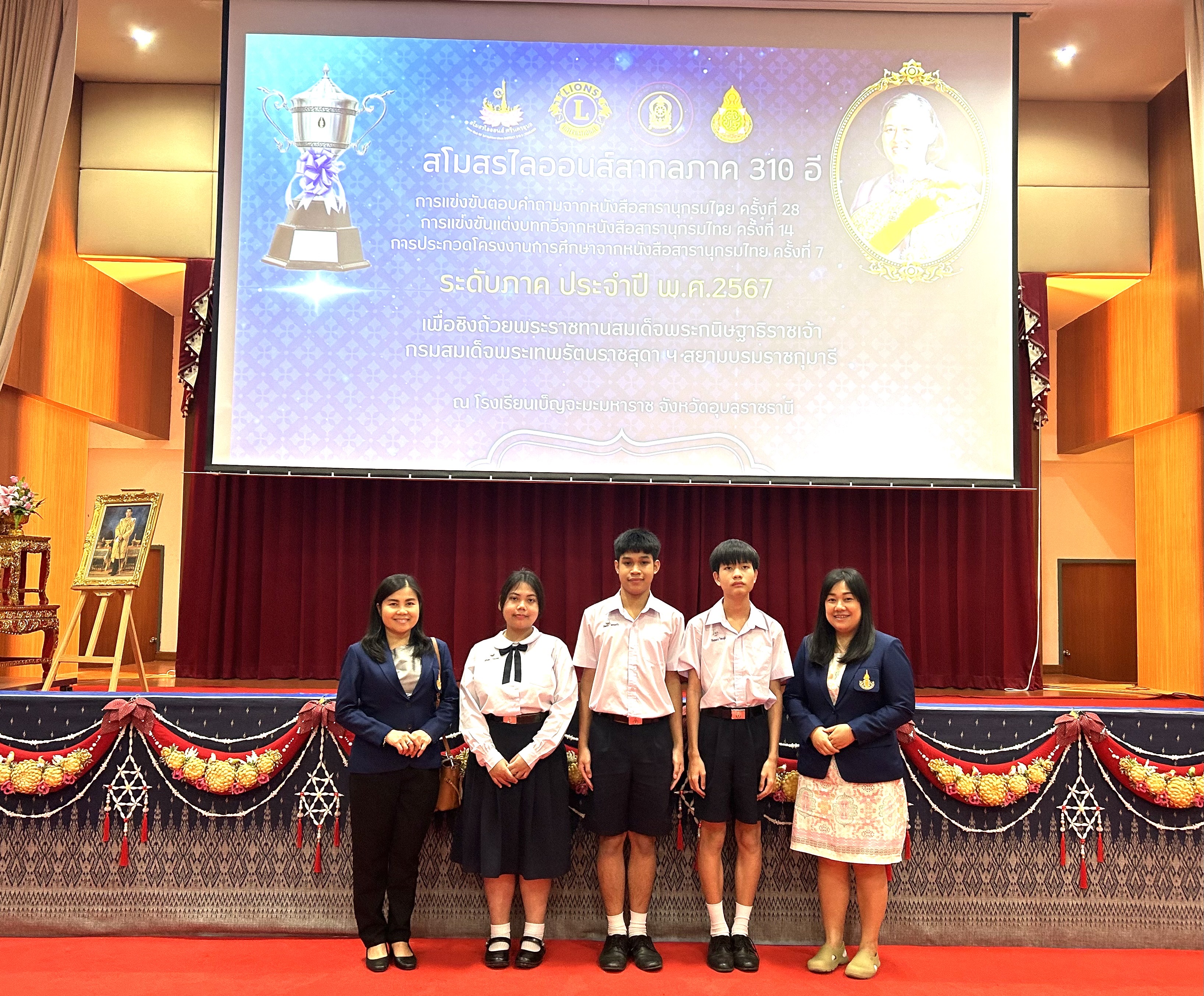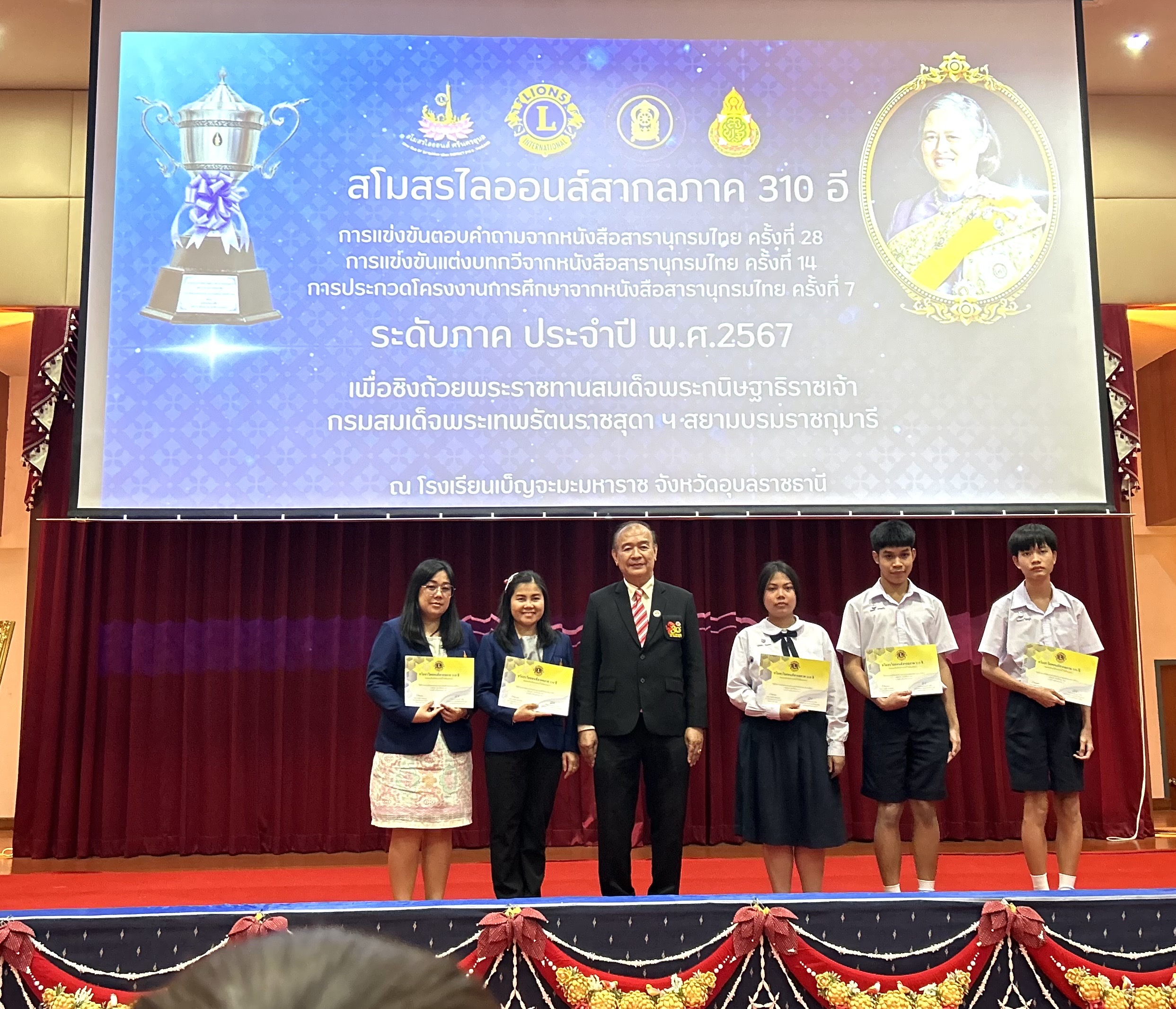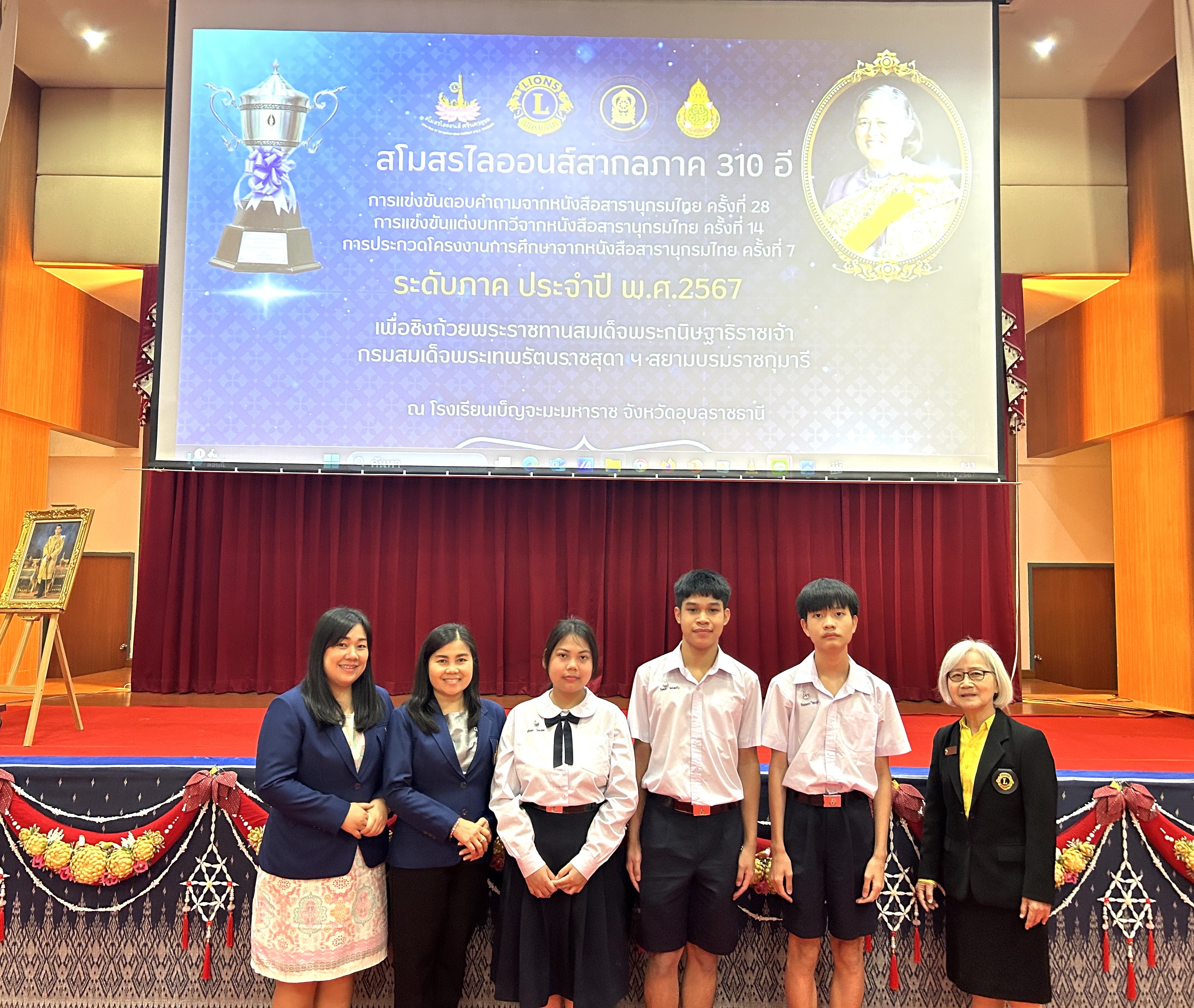แสดงความยินดีกับนักเรียนที่ได้รับรางวัลการแข่งขันตอบคำถามสารานุกรมไทยฯ ระดับภาค และเป็นตัวแทนภาค 310 อี เข้าแข่งขันตอบคำถามสารานุกรมไทยฯ ในรอบระดับประเทศ