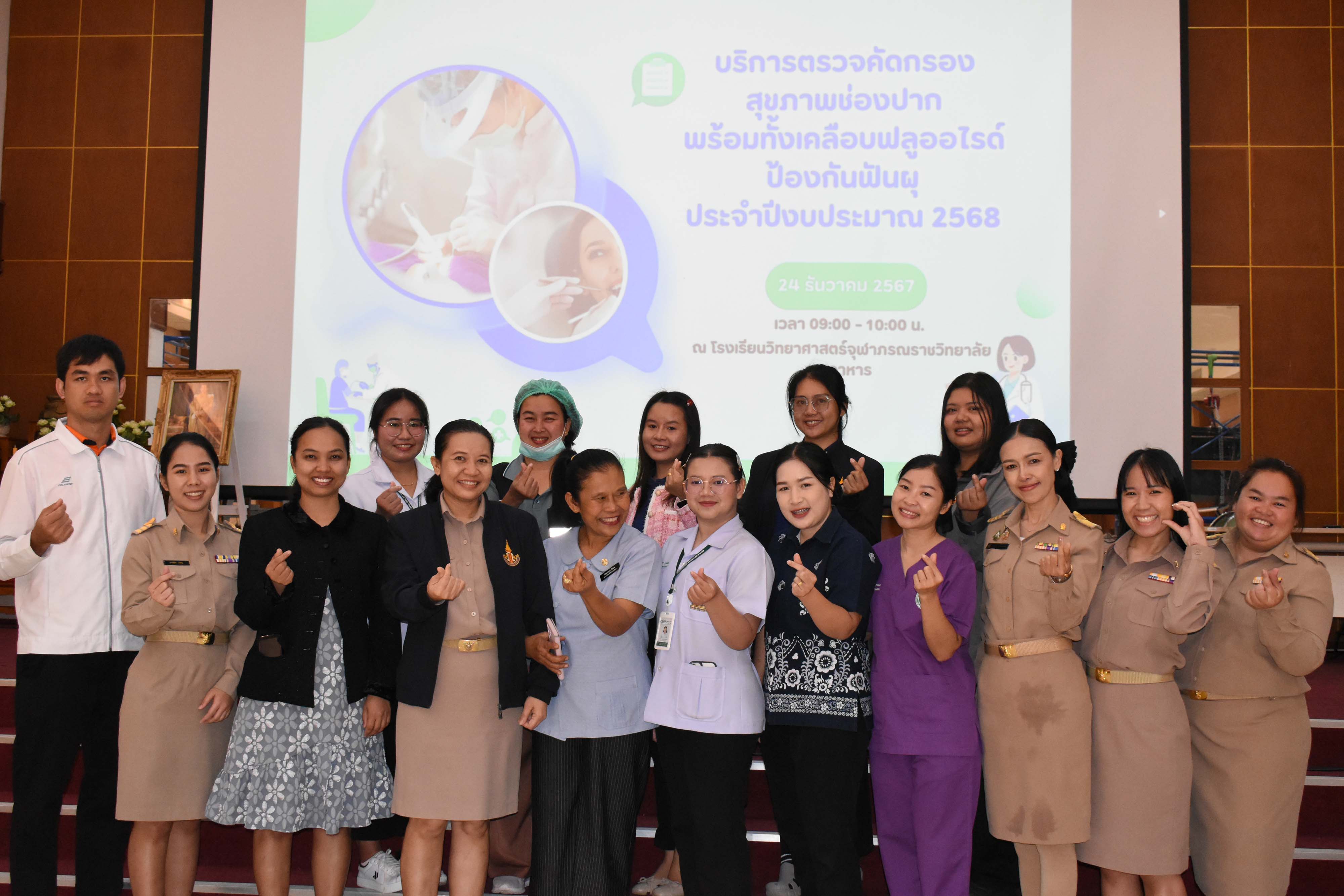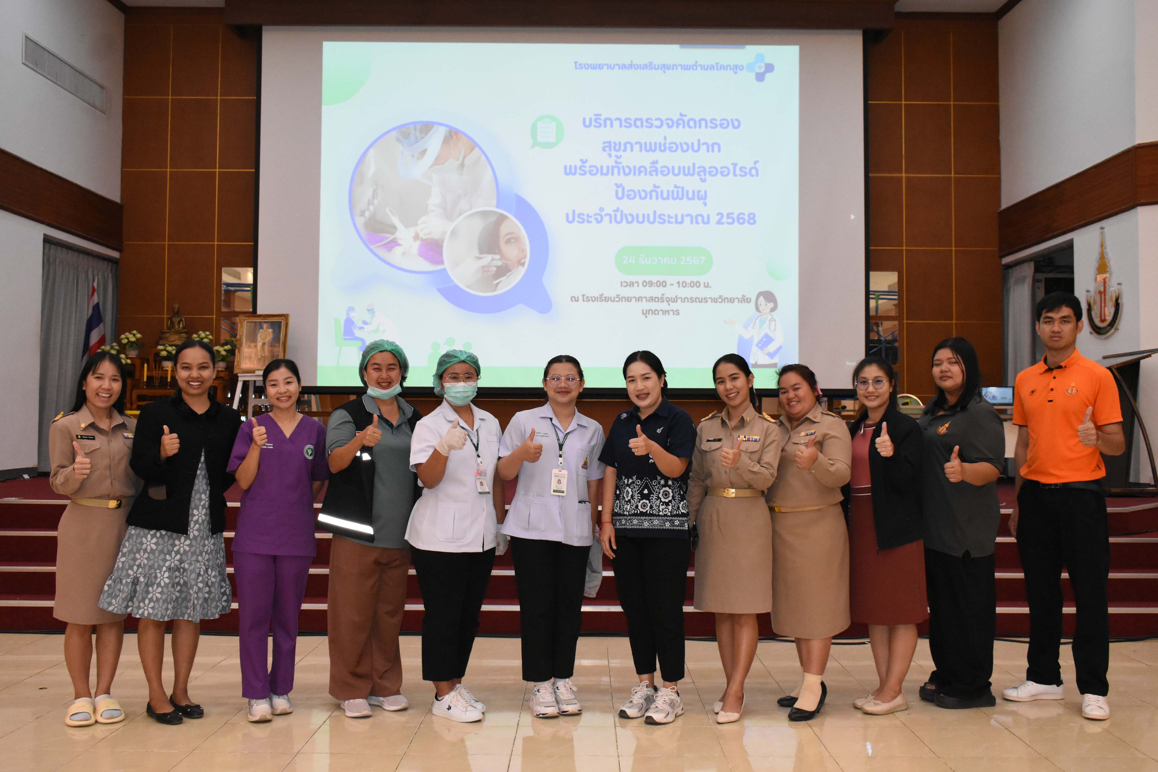 โรงเรียนวิทยาศาสตร์จุฬาภรณราชวิทยาลัย มุกดาหาร ร่วมกับโรงพยาบาลส่งเสริมสุขภาพตำบลโคกสูงให้บริการตรวจสุขภาพช่องปากพร้อมทั้งเคลือบฟลูออไรด์ป้องกันฟันผุ ประจำปีงบประมาณ 2568 แก่ครูและบุคลากรภายในโรงเรียน ในวันอังคารที่ 24 ธันวาคม พ.ศ. 2567 เวลา 09.00-11.00 น.