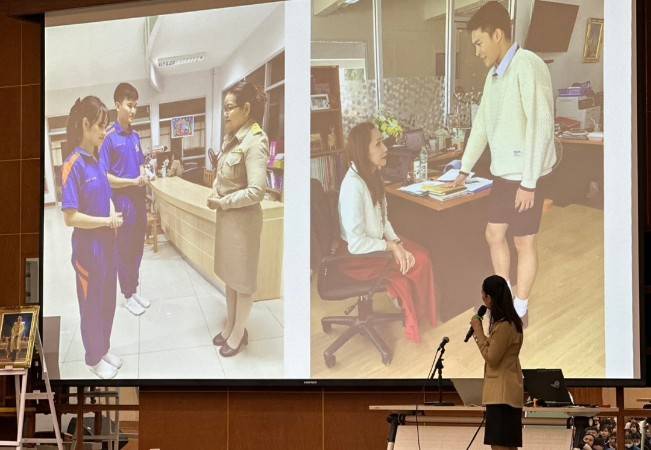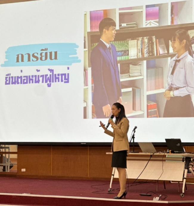กิจกรรมบรรยายพิเศษด้านบุคลิกภาพและความฉลาดทางอารมณ์ เรื่อง บุคลิกภาพและการวางตนในสังคม วิทยากรโดย นางสาวดวงดาว มงคลสวัสดิ์ ครูชำนาญการพิเศษ กลุ่มสาระการเรียนรู้วิทยาศาสตร์และเทคโนโลยี สาขาชีววิทยา โรงเรียนวิทยาศาสตร์จุฬาภรณราชวิทยาลัย มุกดาหาร จัดกิจกรรมขึ้นในวันที่ 8 มกราคม พ.ศ. 2568 เวลา 15.30 น. ณ หอประชุมโรงเรียนวิทยาศาสตร์จุฬาภรณราชวิทยาลัย มุกดาหาร มีนักเรียนชั้นมัธยมศึกษาปีที่ 1, มัธยมศึกษาปีที่ 2, มัธยมศึกษาปีที่ 4, มัธยมศึกษาปีที่ 5 เข้าร่วมอบรม ซึ่งมีหัวข้อในการอบรมประกอบด้วย การวางตัว ท่าทาง การแต่งกาย การทำความเคารพ มารยาทต่างๆในสังคม เป็นความรู้ที่นักเรียนสามารถนำไปใช้แล้วจะเกิดประโยชน์แก่ตัวนักเรียนเอง และนำความสุข ความเจริญก้าวหน้าในชีวิตของผู้เรียนสืบไป