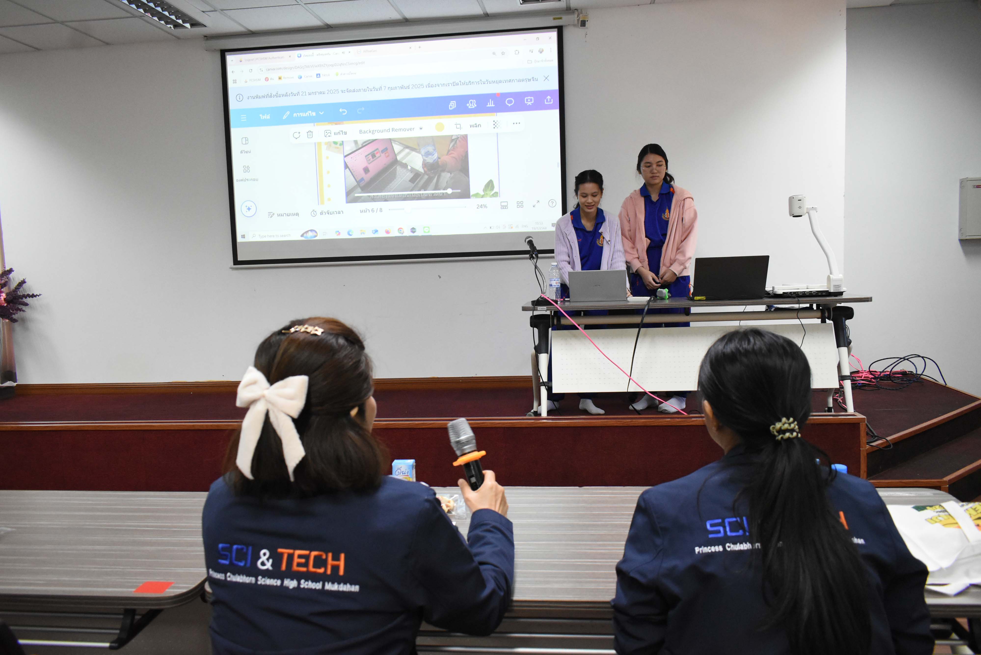 ในวันศุกร์ที่ 17 มกราคม พ.ศ. 2568 เวลา 09.00 น. นายประกาศ อ่อนตาม รองผู้อำนวยการโรงเรียนวิทยาศาสตร์จุฬาภรณราชวิทยาลัย มุกดาหาร เป็นประธานกล่าวเปิดกิจกรรมค่ายวิชาการระดับชั้นมัธยมศึกษาตอนปลาย ซึ่งดำเนินการจัดกิจกรรมภายใต้ชื่อ “จุดประกายความคิดการทำโครงงานวิทยาศาสตร์ด้วยการประยุกต์ใช้เทคโนโลยีร่วมกับความรู้ด้าน AI สำหรับนักเรียนชั้นมัธยมศึกษาปีที่ 4 ปีการศึกษา 2567” จัดกิจกรรมระหว่างวันที่ 17-19 มกราคม พ.ศ. 2568 สถานที่จัดกิจกรรม ณ หอประชุมโรงเรียนวิทยาศาสตร์จุฬาภรณราชวิทยาลัย มุกดาหาร