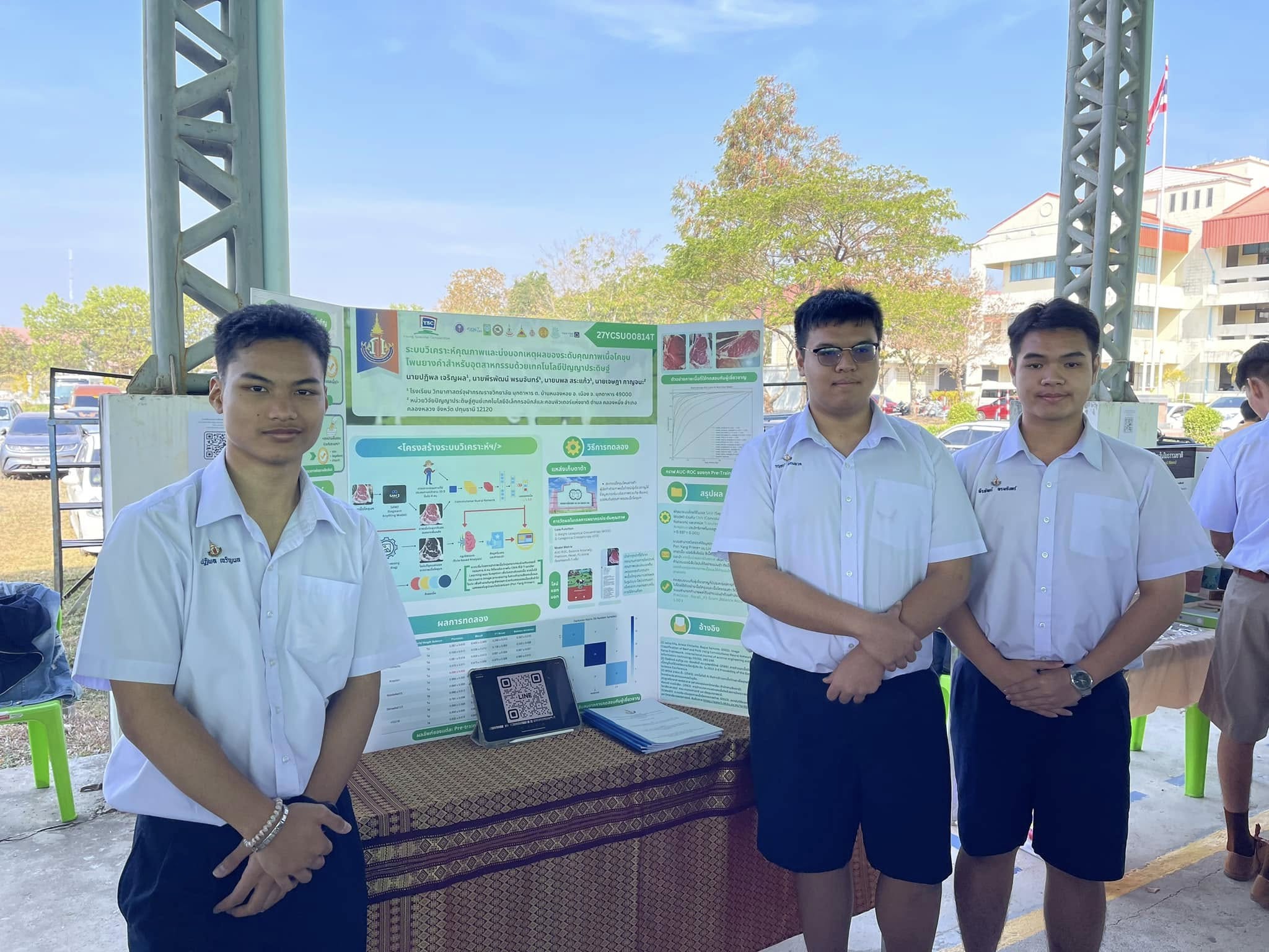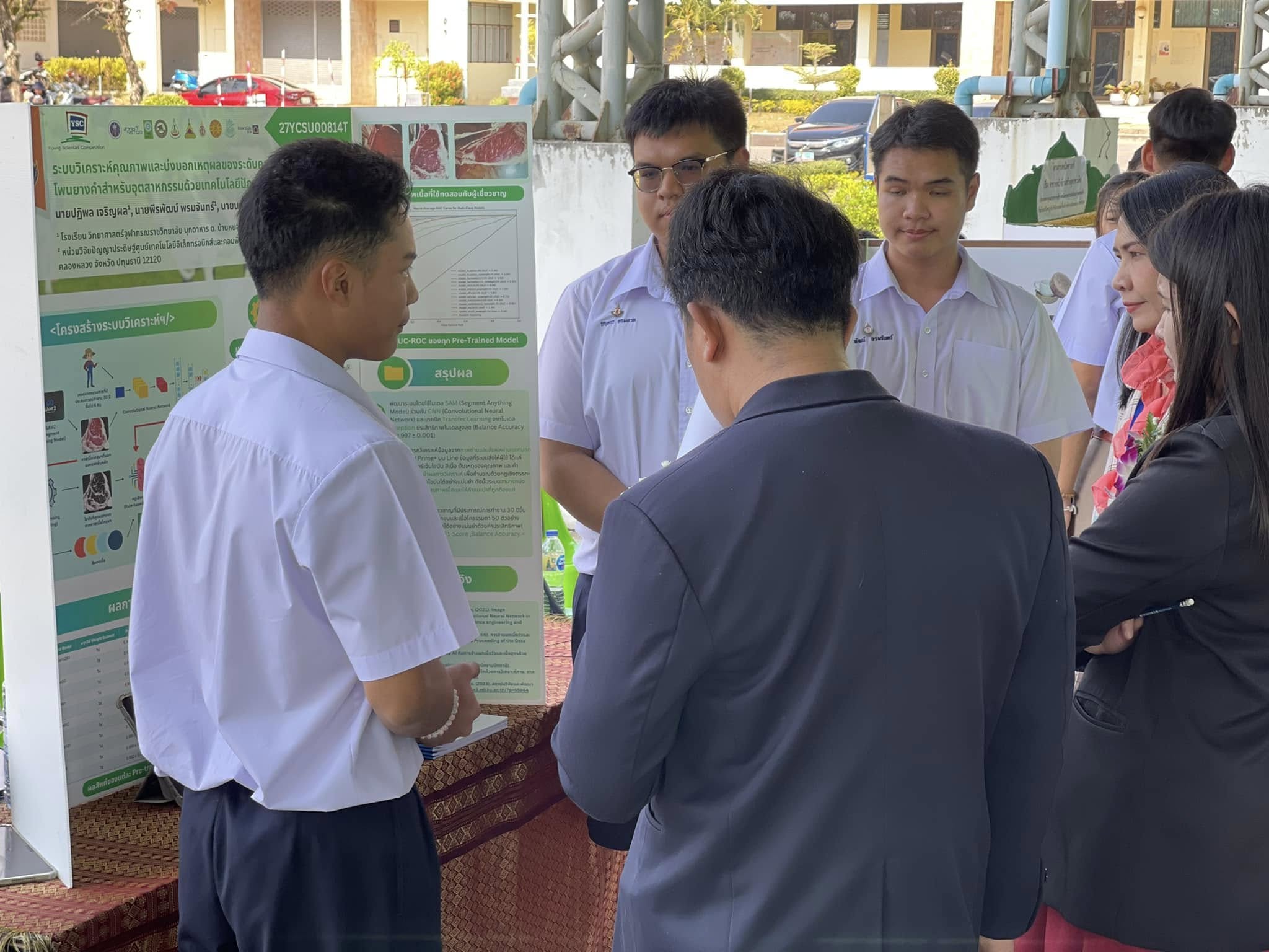 รางวัลรองชนะเลิศอันดับที่ 1 โครงงานระบบวิเคราะห์คุณภาพและบ่งบอกเหตุผลของระดับคุณภาพเนื้อโคขุนโพนยางคำสำหรับอุตสาหกรรมด้วยเทคโนโลยีปัญญาประดิษฐ์ ผู้พัฒนางาน นายปฏิพล เจริญผล, นายกฤษกร หอมหวล และนายพีรพัฒน์ พรมจันทร์ ครูที่ปรึกษา นายนพล สระแก้ว