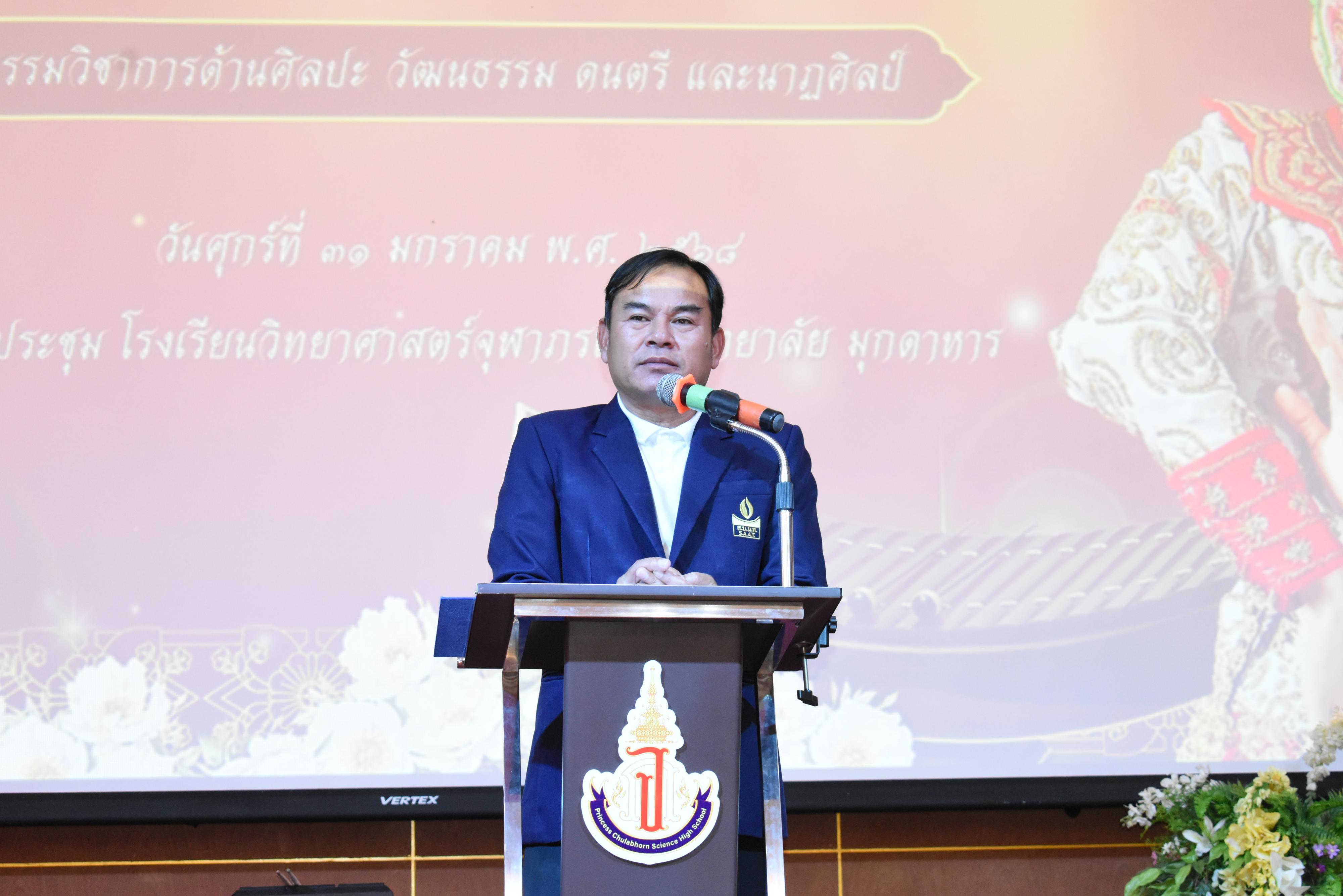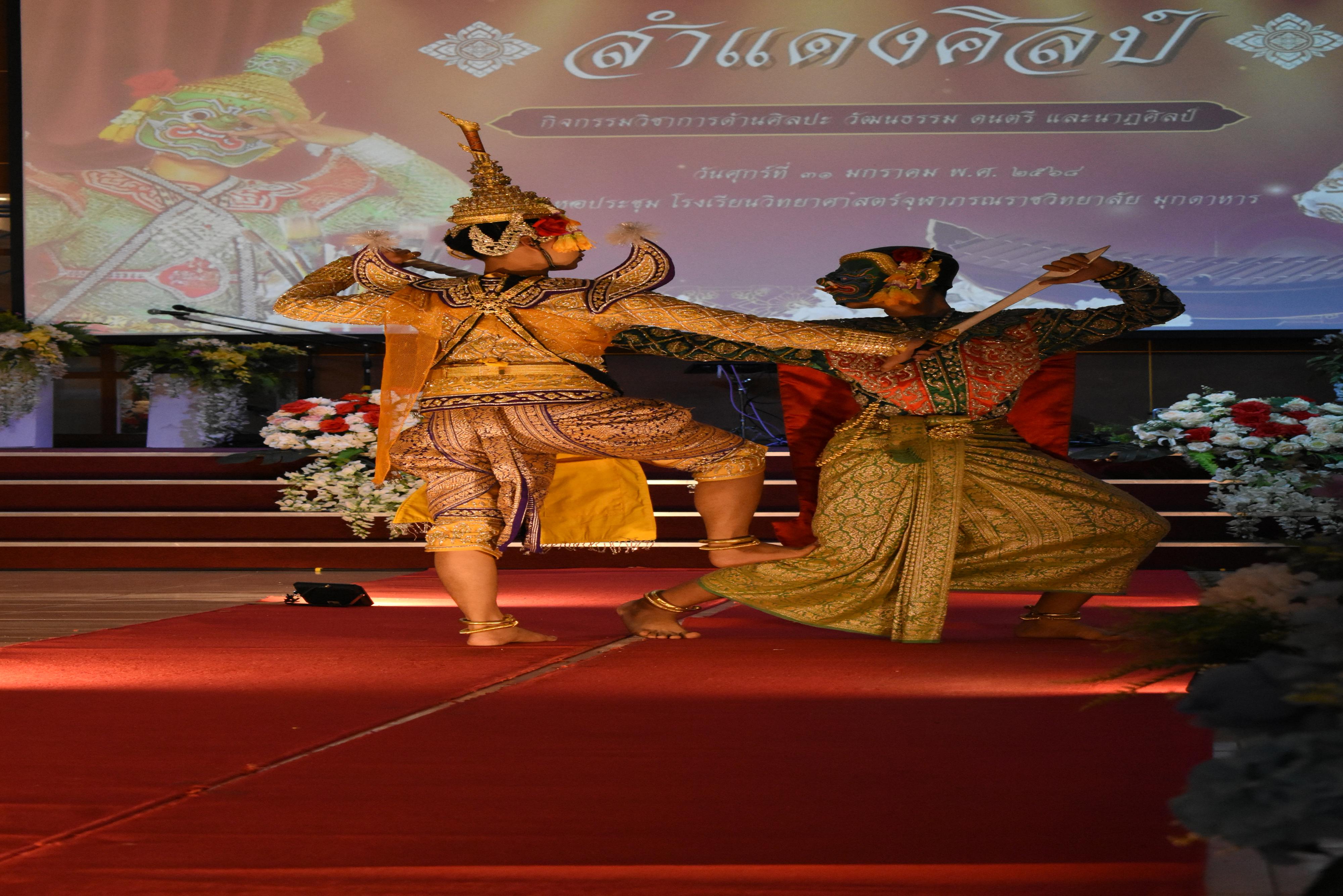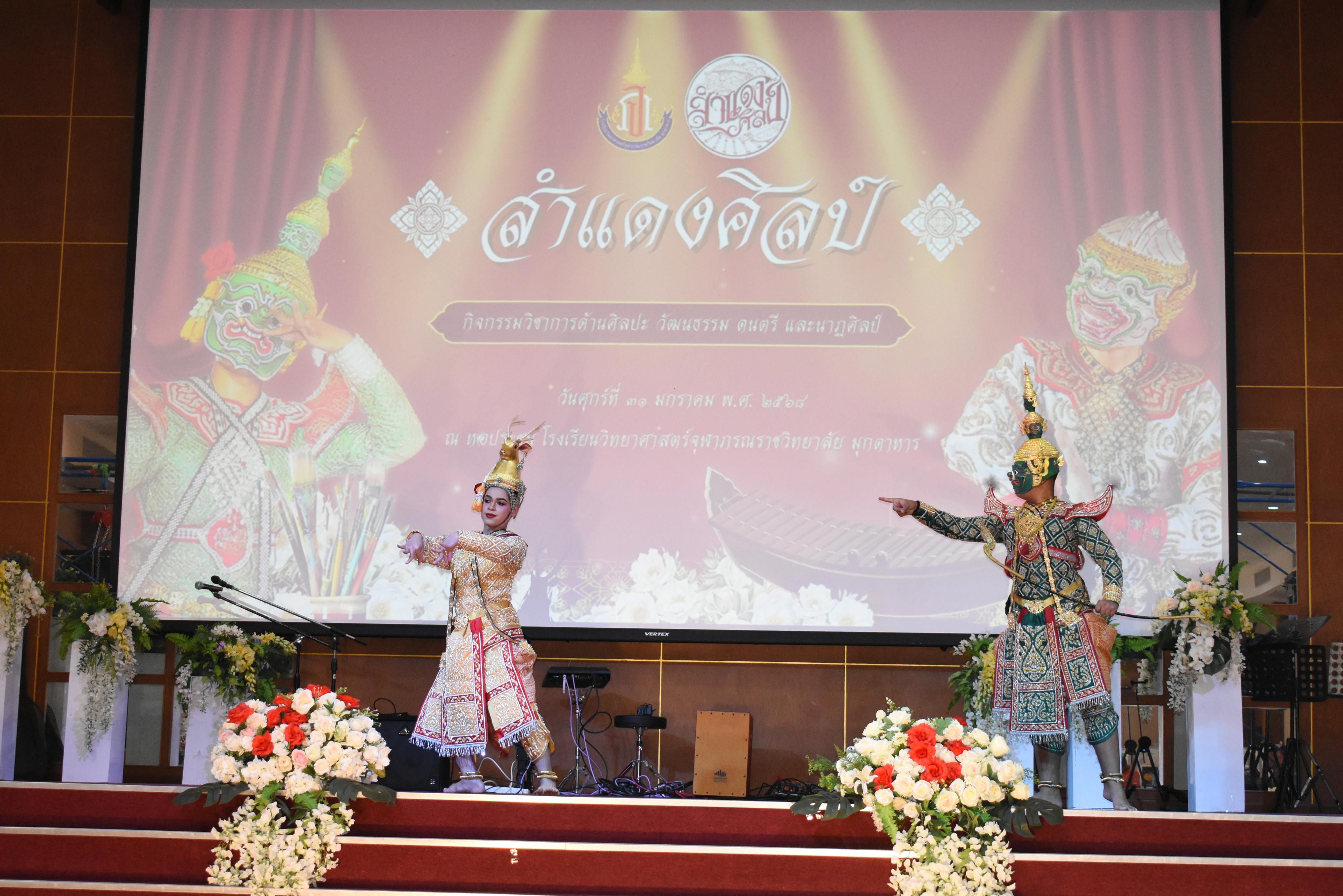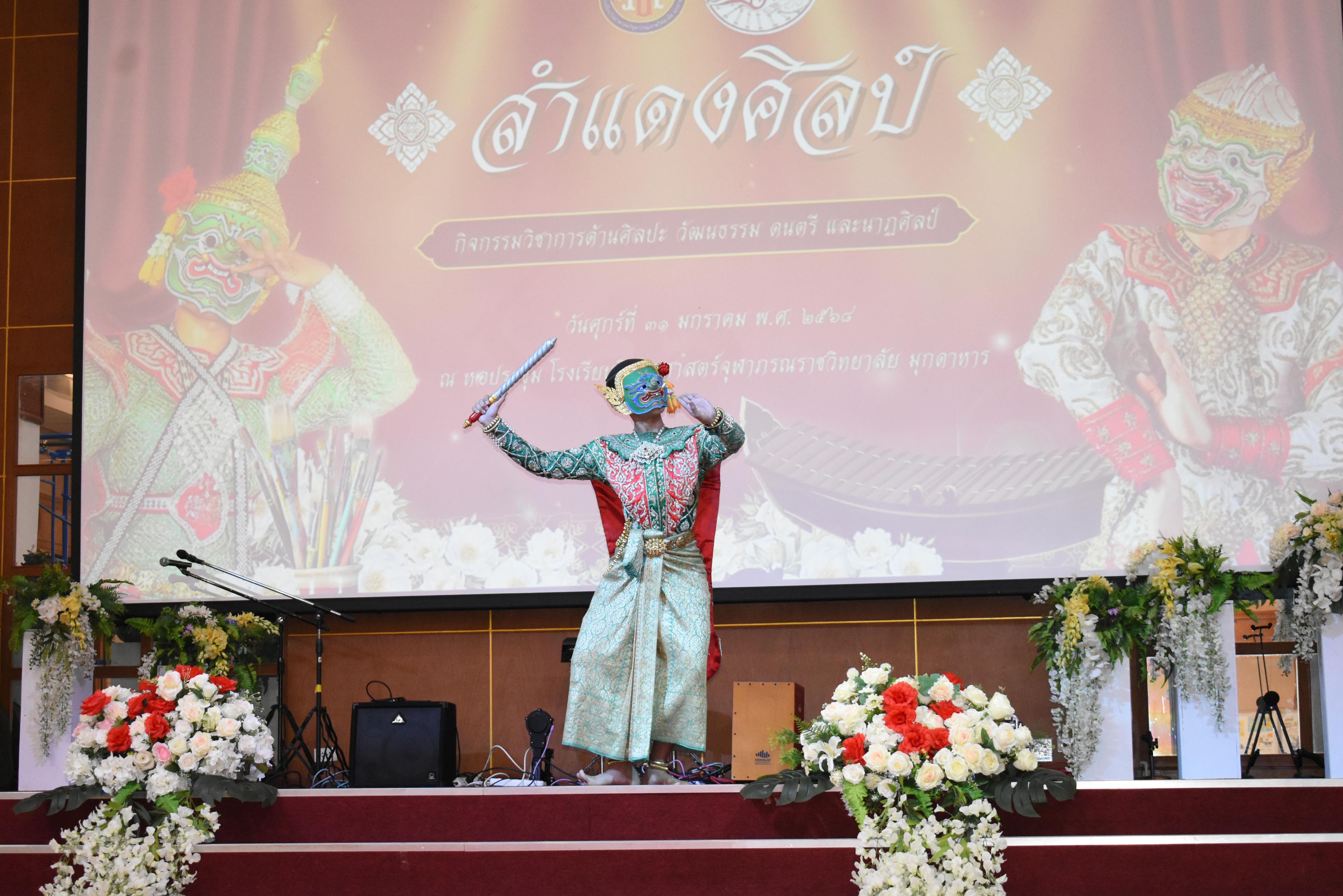 ในวันศุกร์ที่ 31 มกราคม พ.ศ. 2568 เวลา 13.00 น. นายศักดิ์ รุ่งแสง ผู้อำนวยการโรงเรียนวิทยาศาสตร์จุฬาภรณรราชวิทยาลัย มุกดาหาร เป็นประธานกล่าวเปิดงานกิจกรรมวิชาการด้านศิลปะ วัฒนธรรม ดนตรีและนาฏศิลป์ กิจกรรม ปีการศึกษา 2567 ภายใต้หัวข้อ สําแดงศิลป์ '67 จัดขึ้นที่หอประชุมใหญ่โรงเรียนวิทยาศาสตร์จุฬาภรณรราชวิทยาลัย มุกดาหาร ซึ่งภายในงานได้มีการจัดนิทรรศการและการแสดงด้านศิลปะวัฒนธรรมมามาก เช่น การแสดงวงดนตรีไทยนักเรียน โรงเรียนวิทยาศาสตร์จุฬาภรณราชวิทยาลัย มุกดาหาร การบริการวิชาการด้านดนตรี และนาฏศิลป์ไทยจากวิทยาลัยนาฏศิลป์ร้อยเอ็ด กิจกรรม The Mask Fashion Show