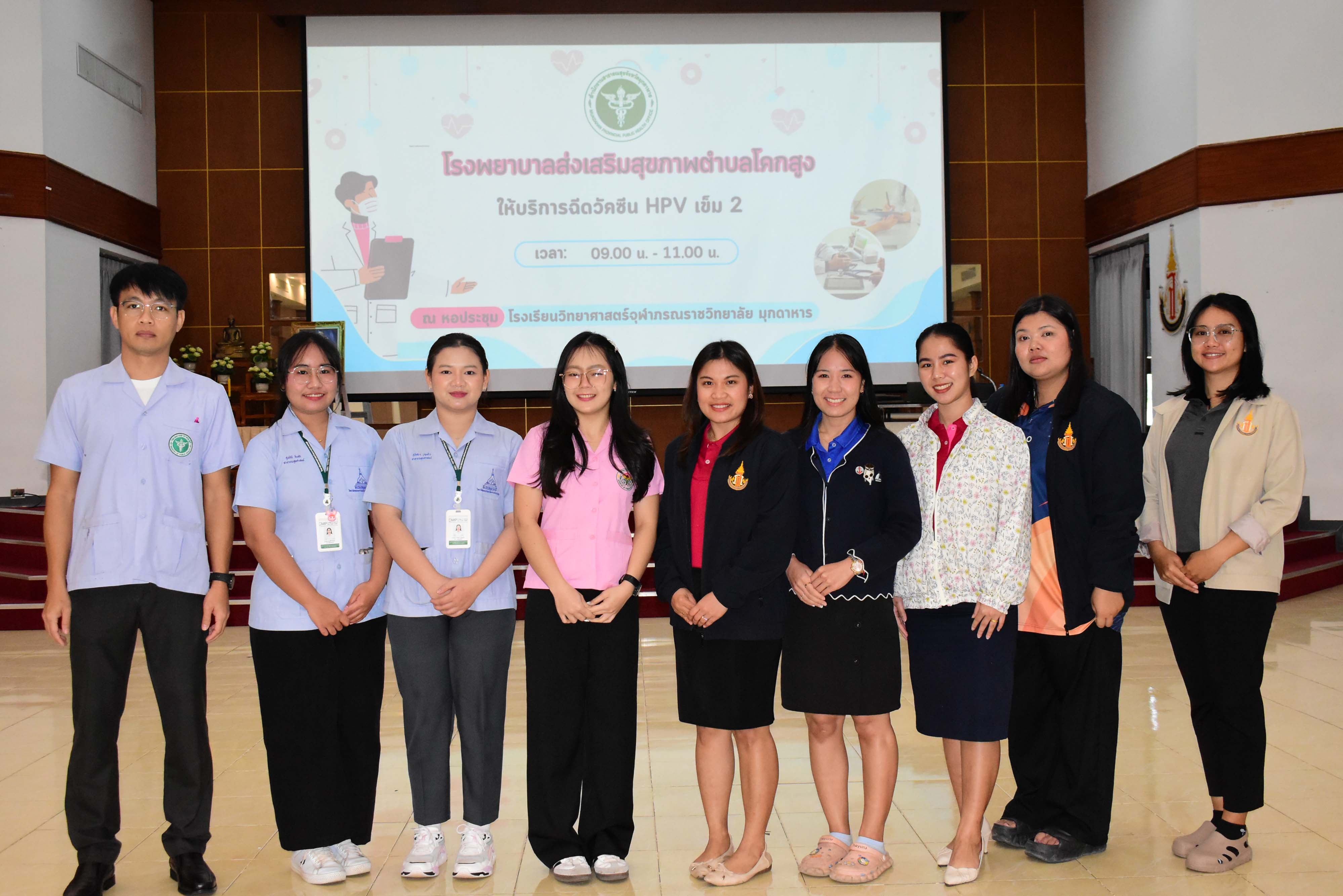 โรงพยาบาลส่งเสริมสุขภาพตำบลโคกสูงออกหน่วยให้การบริการฉีดวัคซีนป้องกันมะเร็งปากมดลูก(HPV) สำหรับนักเรียนโรงเรียนวิทยาศาสตร์จุฬาภรณราชวิทยาลัย มุกดาหาร ในวันพุธที่ 5 กุมภาพันธ์ พ.ศ. 2568 เวลา 09.00 - 11.00 น. ณ หอประชุมโรงเรียนวิทยาศาสตร์จุฬาภรณราชวิทยาลัย มุกดาหาร