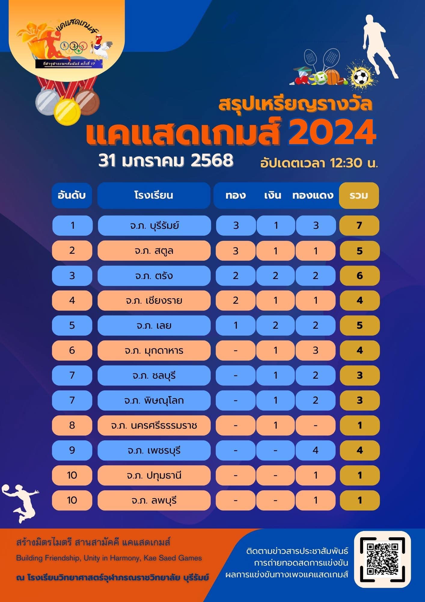 คณะผู้บริหารครูและนักเรียนโรงเรียนวิทยาศาสตร์จุฬาภรณราชวิทยาลัย มุกดาหาร เข้าร่วมการแข่งขันกีฬาจุฬาภรณฯ สัมพันธ์ แคแสดเกมส์ ครั้งที่ 17 ชิงถ้วยพระราชทาน สมเด็จพระเจ้าน้องนางเธอ เจ้าฟ้าจุฬาภรณวลัยลักษณ์ อัครราชกุมารี กรมพระศรีสวางควัฒน วรขัตติยราชนารี จัดขึ้นในระหว่างวันที่ 28 - 31 มกราคม พ.ศ. 2568 โดยในปีนี้โรงเรียนวิทยาศาสตร์จุฬาภรณราชวิทยาลัย บุรีรัมย์ เป็นเจ้าภาพสถานที่จัดการแข่งขัน ซึ่งในปีนี้มีโรงเรียนวิทยาศาสตร์จุฬาภรณราชวิทยาลัย เข้าร่วมทั้ง 18 แห่ง