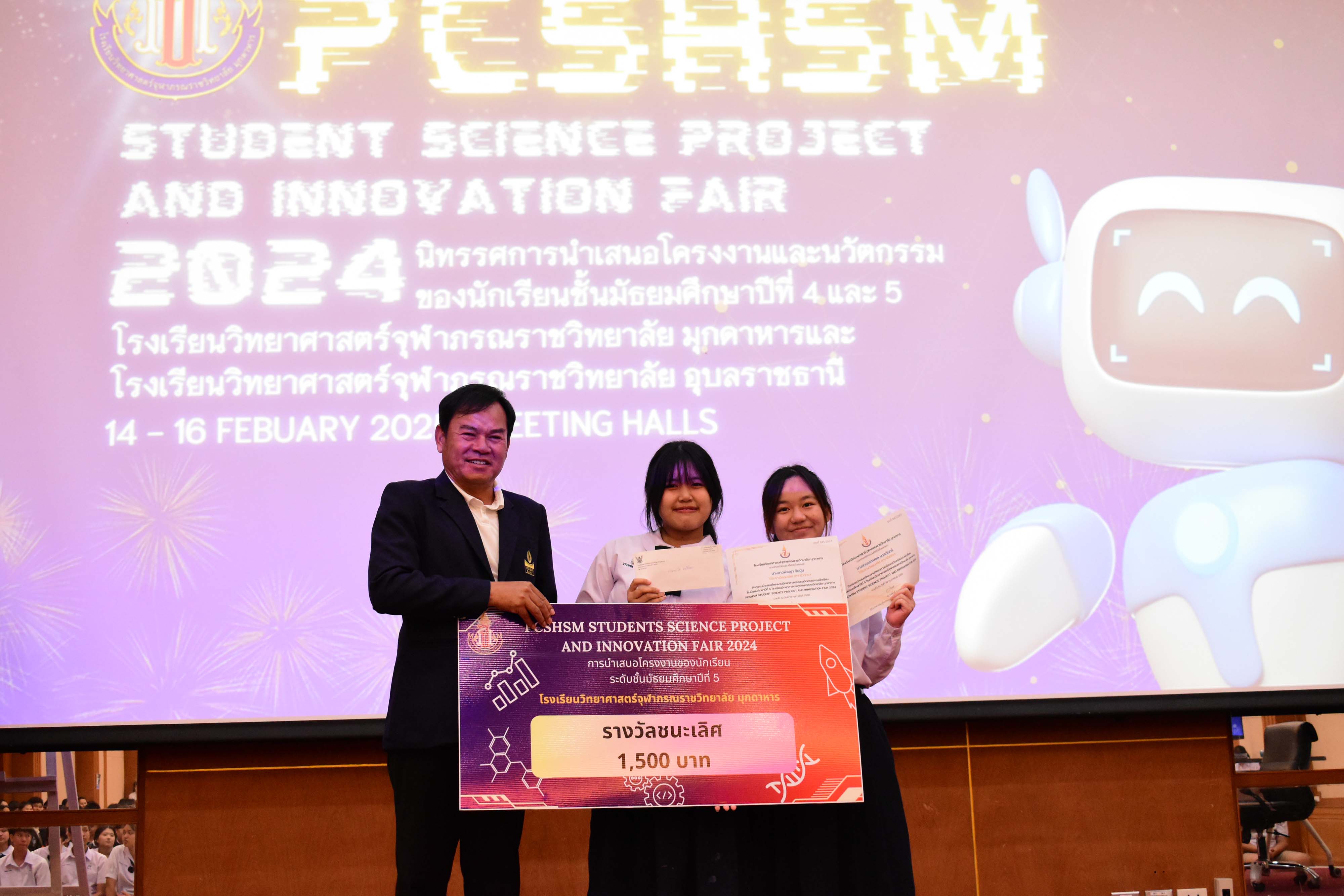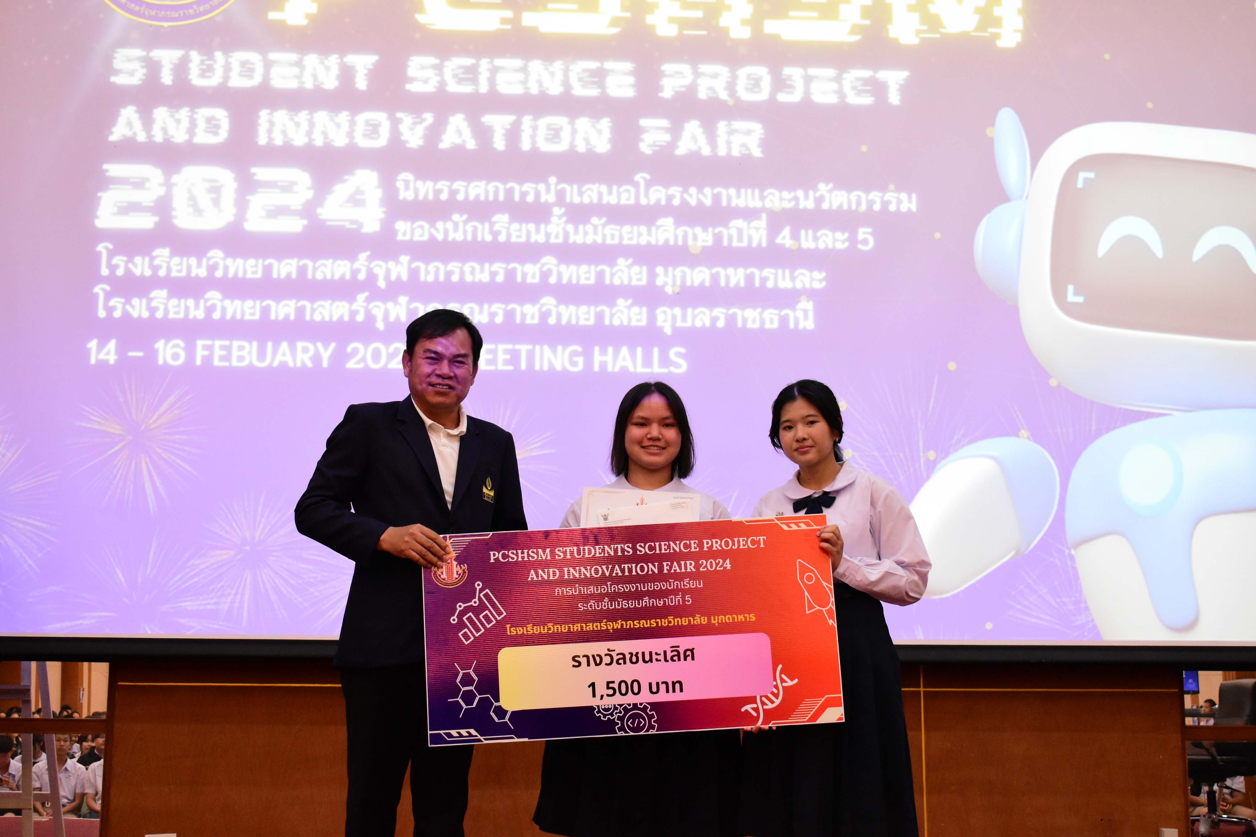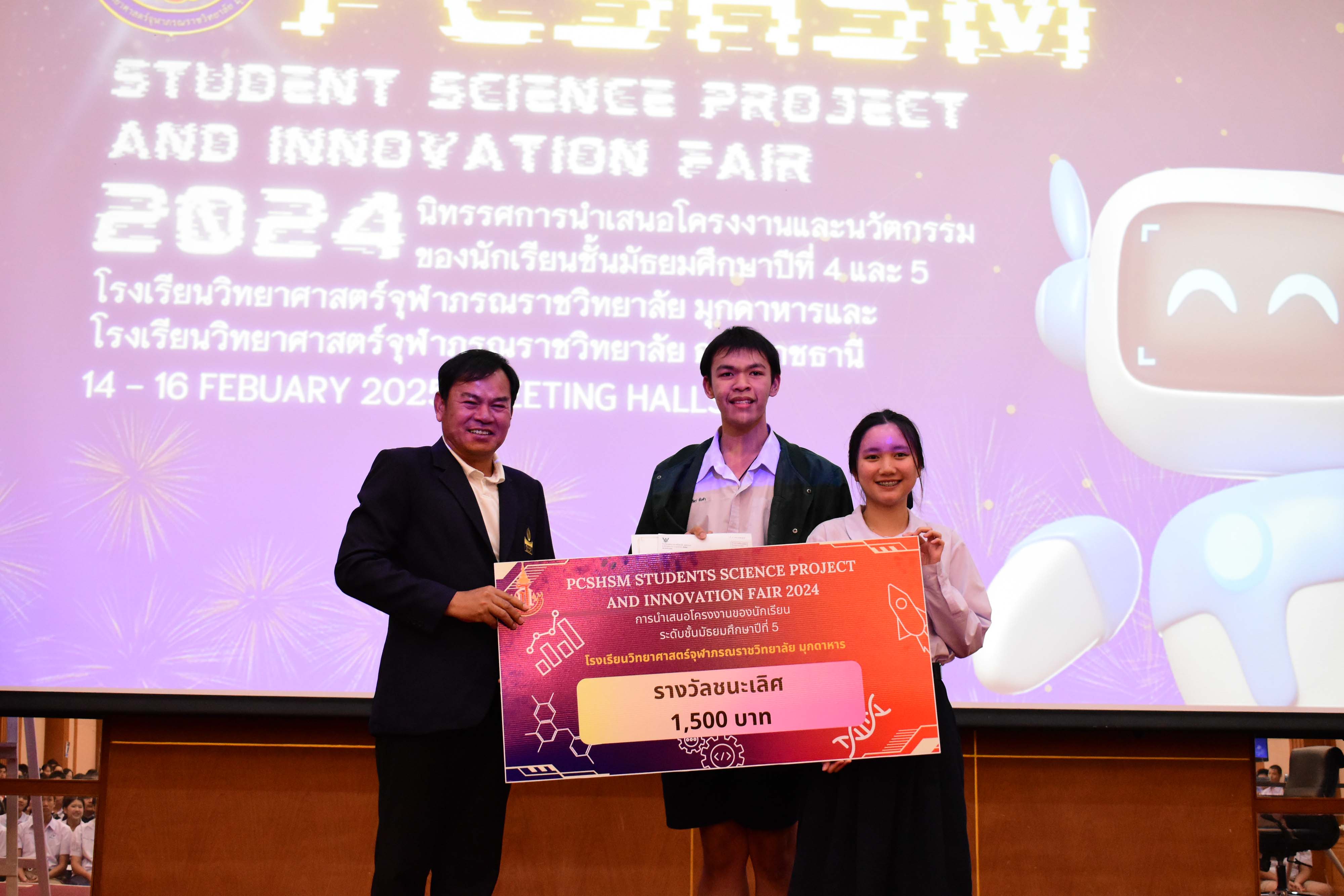 งานส่งเสริมพัฒนาโครงงานนวัตกรรมนักเรียนและสะเต็มศึกษา กลุ่มสาระการเรียนรู้วิทยาศาสตร์และเทคโนโลยี และนักเรียนระดับชั้นมัธยมศึกษาปีที่ 5 ร่วมกับโรงเรียนวิทยาศาสตร์จุฬาภรณราชวิทยาลัย มุกดาหาร จัดงานการนำเสนอโครงงานและนวัตกรรมนักเรียน PCSHSM Student Science Project and Innovation 2024 ระหว่างวันที่ 14 ถึง 16 กุมภาพันธ์ พ.ศ. 2568 ในการจัดงานครั้งนี้นายศักดิ์ รุ่งแสง ผู้อำนวยการโรงเรียนวิทยาศาสตร์จุฬาภรณราชวิทยาลัย มุกดาหาร ได้ให้เกียรติมาเป็นประธานกล่าวเปิดงานและมอบรางวัล ภายในงานมีการนำเสนอนวัตกรรมของนักเรียนชั้นมัธยมศึกษาปีที่ 4 และการนำเสนอโครงงาน ของนักเรียนชั้นมัธยมศึกษาปีที่ 5 โรงเรียนวิทยาศาสตร์จุฬาภรณราชวิทยาลัย มุกดาหาร และโรงเรียนวิทยาศาสตร์จุฬาภรณราชวิทยาลัย อุบลราชธานี โดยได้รับความอนุเคราะห์จากคณาจารย์จากมหาวิทยาลัยพี่เลี้ยง มาร่วมวิพากษ์และตัดสินโครงงาน นอกจากนี้ยังได้รับเกียรติจากคุณครูขุนทอง คล้ายทอง ครูจากโรงเรียนวิทยาศาสตร์จุฬาภรณราชวิทยาลัย ปทุมธานี มาเป็น Keynote Speaker สร้างแรงบันดาลใจให้แก่น้องๆโรงเรียนวิทยาศาสตร์จุฬาภรณราชวิทยาลัย และน้องๆจากโรงเรียนโพธิ์ไทรวิทยา โรงเรียนหนองสูงสามัคคีวิทยา โรงเรียนคำชะอีวิทยาคาร เพื่อนำไปปรับใช้ในการทำโครงงานให้ประสบผลสำเร็จต่อไป