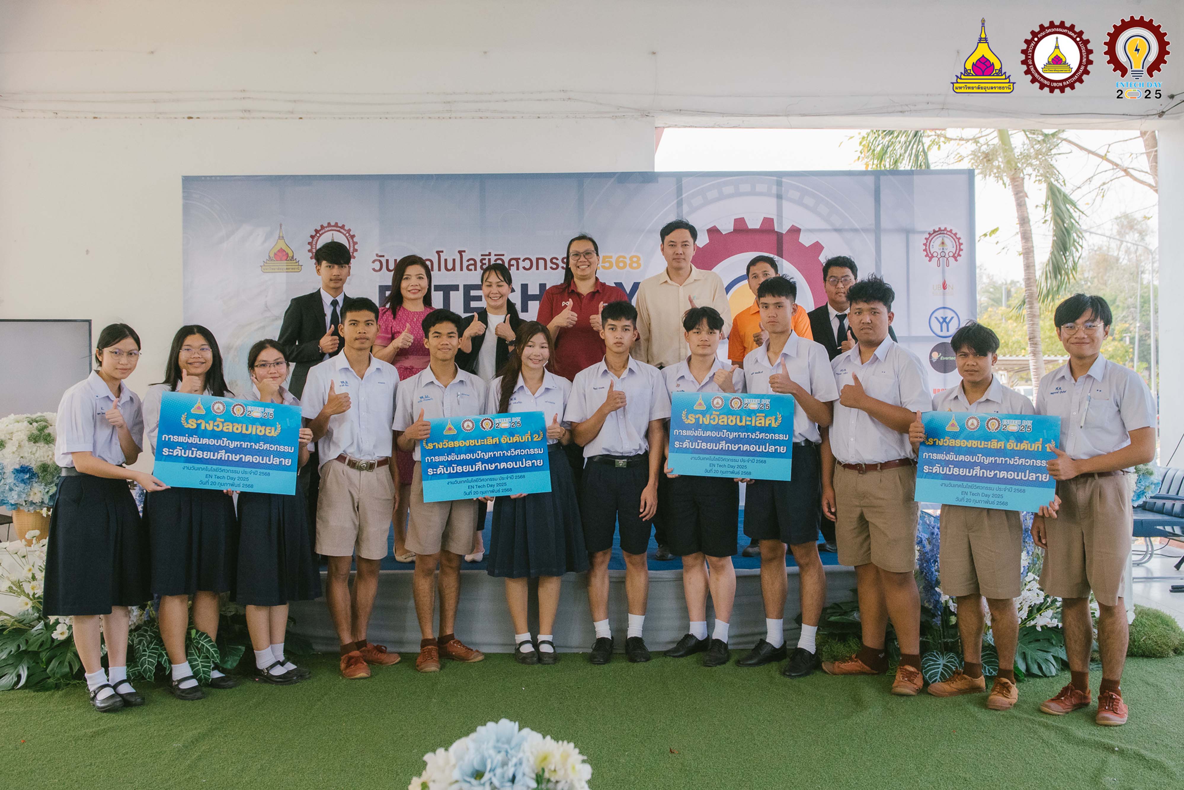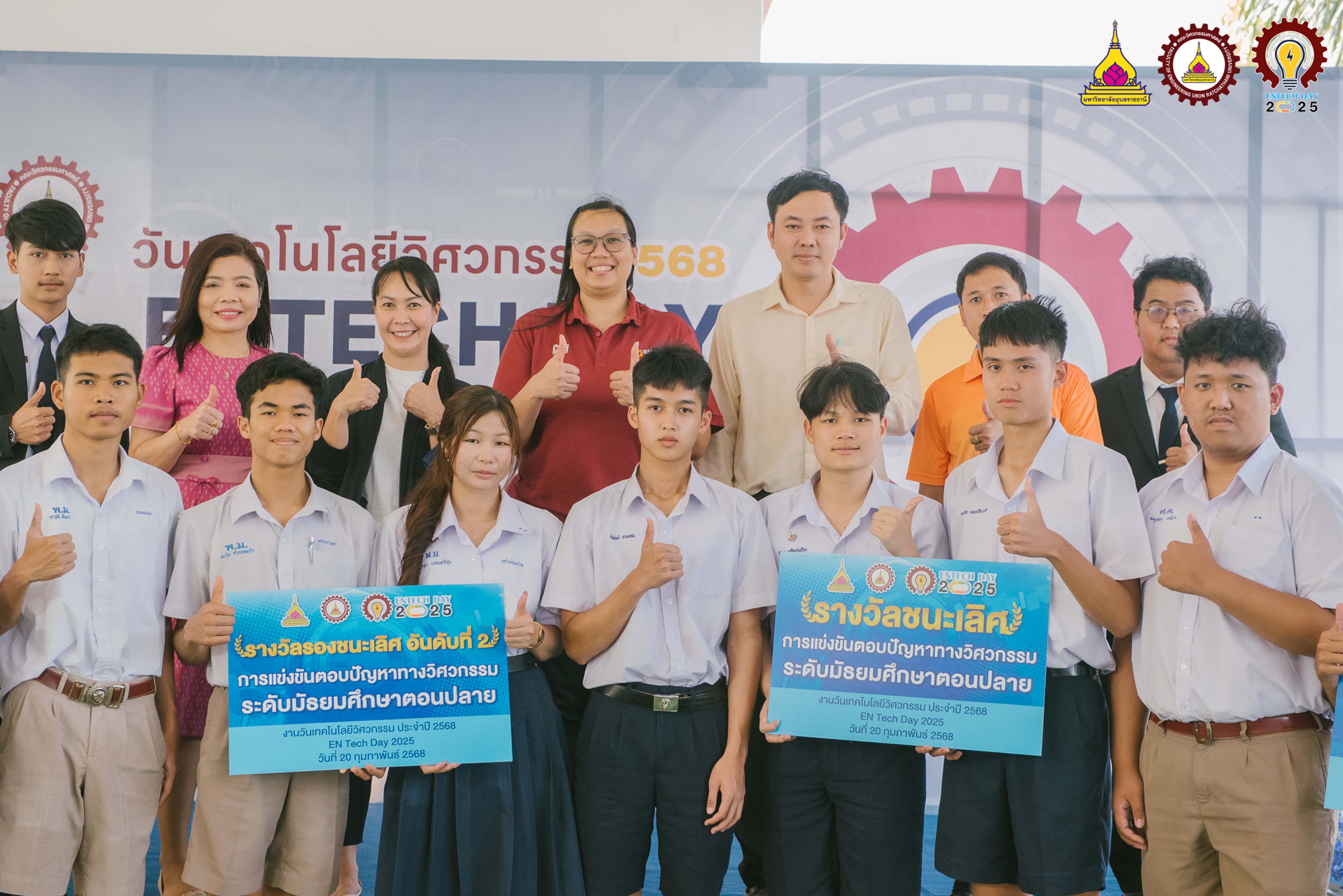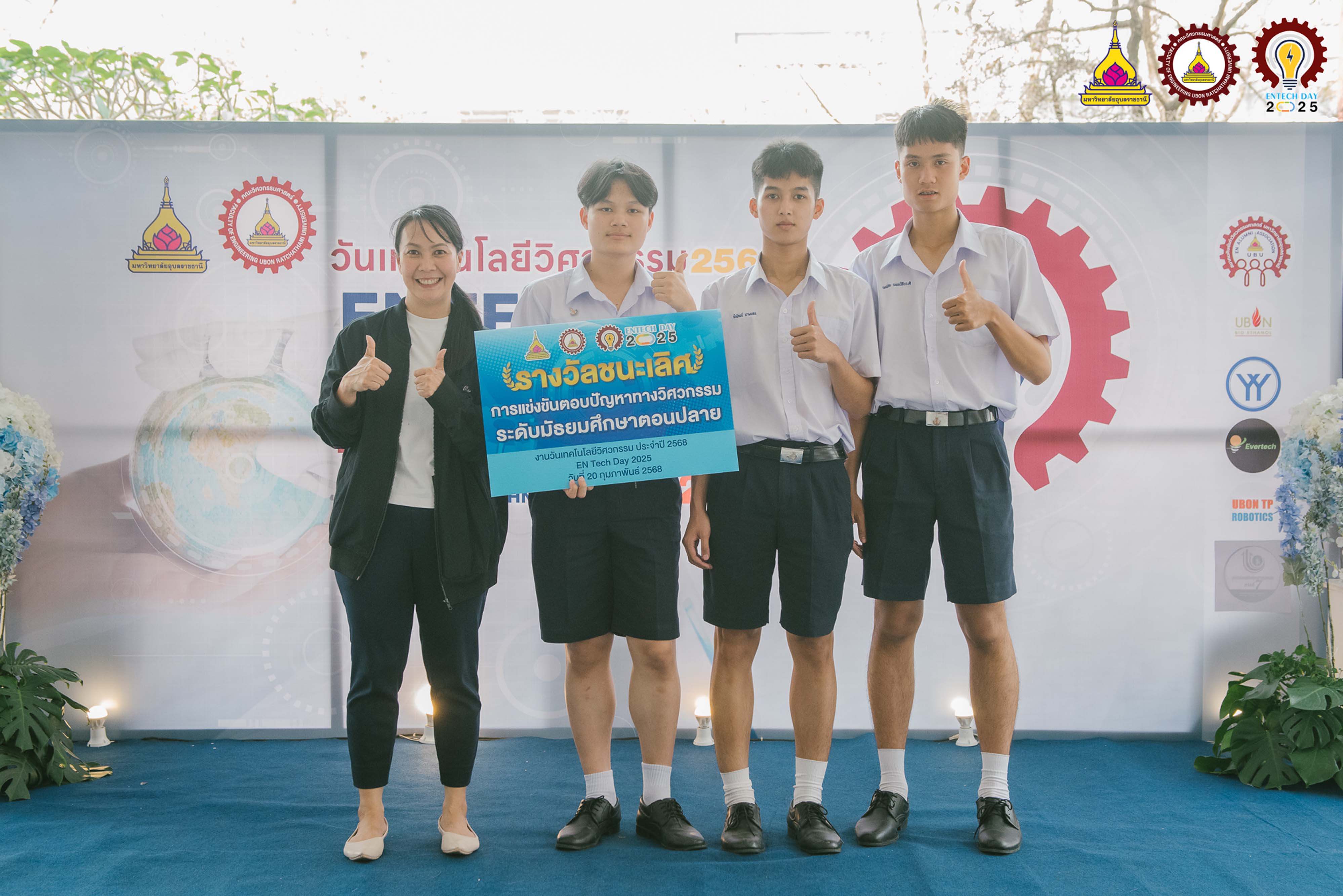 แสดงความยินดีกับรางวัลชนะเลิศการแข่งขันตอบปัญหาทางวิศวกรรม ระดับมัธยมศึกษาตอนปลายในงานวันเทคโนโลยีวิศวกรรมประจำปี 2568 ณ คณะวิศวกรรมศาสตร์ มหาวิทยาลัยอุบลราชธานี ผู้เข้าร่วมแข่งขัน นายพิพัฒน์ นามแสง, นายฐักกูร เหลืองรุ่งเรือง, นายฤทธิชัย แพทย์ชัยวงศ์ ครูผู้ควบคุมทีม นางสาวทิพย์อนันต์ โพธะกัน