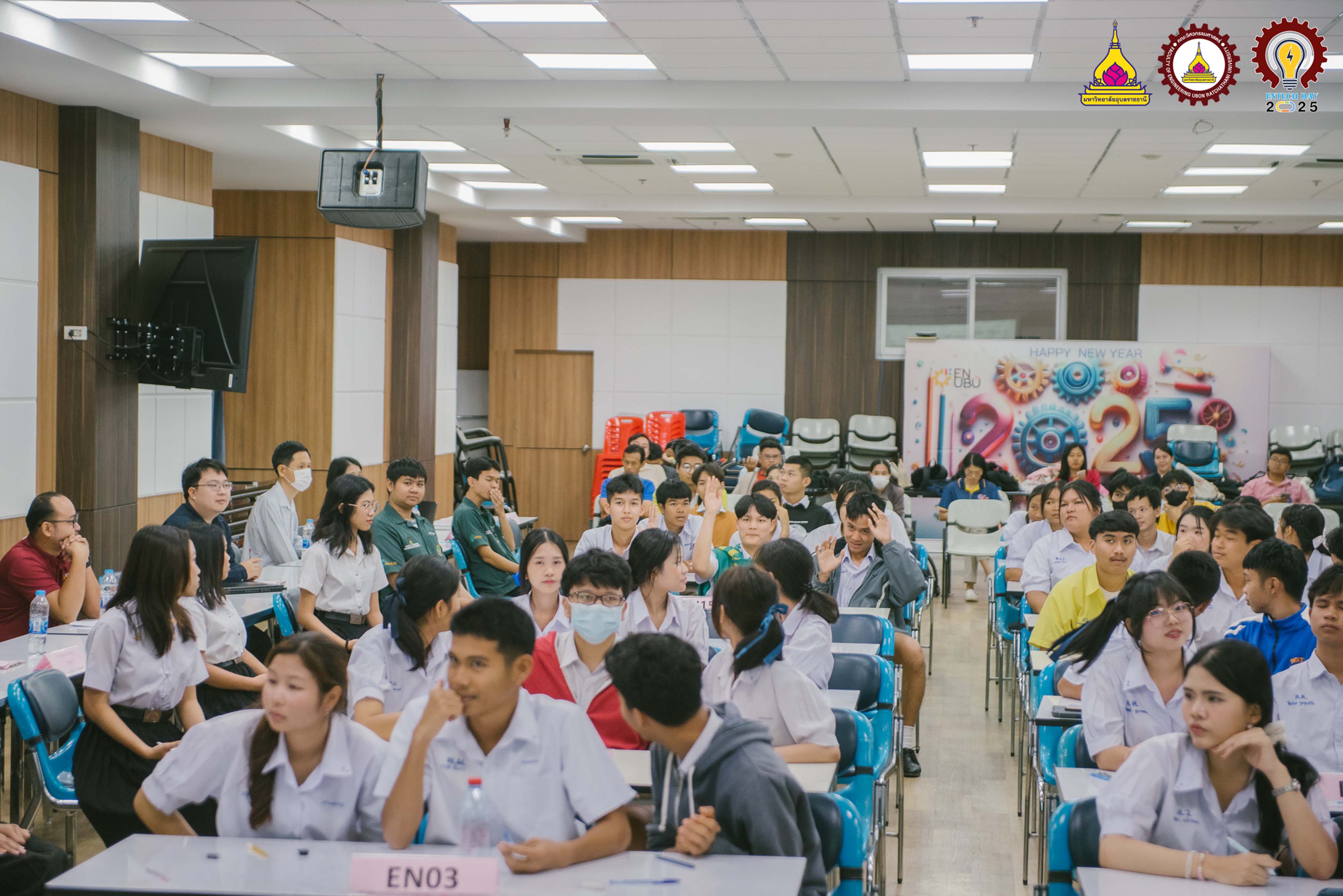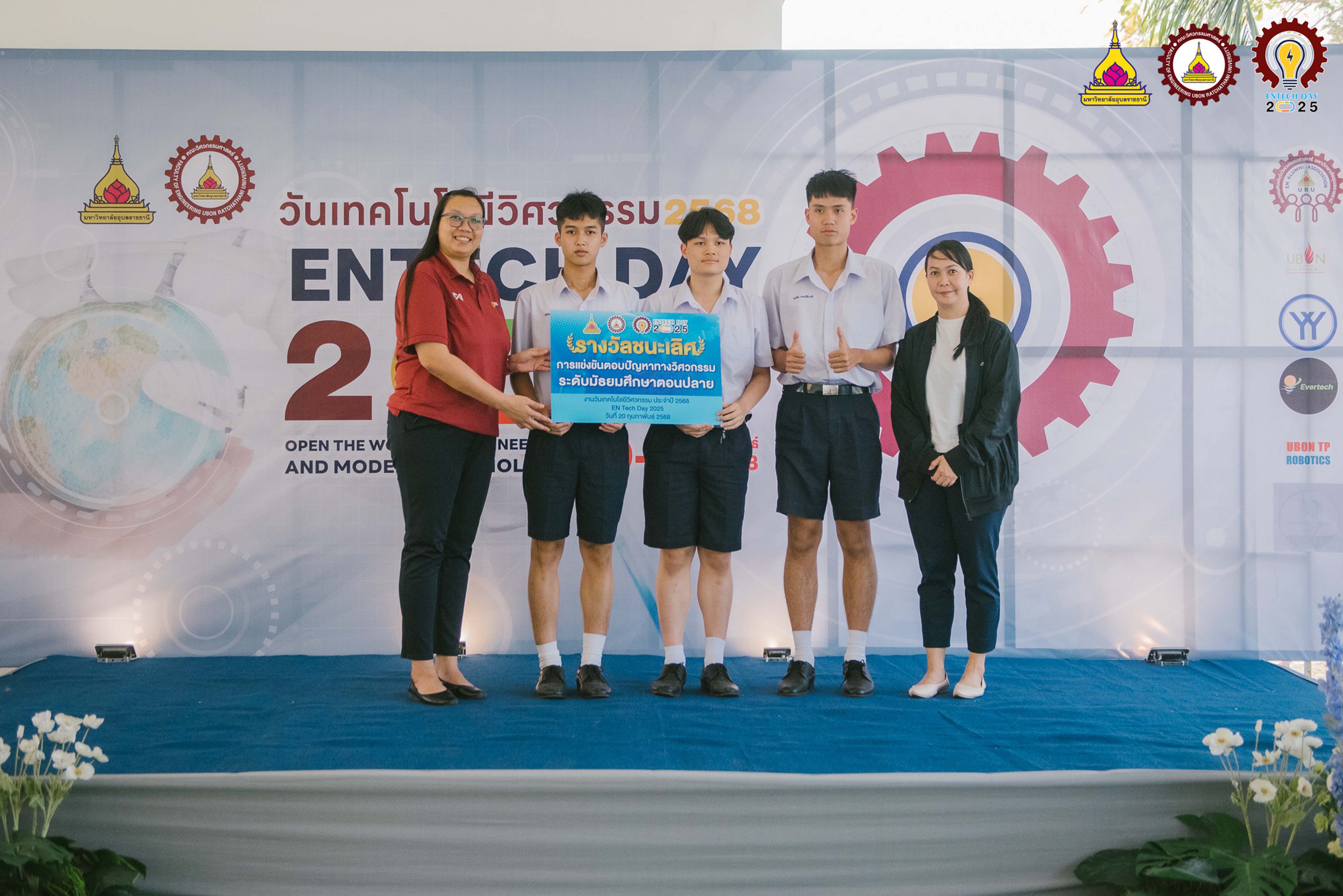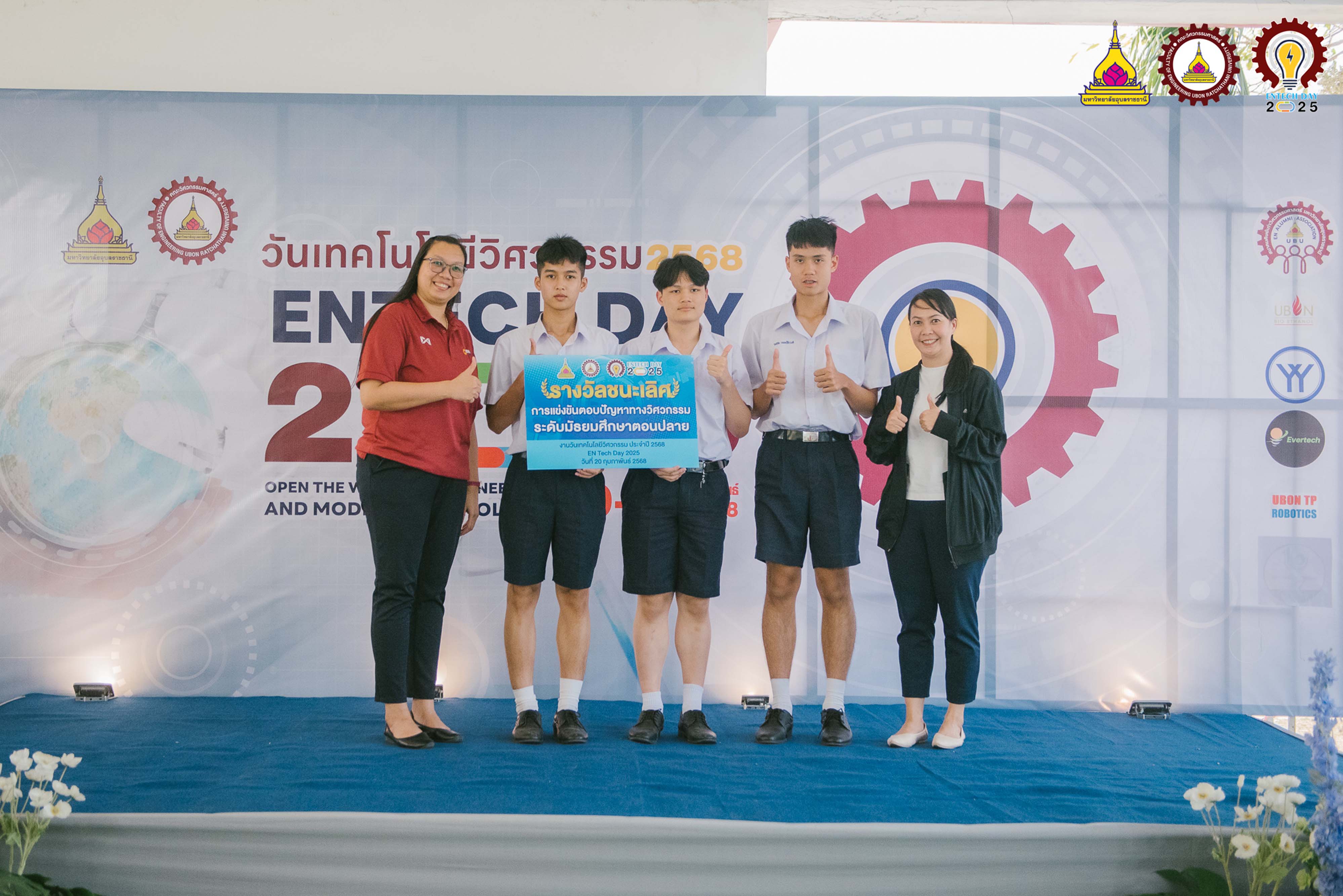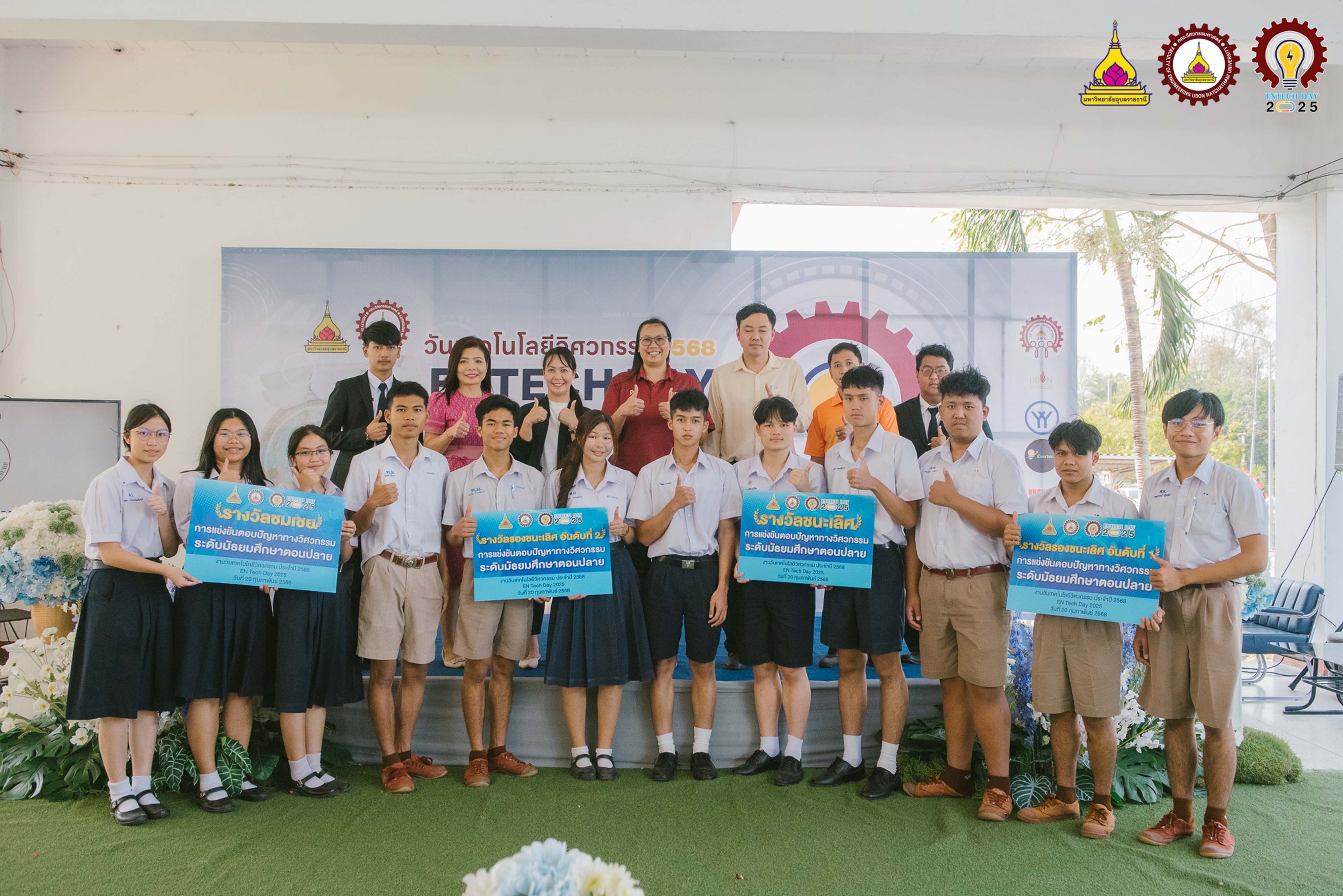 แสดงความยินดีกับรางวัลชนะเลิศการแข่งขันตอบปัญหาทางวิศวกรรม ระดับมัธยมศึกษาตอนปลายในงานวันเทคโนโลยีวิศวกรรมประจำปี 2568 ณ คณะวิศวกรรมศาสตร์ มหาวิทยาลัยอุบลราชธานี ผู้เข้าร่วมแข่งขัน นายพิพัฒน์ นามแสง, นายฐักกูร เหลืองรุ่งเรือง, นายฤทธิชัย แพทย์ชัยวงศ์ ครูผู้ควบคุมทีม นางสาวทิพย์อนันต์ โพธะกัน