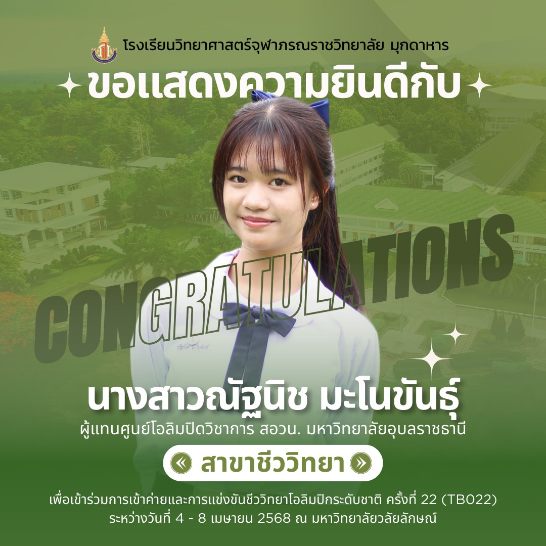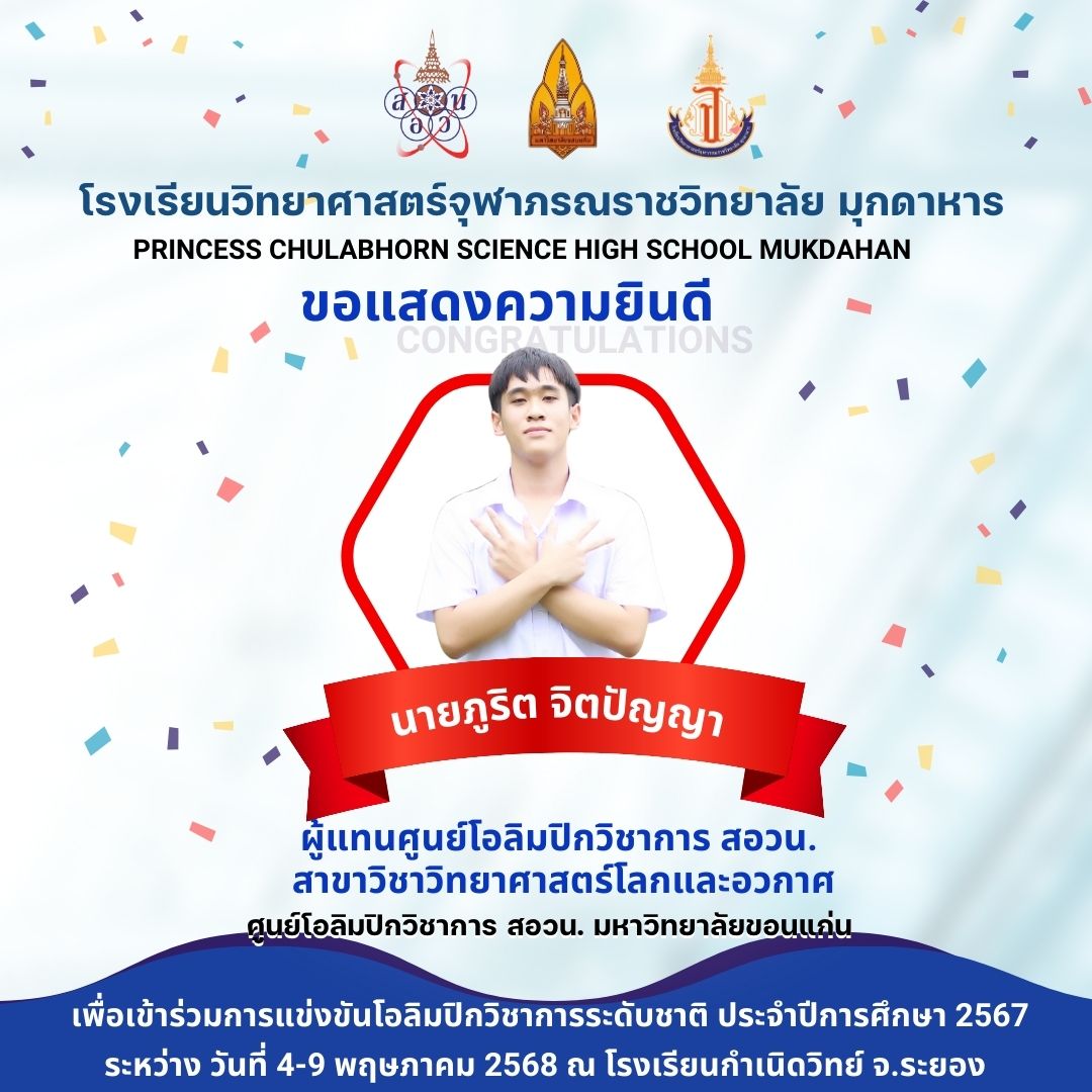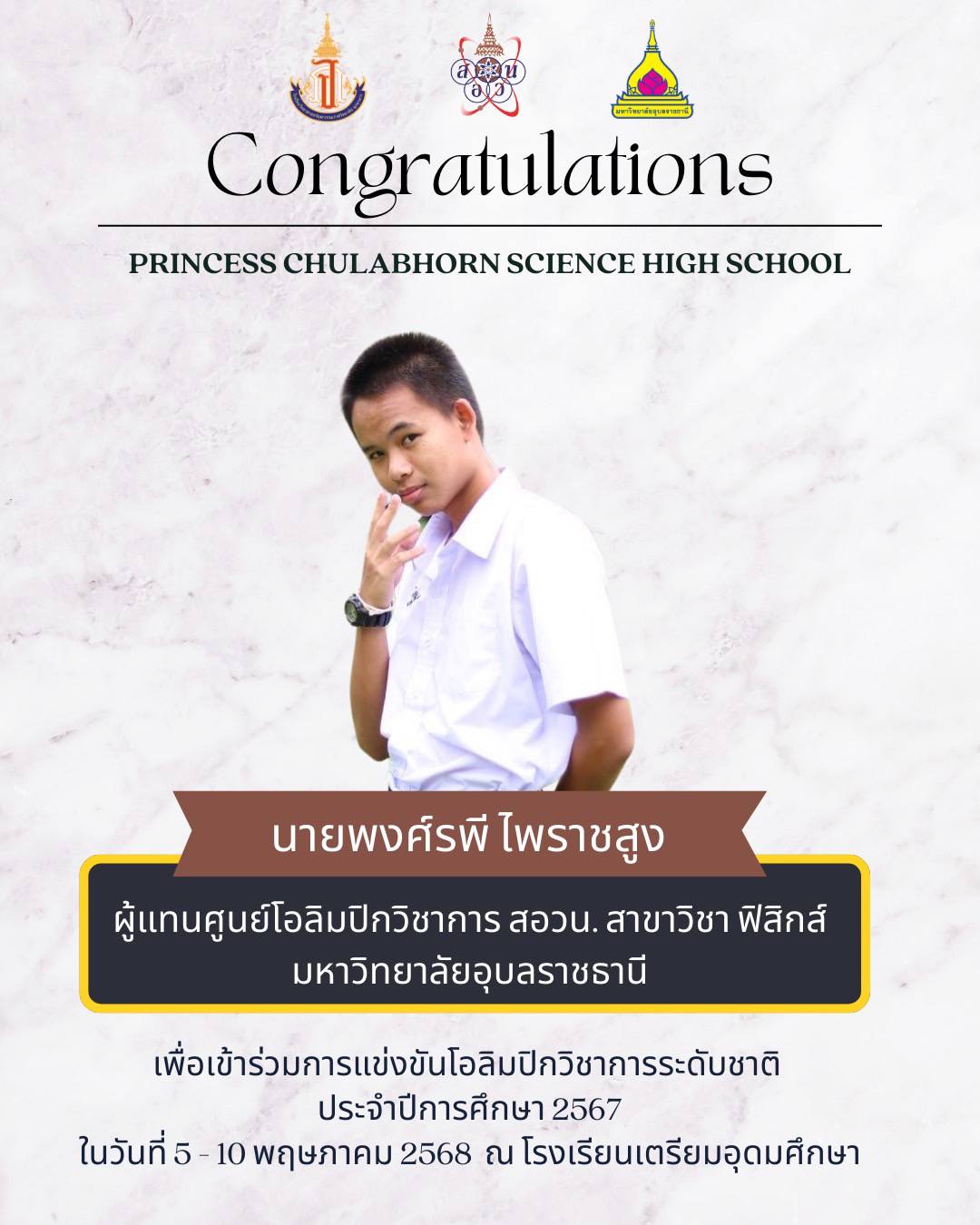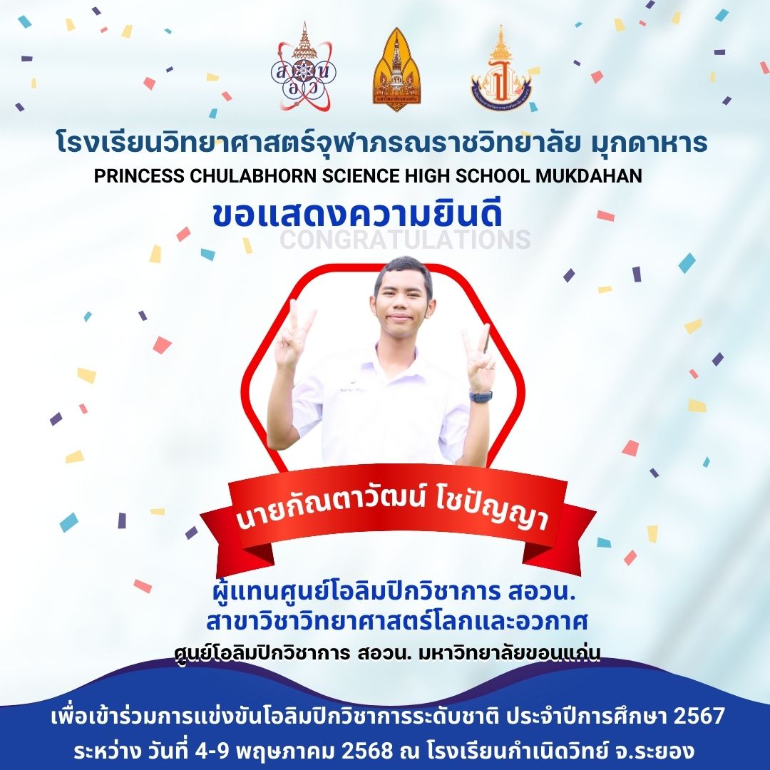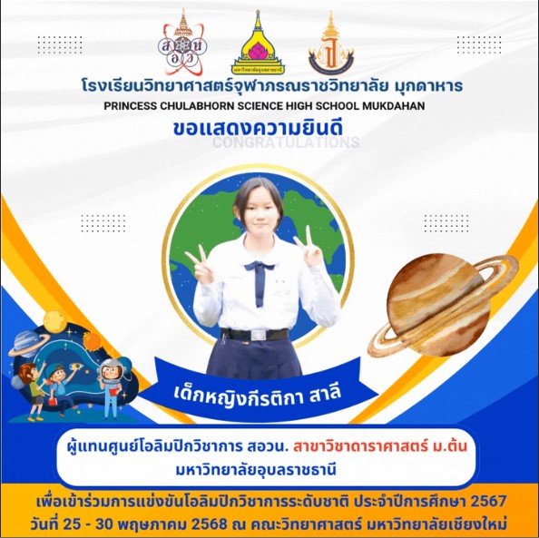 แสดงความยินดีกับที่ได้เป็นผู้แทนศูนย์โอลิมปิกวิชาการ สอวน. มหาวิทยาลัยอุบลราชธานี เพื่อเข้าร่วมการแข่งขันโอลิมปิกเคมีระดับชาติ ประจำปีการศึกษา 2567