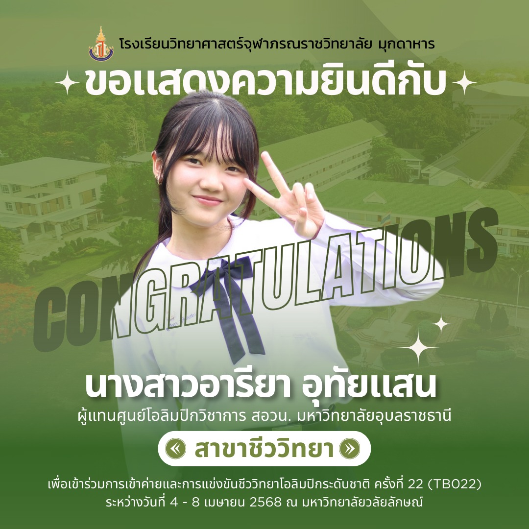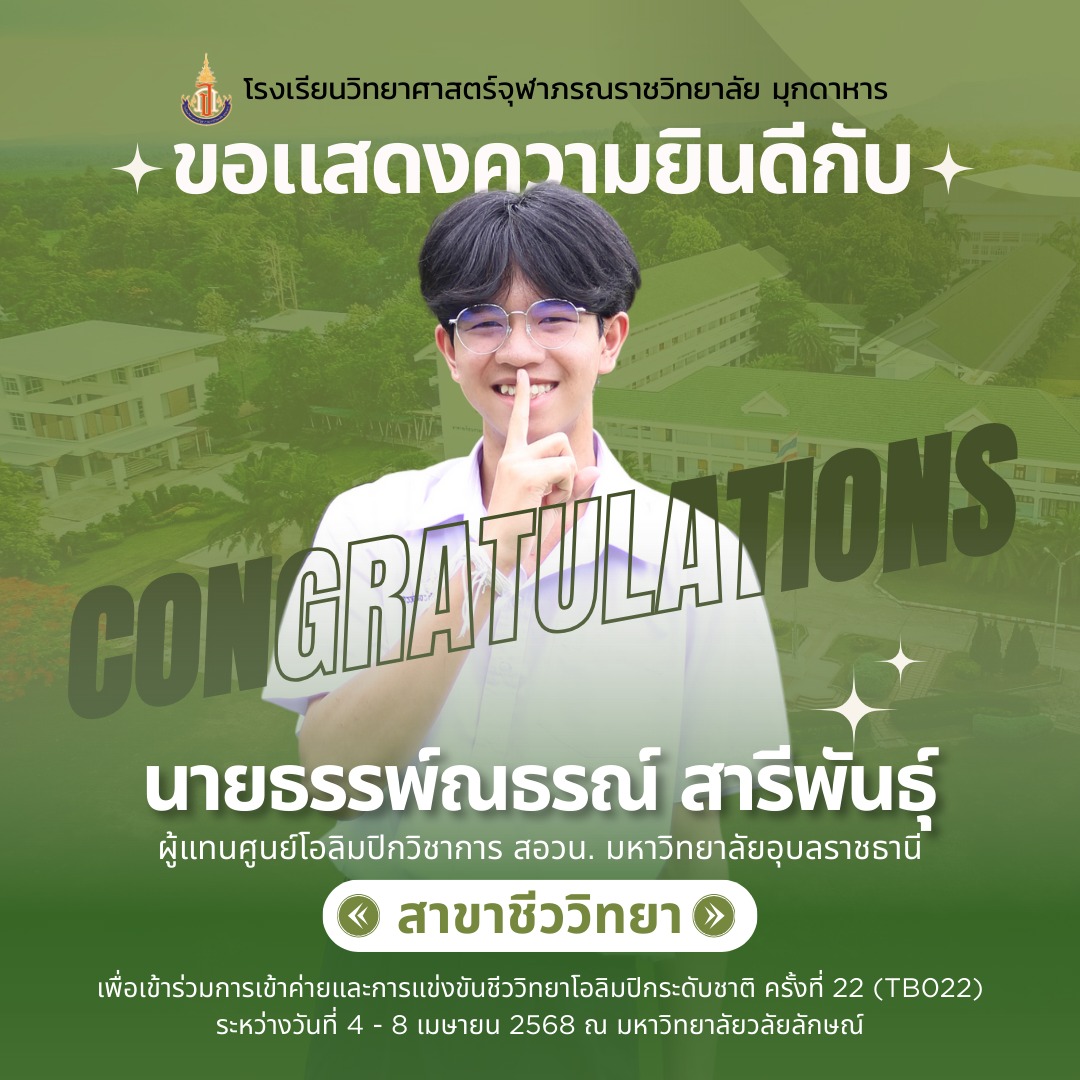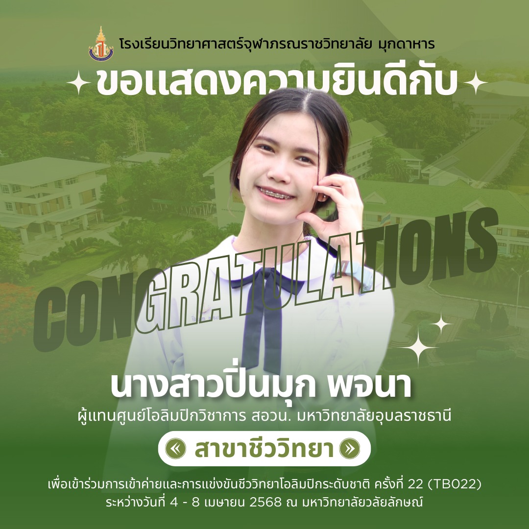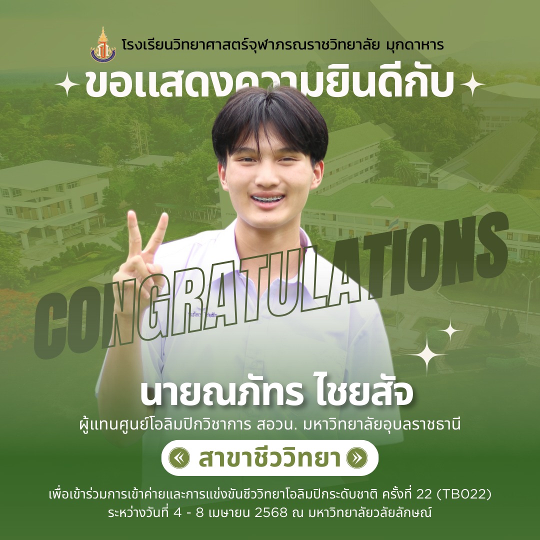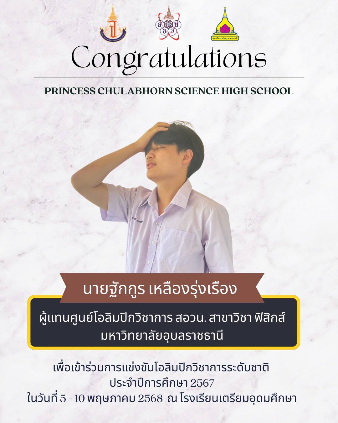 แสดงความยินดีกับที่ได้เป็นผู้แทนศูนย์โอลิมปิกวิชาการ สอวน. มหาวิทยาลัยอุบลราชธานี เพื่อเข้าร่วมการแข่งขันโอลิมปิกเคมีระดับชาติ ประจำปีการศึกษา 2567