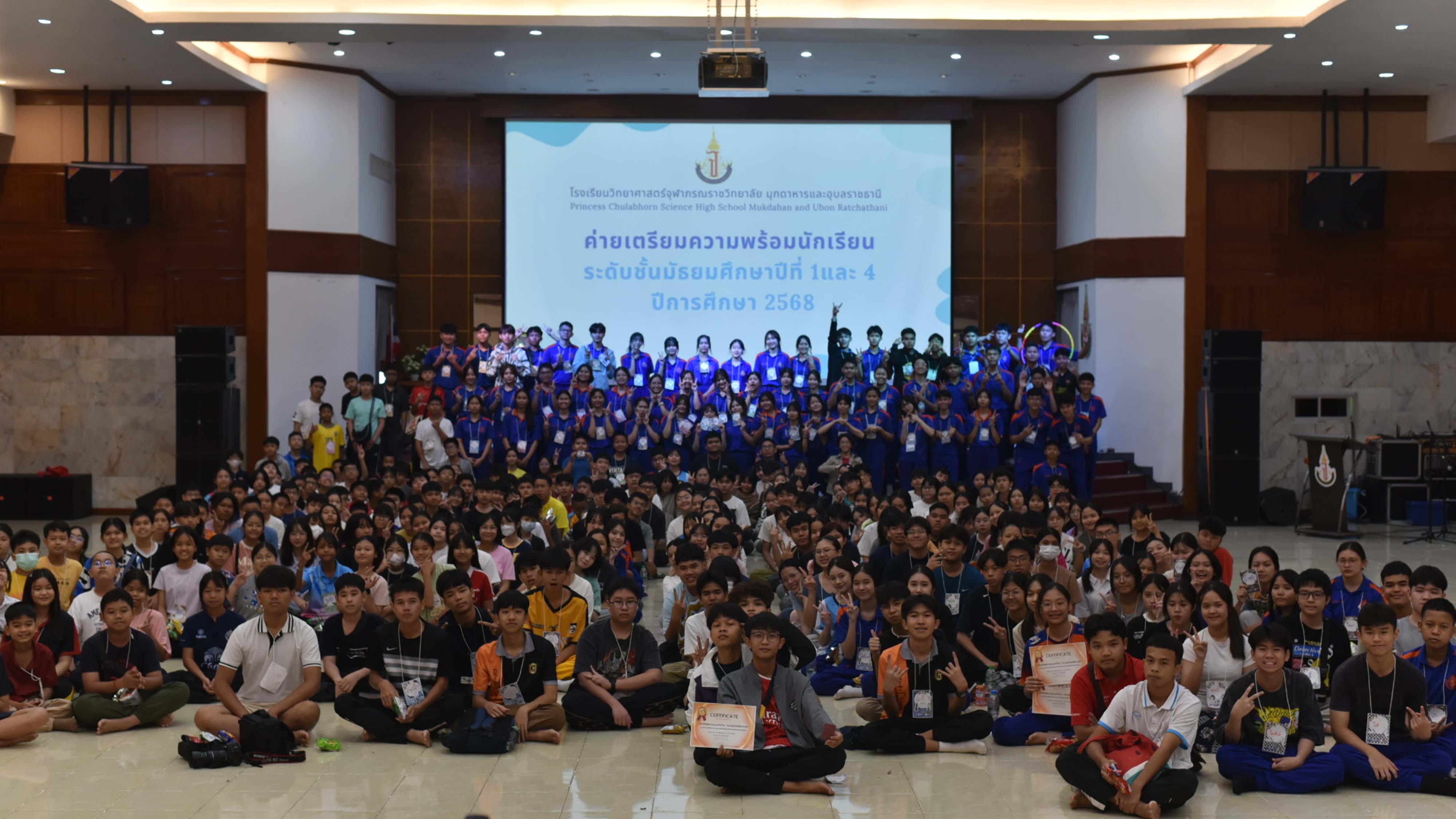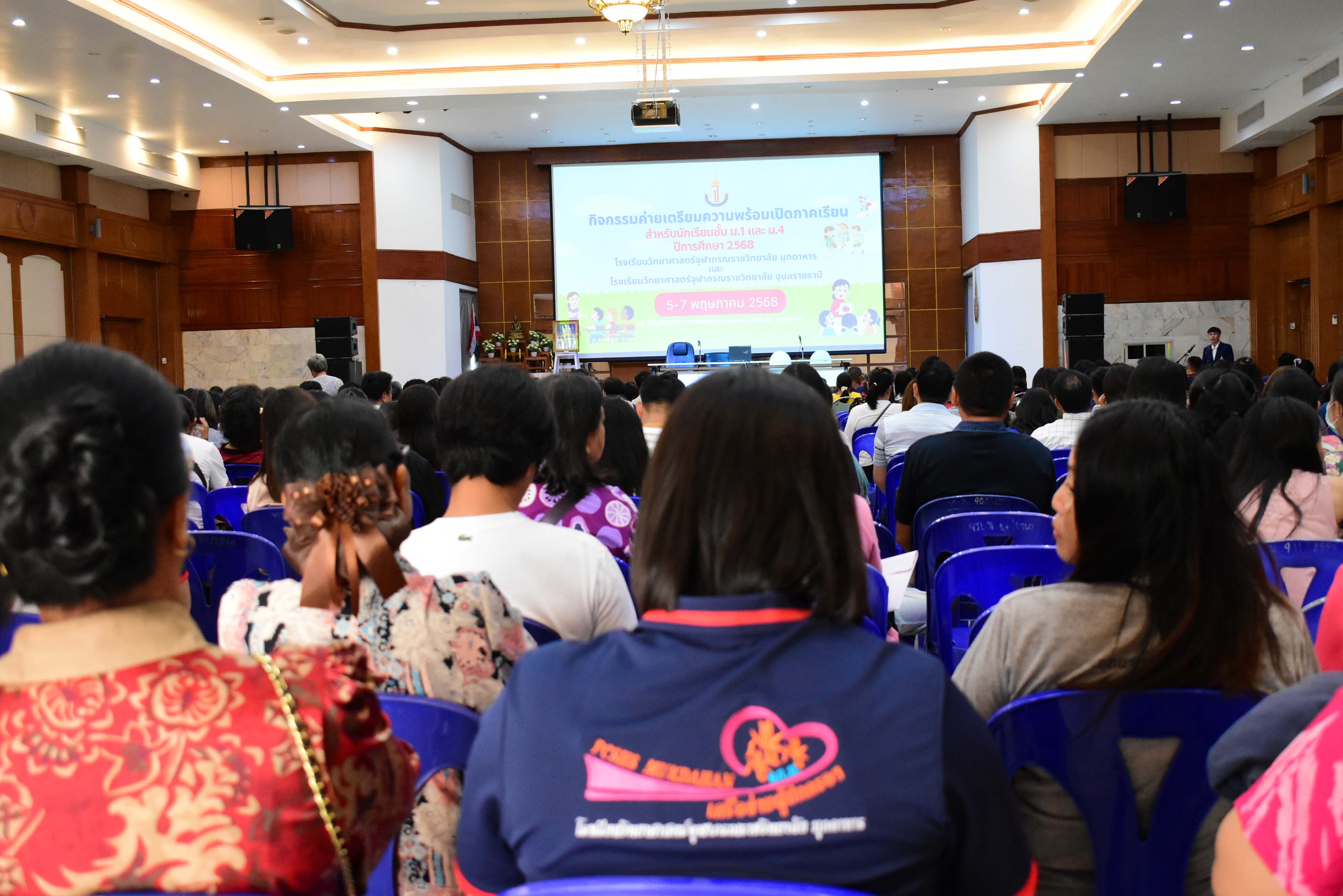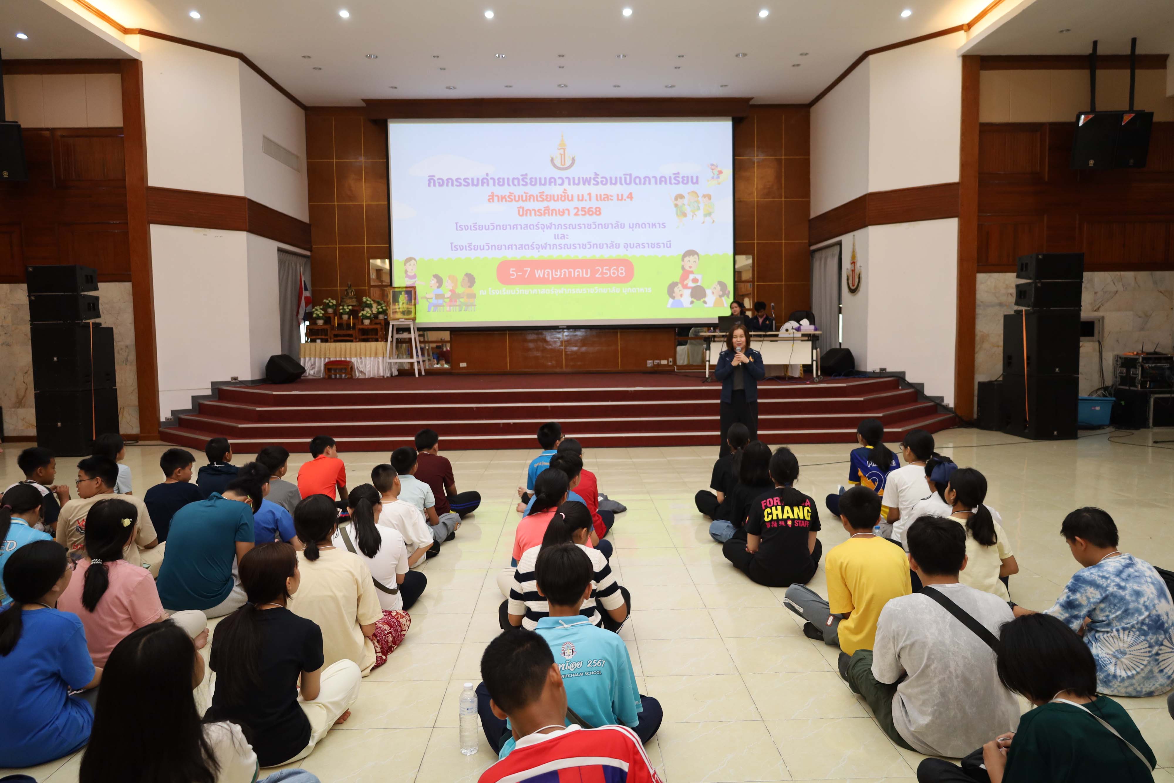โรงเรียนวิทยาศาสตร์จุฬาภรณราชวิทยาลัย มุกดาหาร จัดกิจกรรมค่ายเตรียมความพร้อมสำหรับนักเรียนชั้นมัธยมศึกษาปีที่ 1 และ 4 เข้าใหม่ ก่อนเริ่มเปิดภาคเรียน ที่ 1/2568 ในวันที่ 5-7 พฤษภาคม พ.ศ. 2568 ณ อาคารหอประชุมโรงเรียน