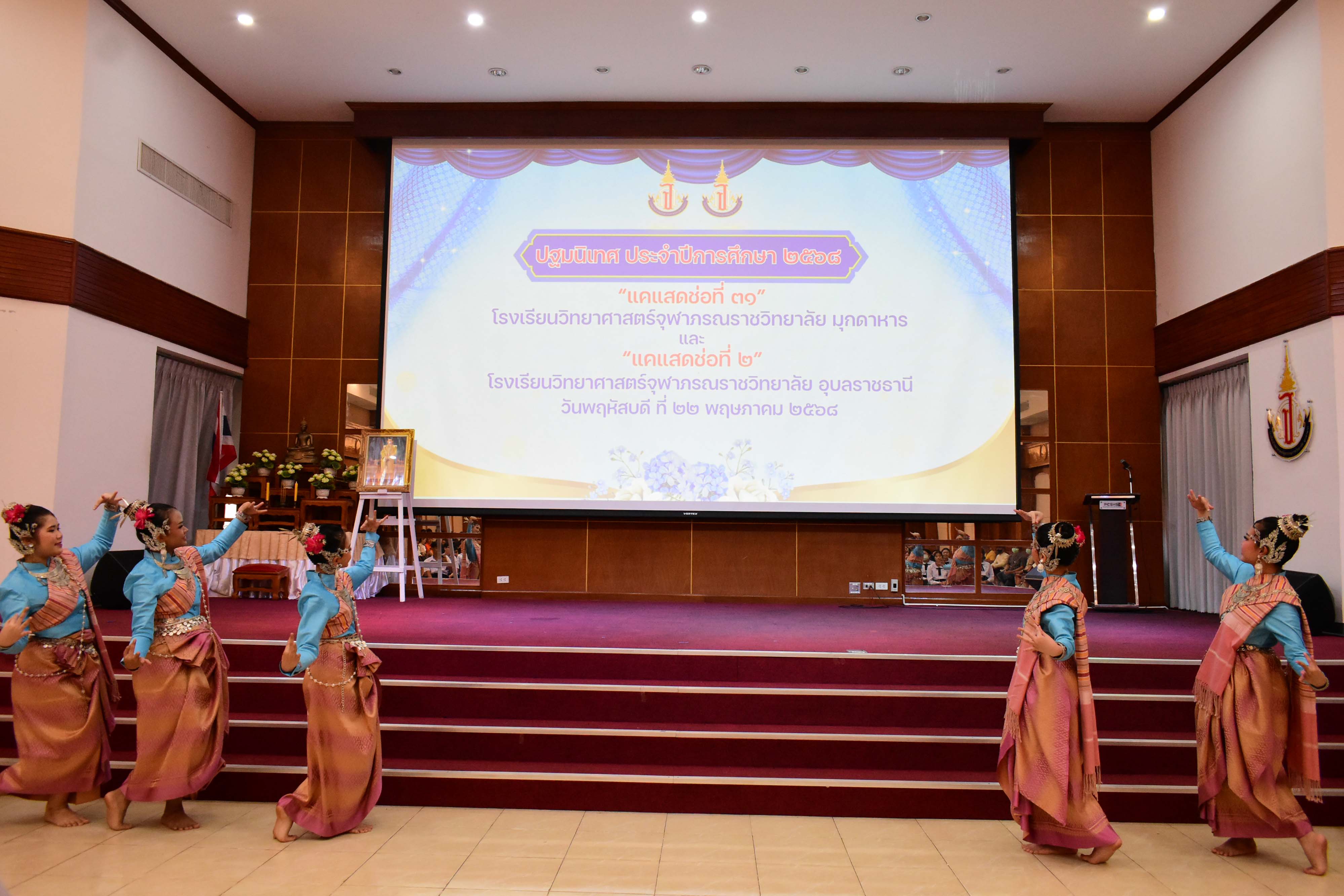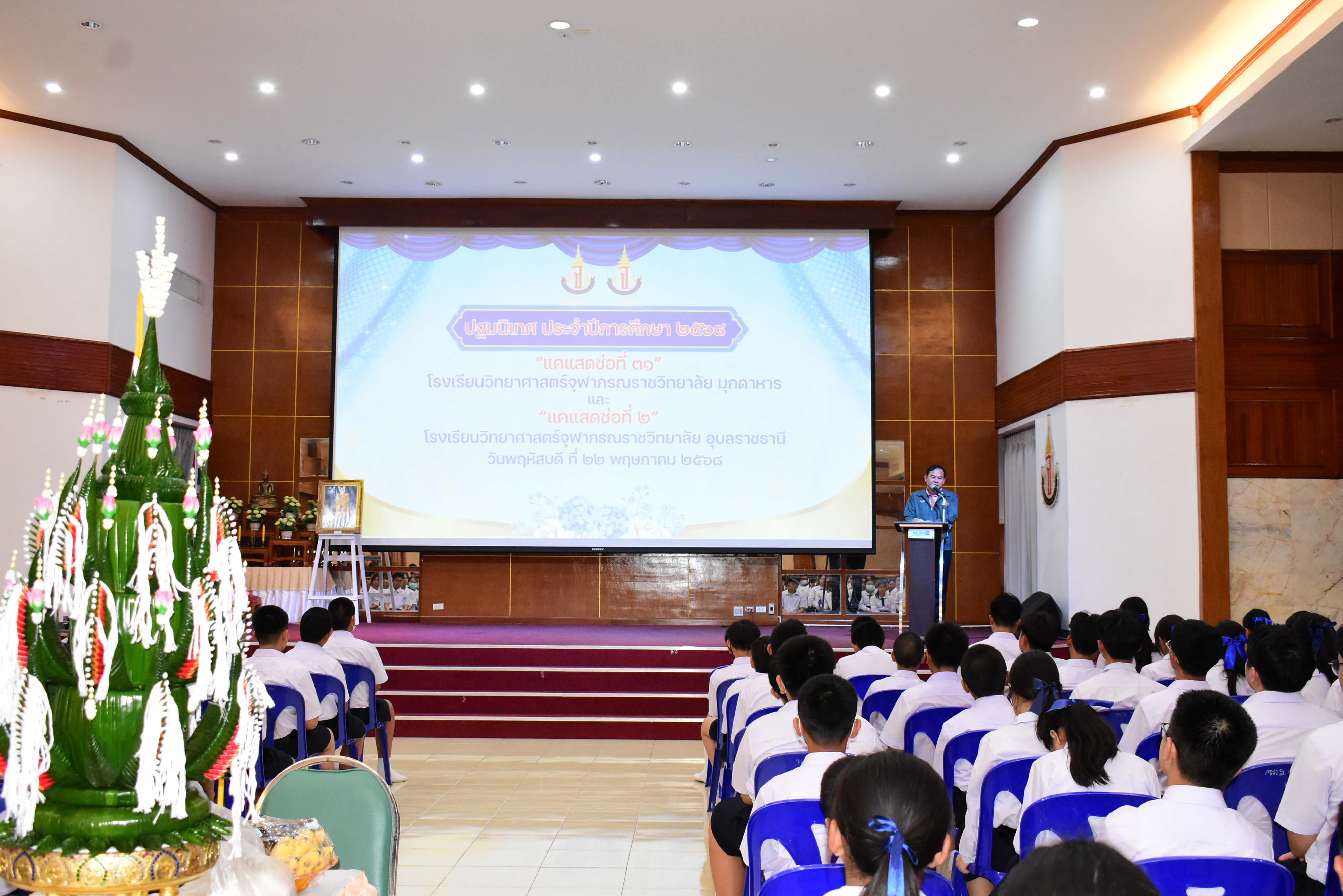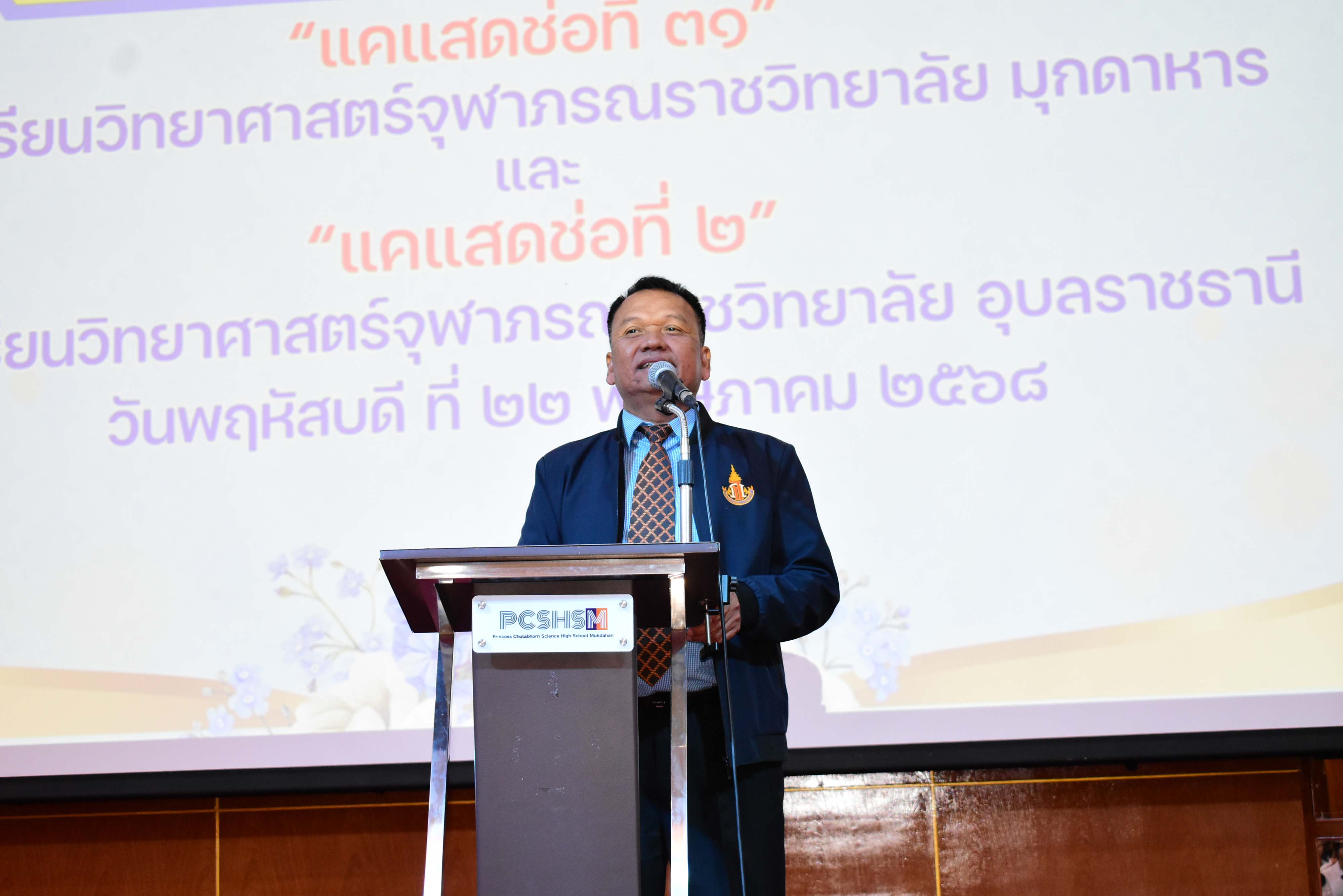 กิจกรรมปฐมนิเทศนักเรียนชั้นมัธยมศึกษาปีที่ 1 และมัธยมศึกษาปีที่ 4 ประจำปีการศึกษา 2568 โรงเรียนวิทยาศาสตร์จุฬาภรณราชวิทยาลัย มุกดาหาร และผู้อำนวยการโรงเรียนวิทยาศาสตร์จุฬาภรณราชวิทยาลัย อุบลราชธานี โดยมีนายศักดิ์ รุ่งแสง ผู้อำนวยการโรงเรียนวิทยาศาสตร์จุฬาภรณราชวิทยาลัย มุกดาหาร และนายฐิรศาสตร์ กูลรัมย์ ผู้อำนวยการโรงเรียนวิทยาศาสตร์จุฬาภรณราชวิทยาลัย อุบลราชธานี กล่าวให้โอวาทและเน้นย้ำอุดมการณ์และเป้าหมายโรงเรียนวิทยาศาสตร์จุฬาภรณราชวิทยาลัย ในวันที่ 22 พฤษภาคม 2568 ณ หอประชุมโรงเรียนวิทยาศาสตร์จุฬาภรณราชวิทยาลัย มุกดาหาร และหลังการปฐมนิเทศได้มีการจัดกิจกรรมเสริมสร้างความสัมพันธ์สายรหัส โดยคณะกรรมการสภานักเรียน