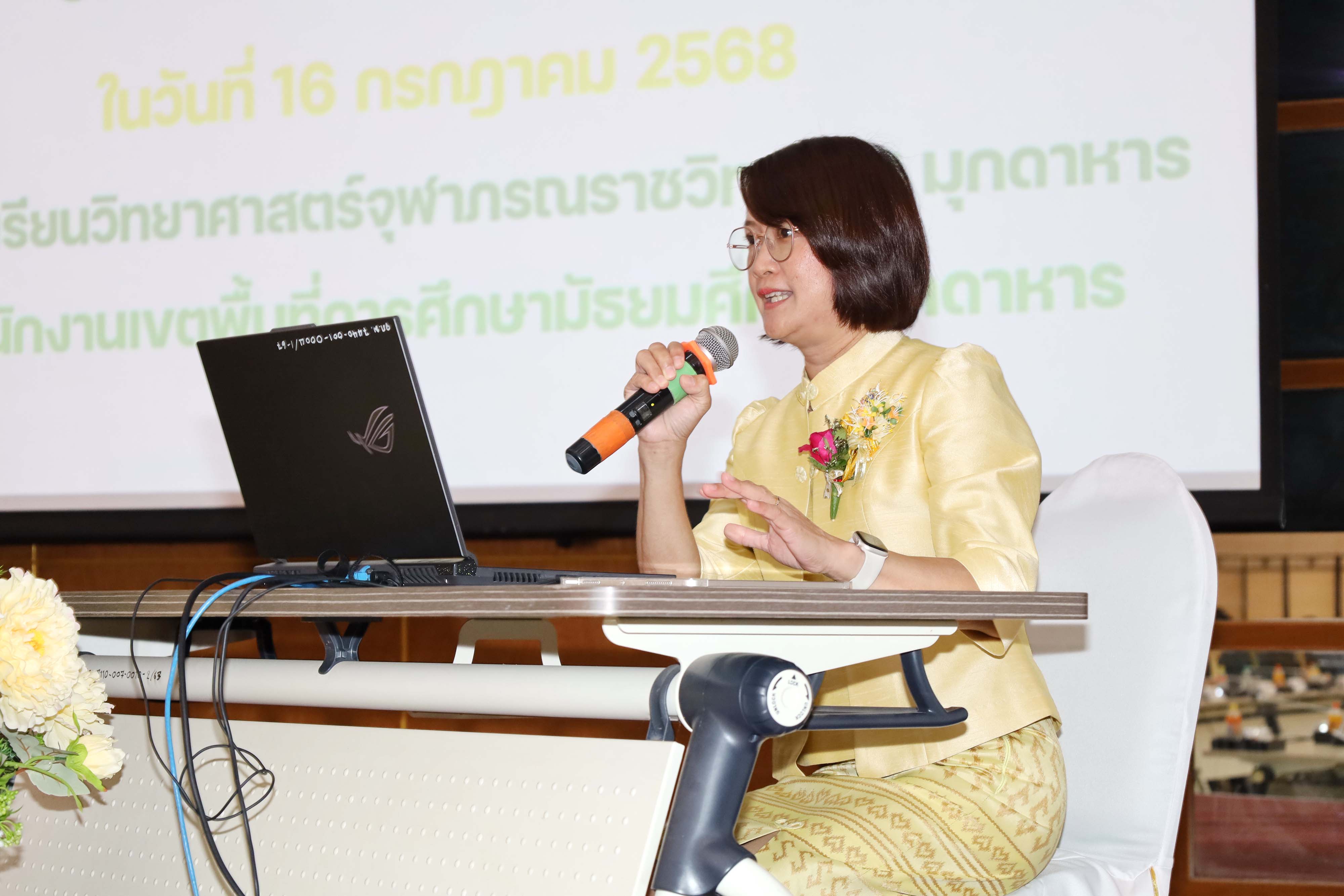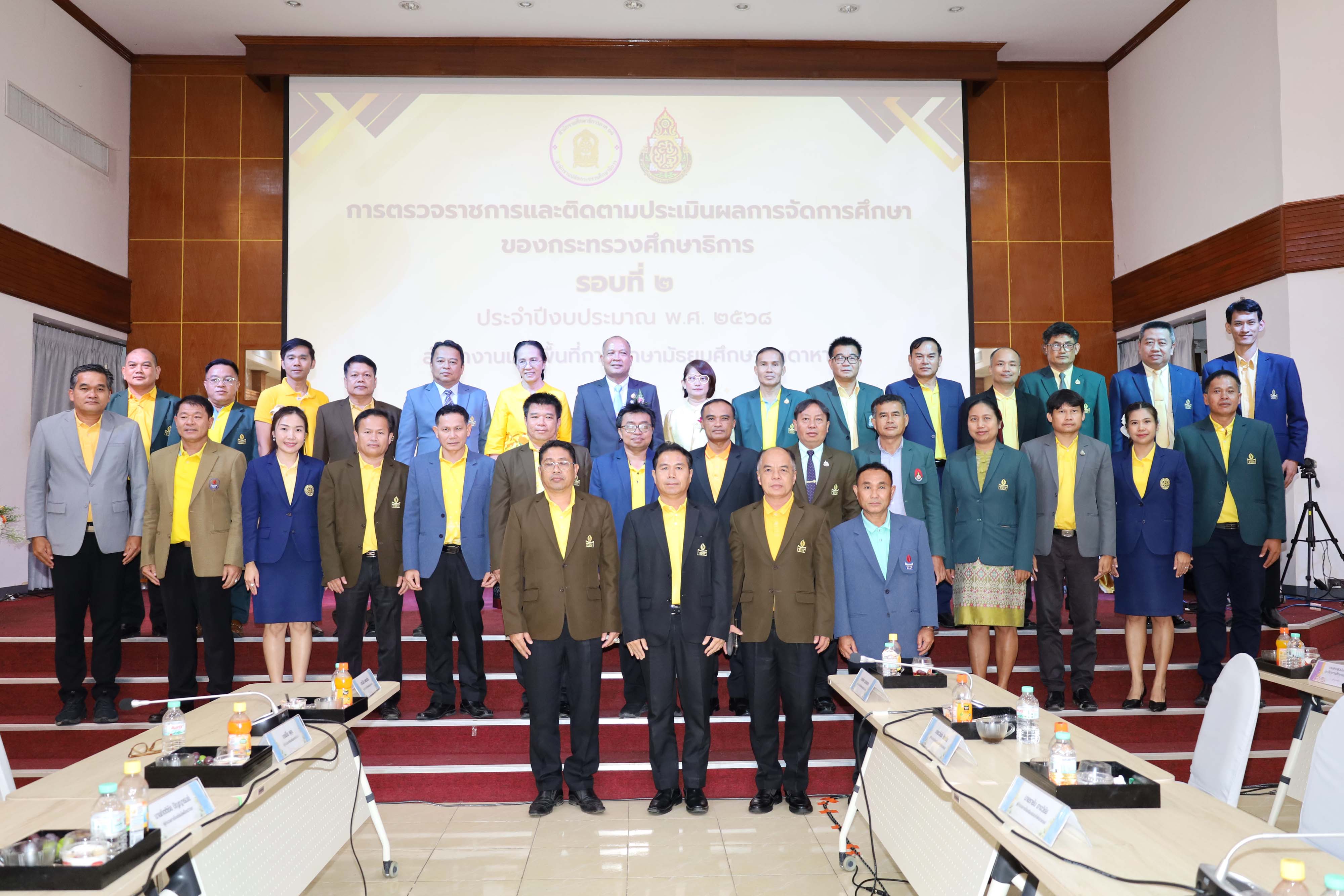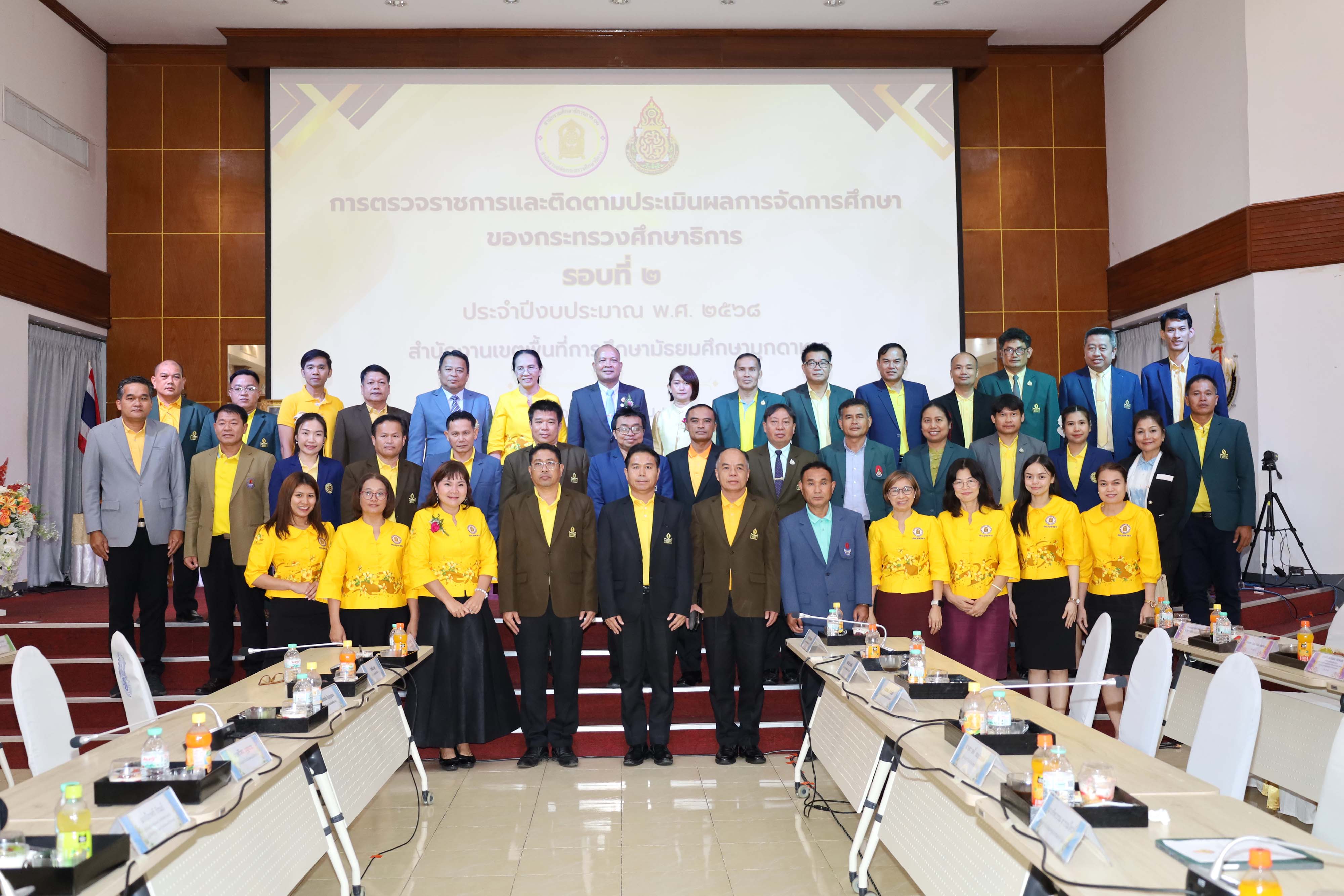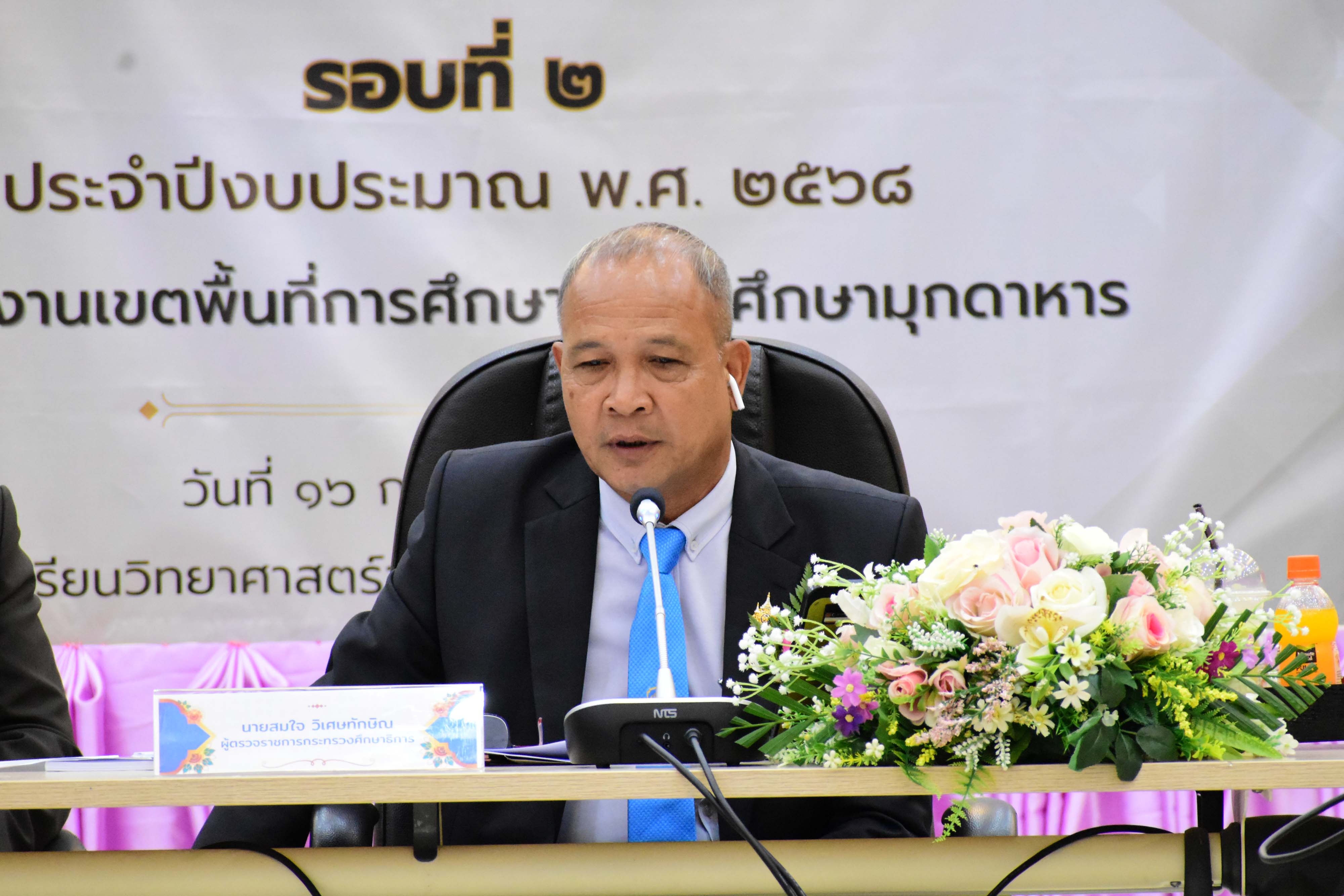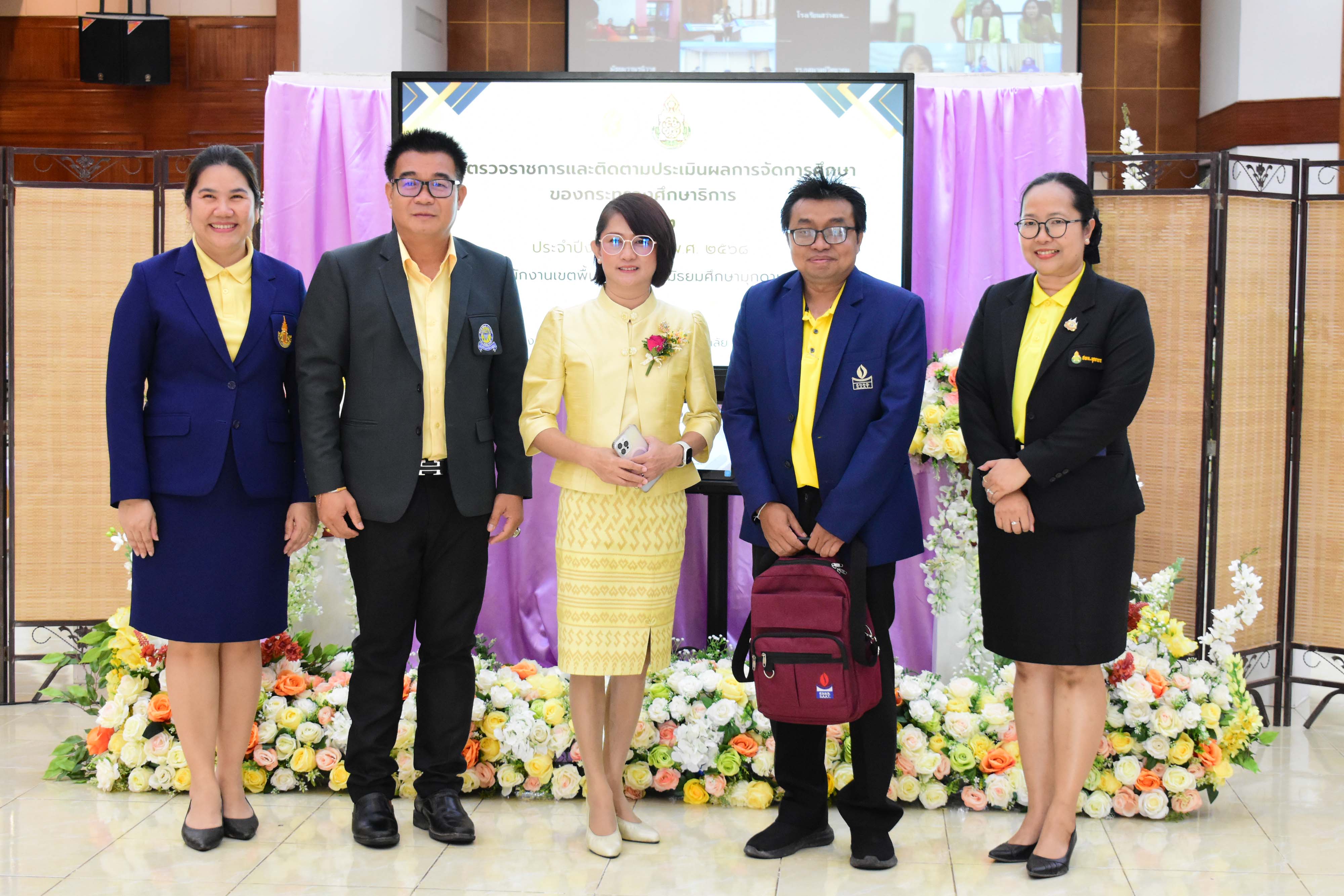 นายสมใจ วิเศษทักษิณ ผู้ตรวจราชการกระทรวงศึกษาธิการ การลงพื้นที่ตรวจราชการและติดตามประเมินผลการจัดการศึกษาของกระทรวงศึกษาธิการในพื้นที่เขตตรวจราชการที่ 11 รอบที่ 2 ประจำปีงบประมาณ พ.ศ.2568 โดยมี นางวริศรา สัพโส รอง ผอ.สพม.มุกดาหาร ดร.นุชรัตน์ ประสิทธิศิลป์ชัย ศึกษาธิการจังหวัดมุกดาหาร นายโสภณ แก่นงาม ประธานคณะกรรมการดำเนินการสหกรณ์ออมทรัพย์ครูมุกดาหาร จำกัด นายศักดิ์ รุ่งแสง ผู้อำนวยการโรงเรียนวิทยาศาสตร์จุฬาภรณราชวิทยาลัย มุกดาหาร ประธานสหวิทยาเขต ผู้บริหารสถานศึกษาในสังกัด สพม.มุกดาหาร บุคลากรทางการศึกษาจาก สพม.มุกดาหาร ศธจ.มุกดาหาร และหน่วยงานทางการศึกษาในจังหวัดมุกดาหาร ร่วมให้การต้อนรับและนำเสนอผลการปฏิบัติงานตามนโยบายของกระทรวงศึกษาธิการ ประจำปีงบประมาณ พ.ศ.2568 รอบที่ 2 ร่วมกับหน่วยงานทางการศึกษาในพื้นที่เขตตรวจราชการที่ 11 ที่เข้าร่วมประชุมผ่านระบบ Video Conference ณ ห้องประชุมโรงเรียนวิทยาศาสตร์จุฬาภรณราชวิทยาลัย มุกดาหาร