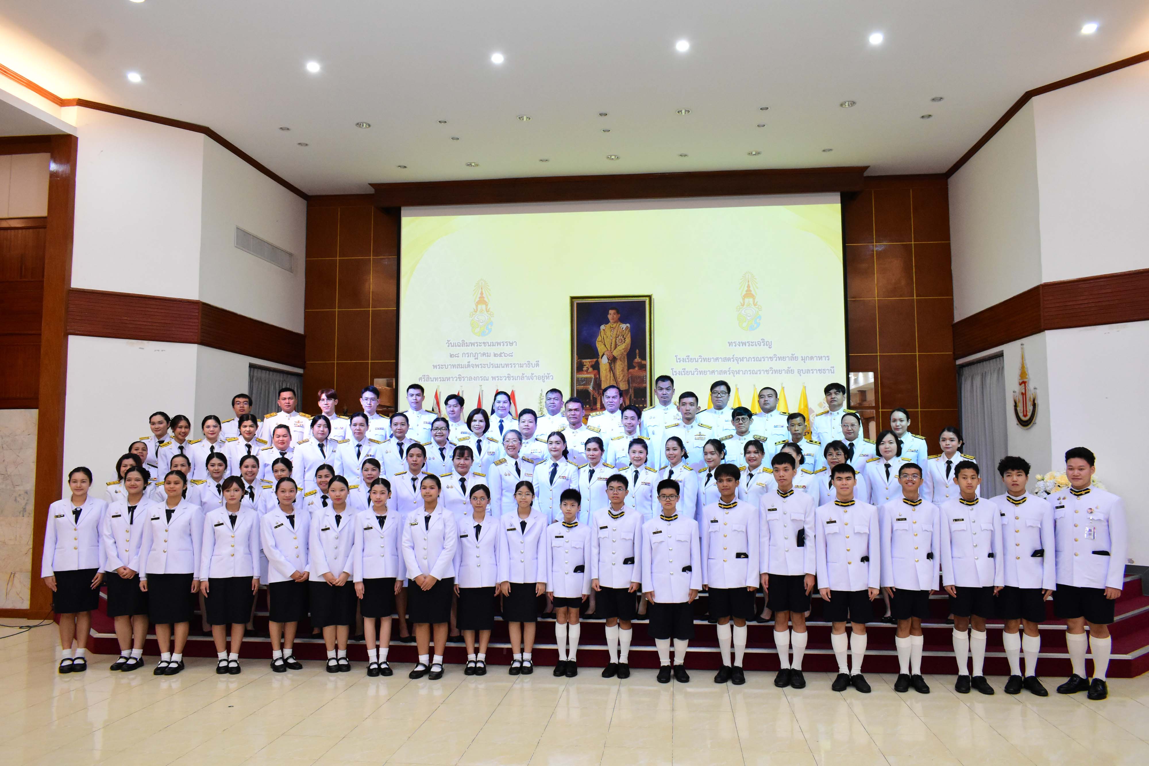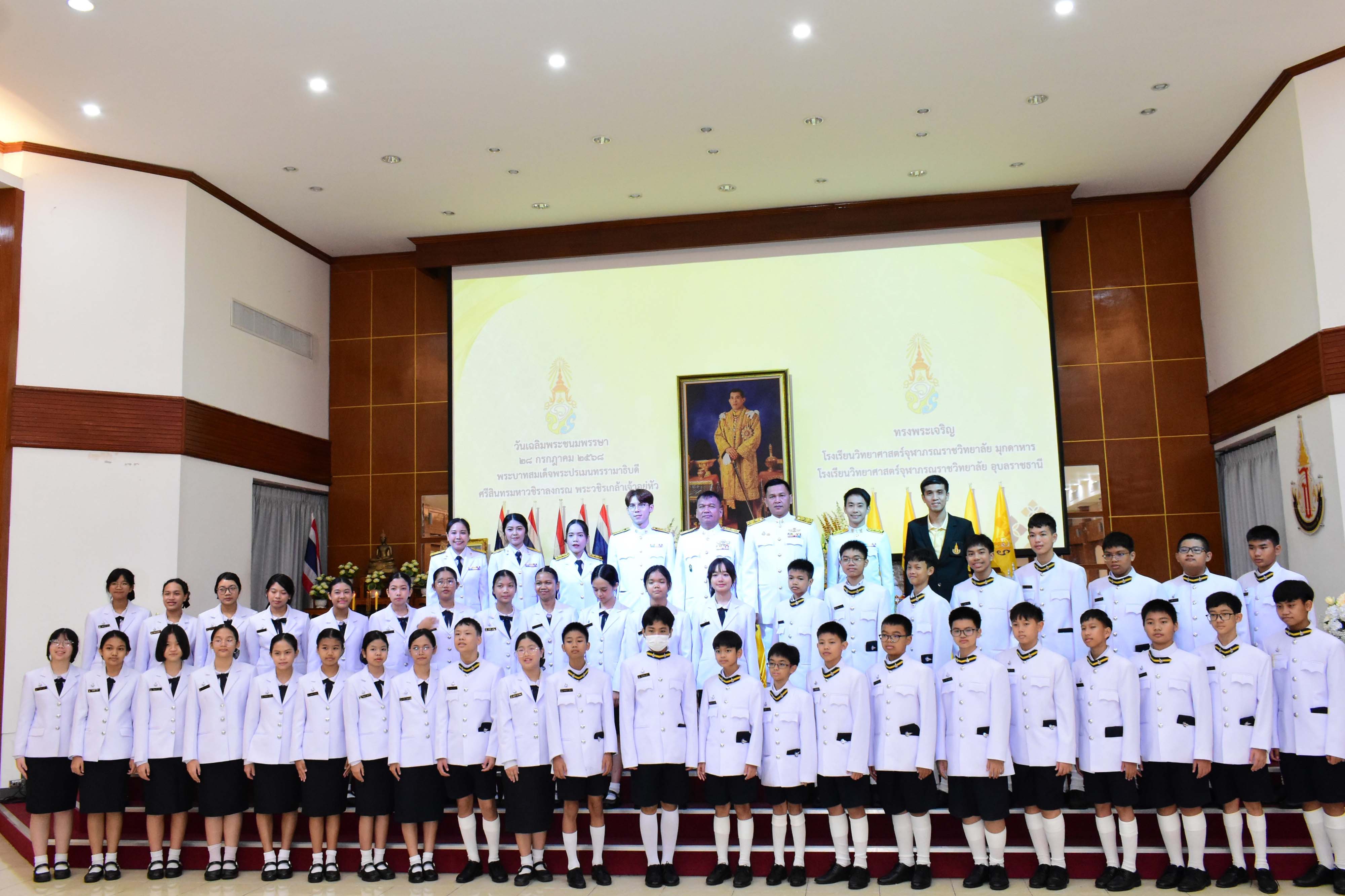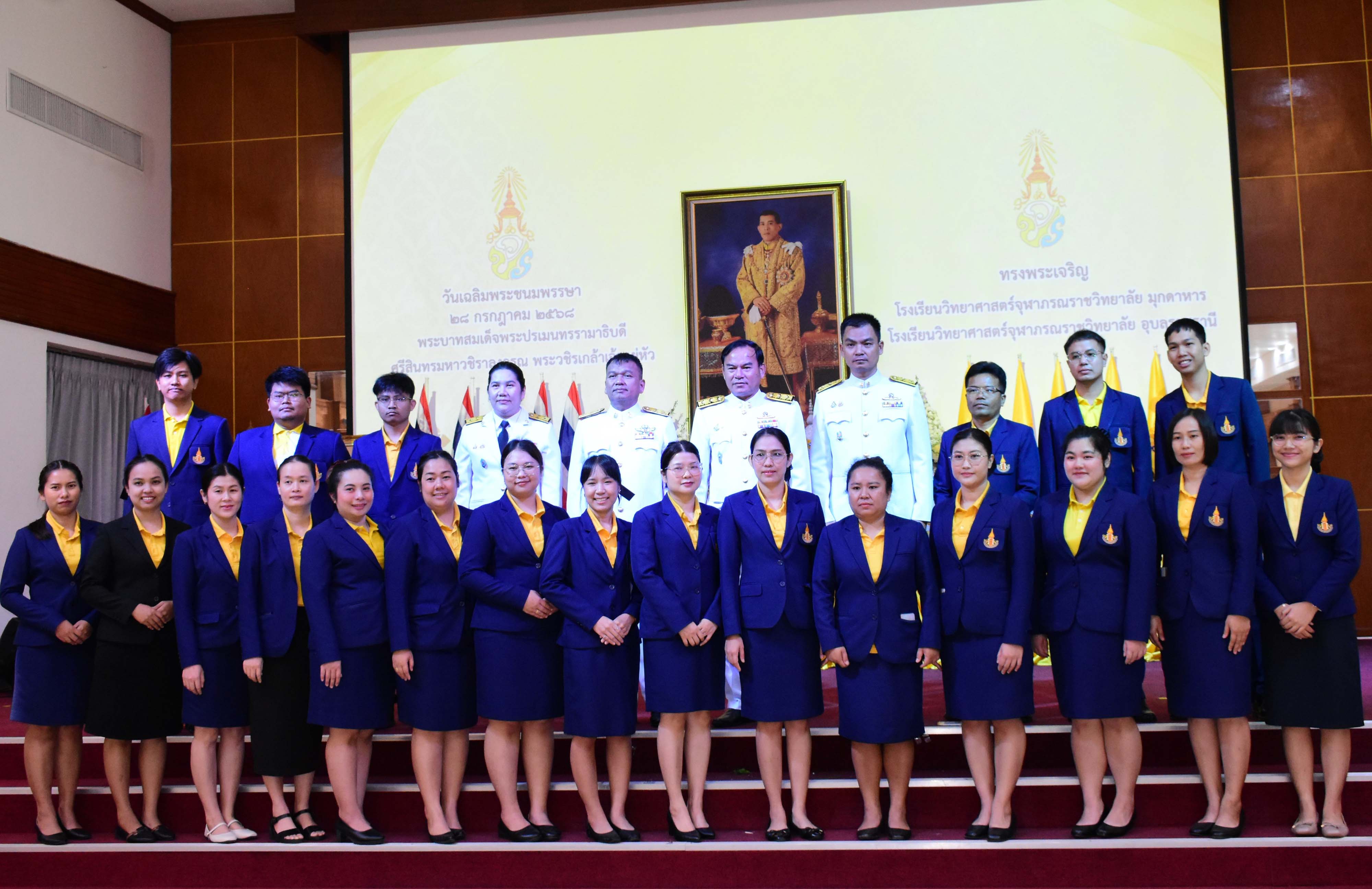 กิจกรรมเฉลิมพระเกียรติเนื่องในวันเฉลิมพระชนมพรรษาพระบาทสมเด็จพระปรเมนทรรามาธิบดีศรีสินทรมหาวชิราลงกรณ พระวชิรเกล้าเจ้าอยู่หัว ประจำปีพุทธศักราช 2568 เพื่อเป็นการถวายความจงรักภักดีและสำนักในพระมหากรุณาธิคุณที่ทรงมีต่อประชาชนชาวไทย ซึ่งได้จัดกิจกรรมขึ้นในวันศุกร์ที่ 25 กรกฎาคม พ.ศ. 2568 เวลา 08.00 น. ณ อาคารหอประชุมโรงเรียนวิทยาศาสตร์จุฬาภรณราชวิทยาลัย มุกดาหาร