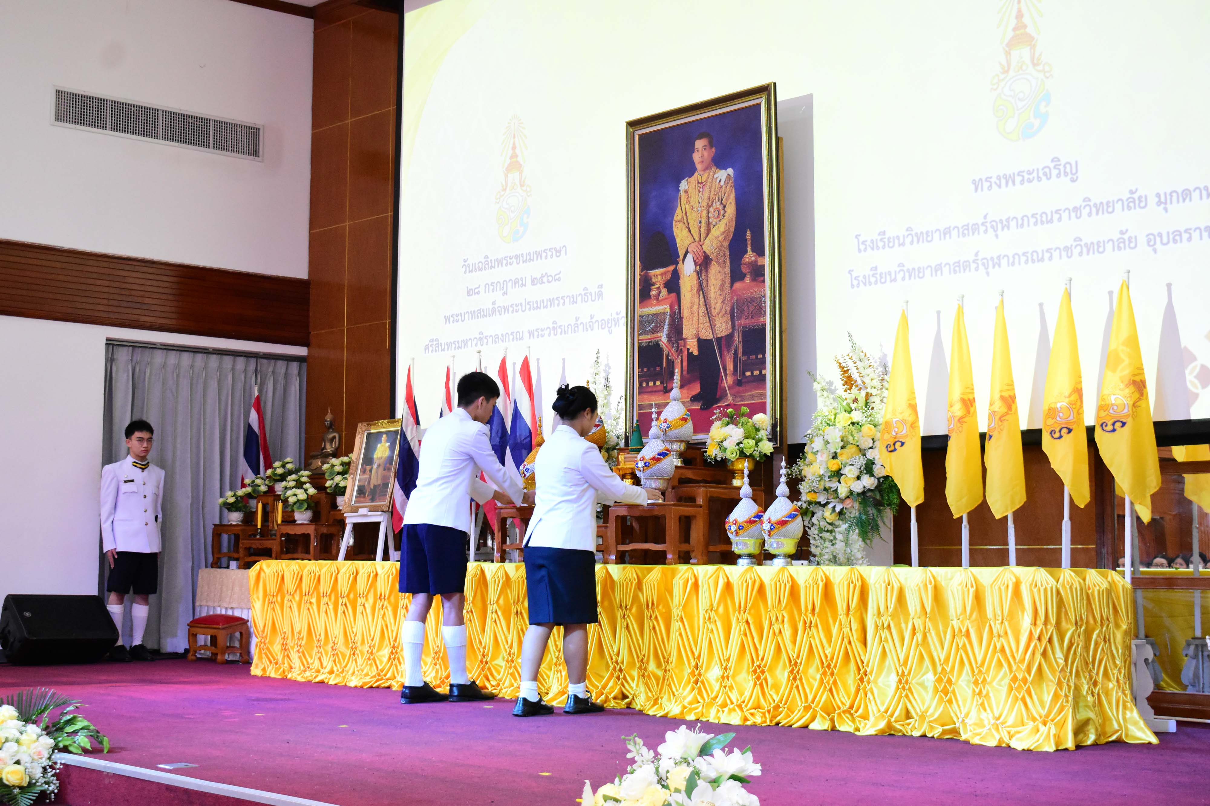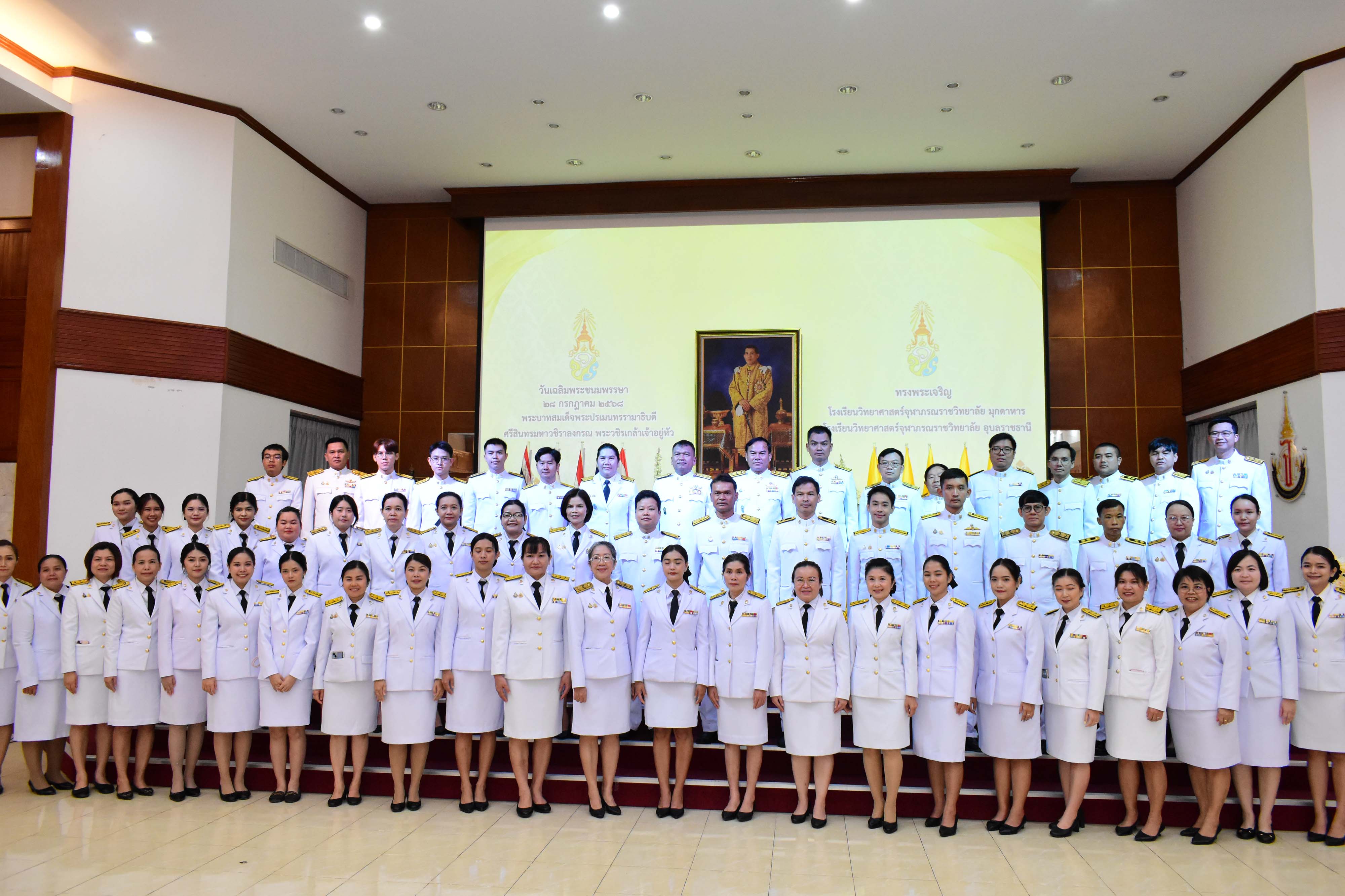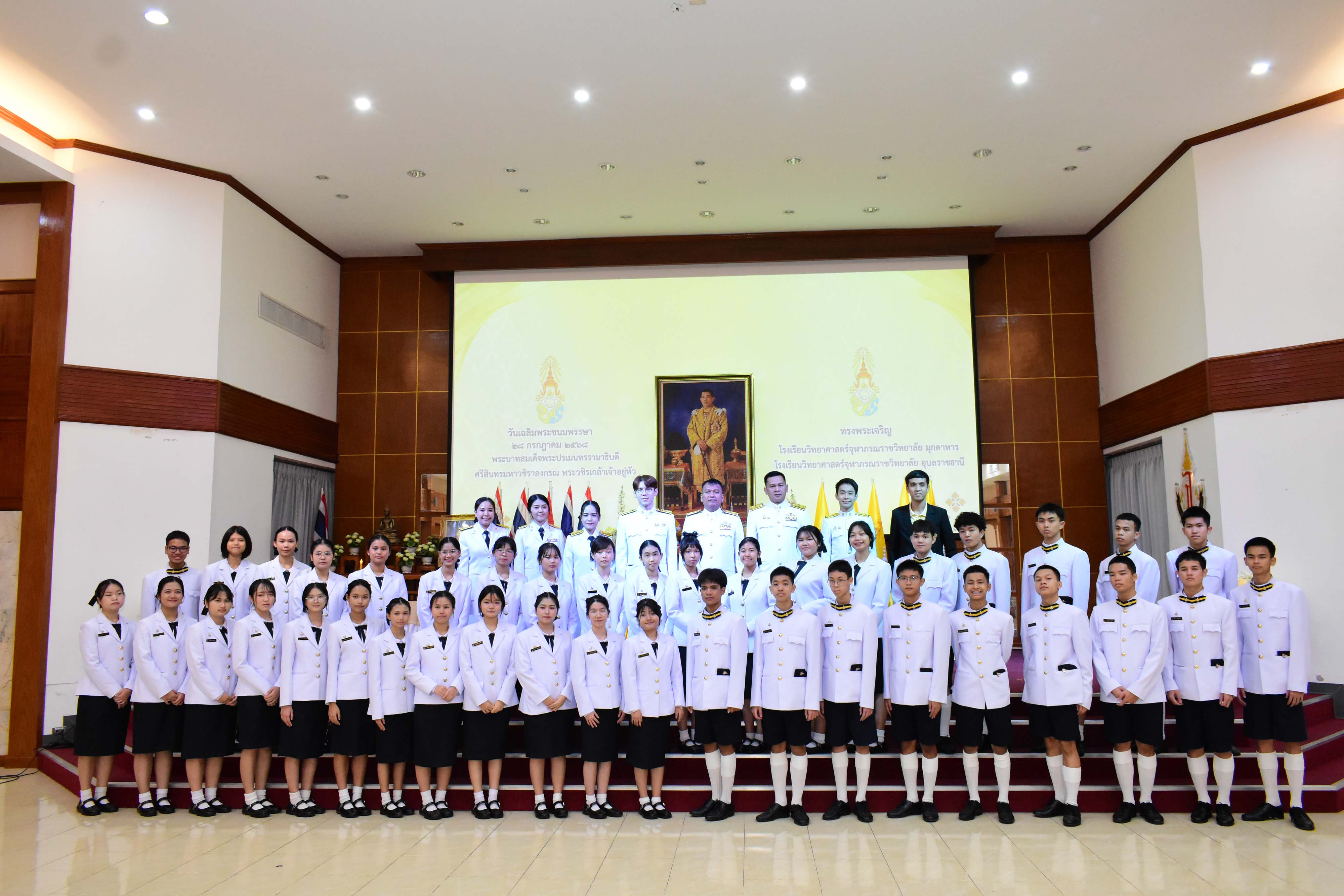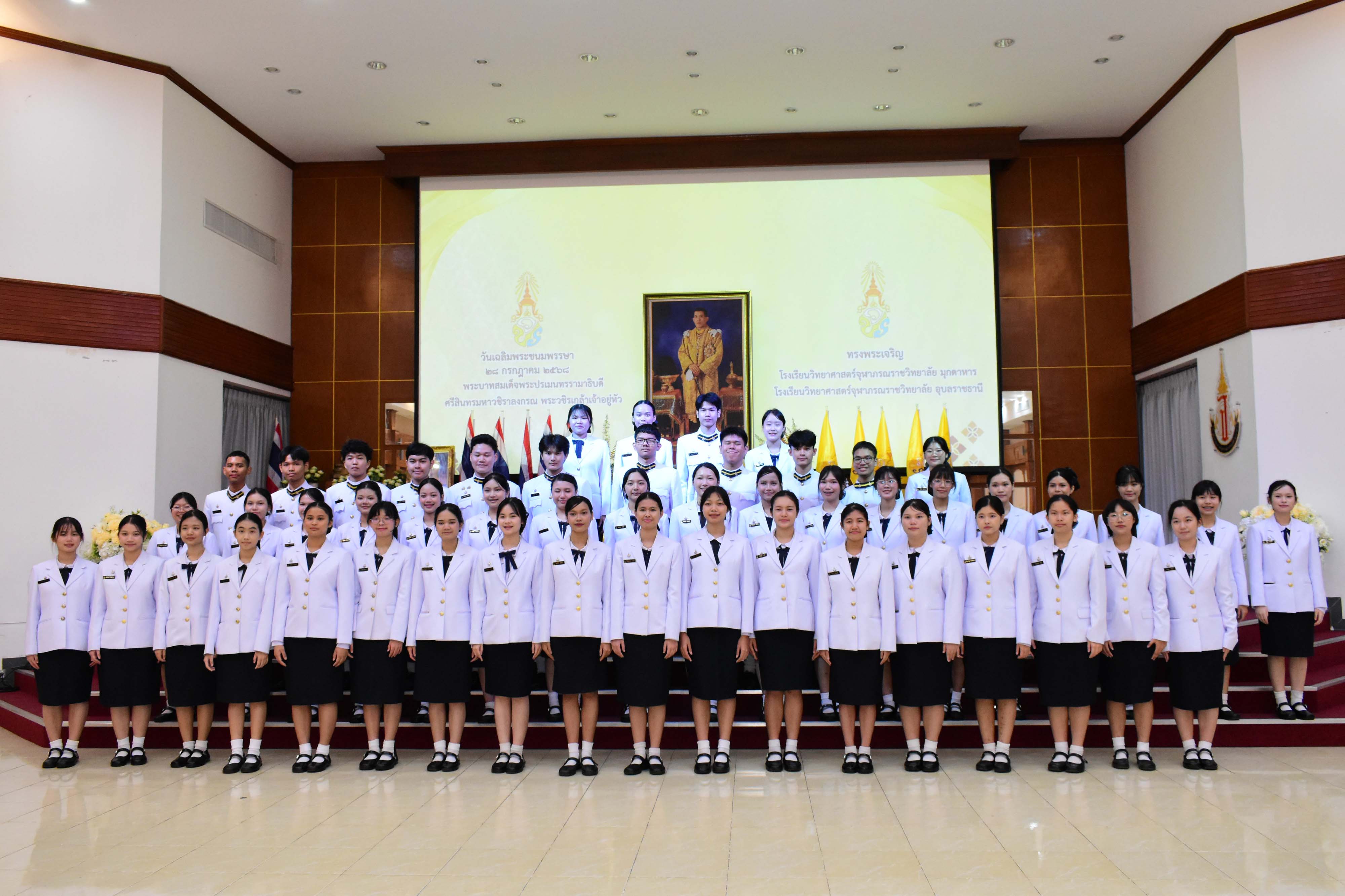 กิจกรรมเฉลิมพระเกียรติเนื่องในวันเฉลิมพระชนมพรรษาพระบาทสมเด็จพระปรเมนทรรามาธิบดีศรีสินทรมหาวชิราลงกรณ พระวชิรเกล้าเจ้าอยู่หัว ประจำปีพุทธศักราช 2568 เพื่อเป็นการถวายความจงรักภักดีและสำนักในพระมหากรุณาธิคุณที่ทรงมีต่อประชาชนชาวไทย ซึ่งได้จัดกิจกรรมขึ้นในวันศุกร์ที่ 25 กรกฎาคม พ.ศ. 2568 เวลา 08.00 น. ณ อาคารหอประชุมโรงเรียนวิทยาศาสตร์จุฬาภรณราชวิทยาลัย มุกดาหาร
