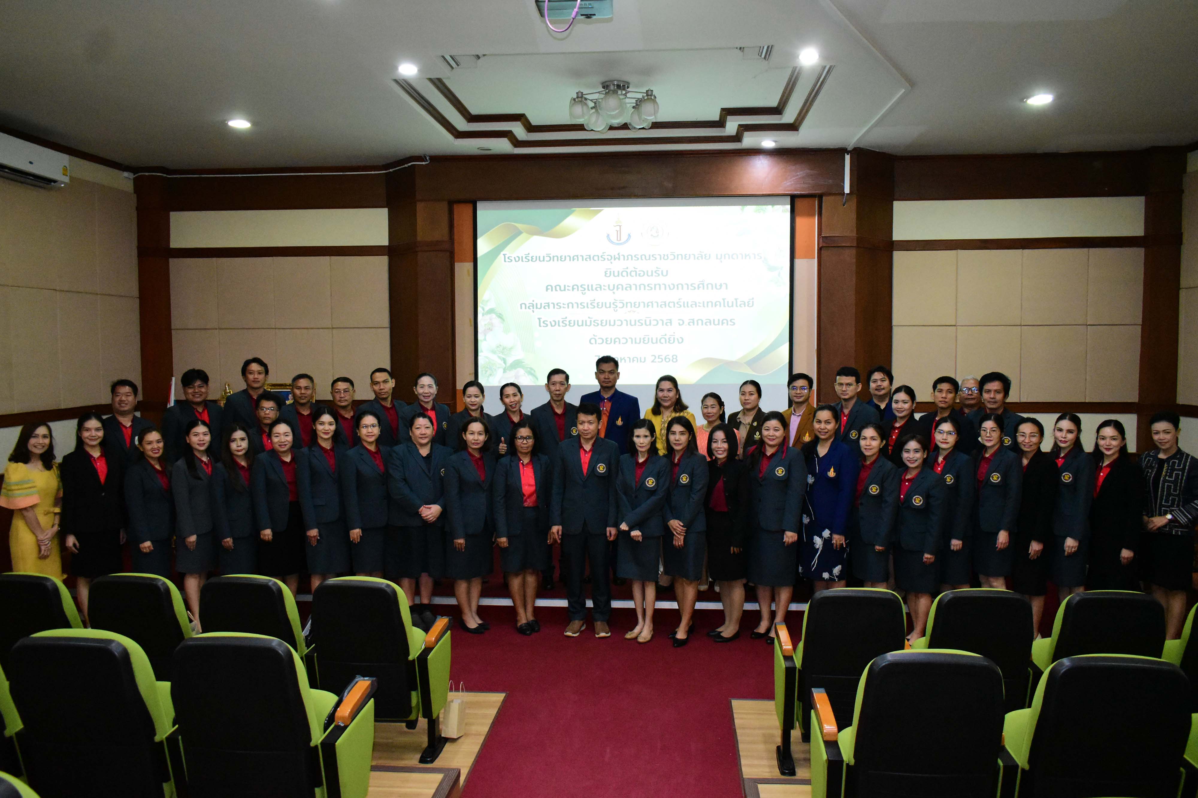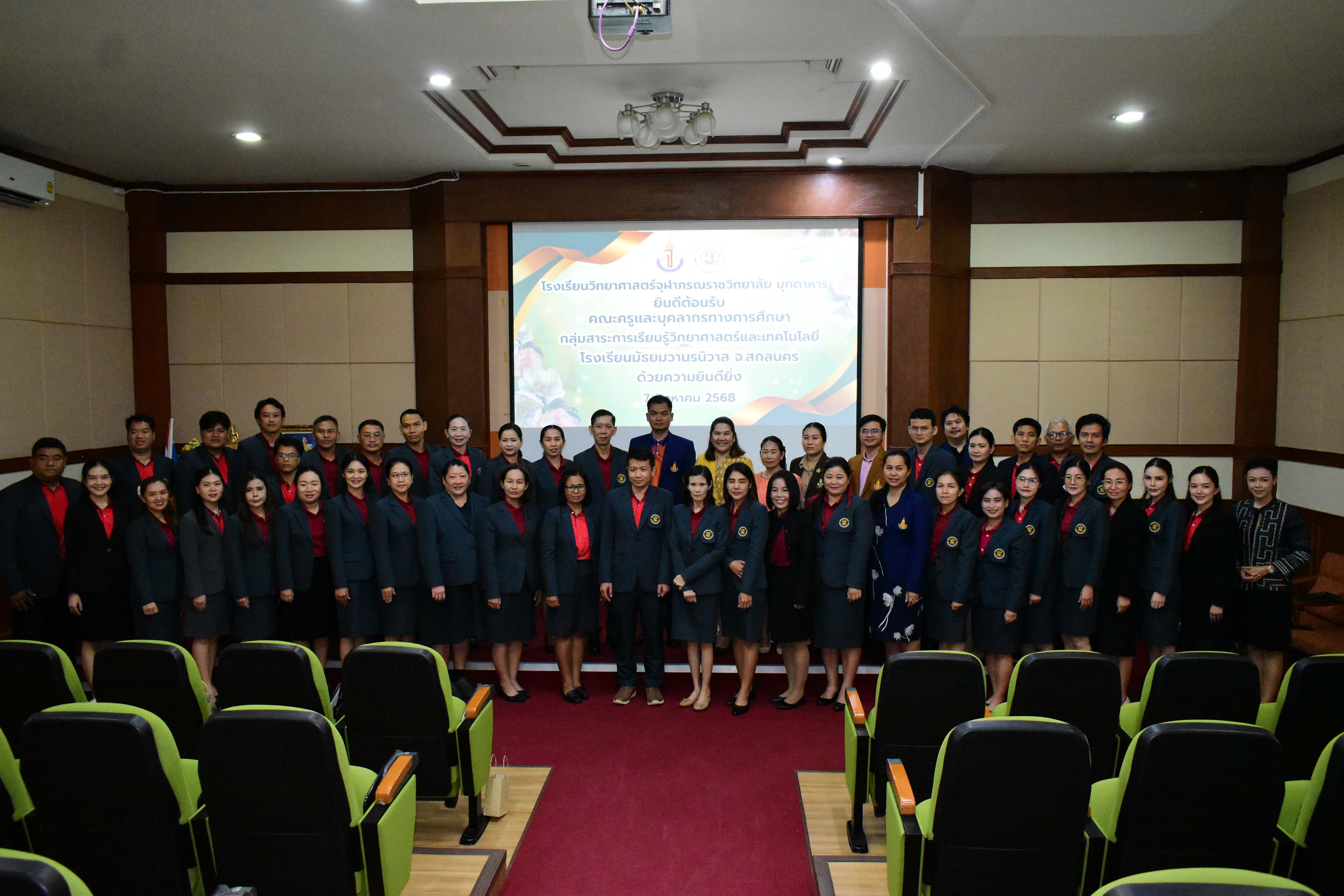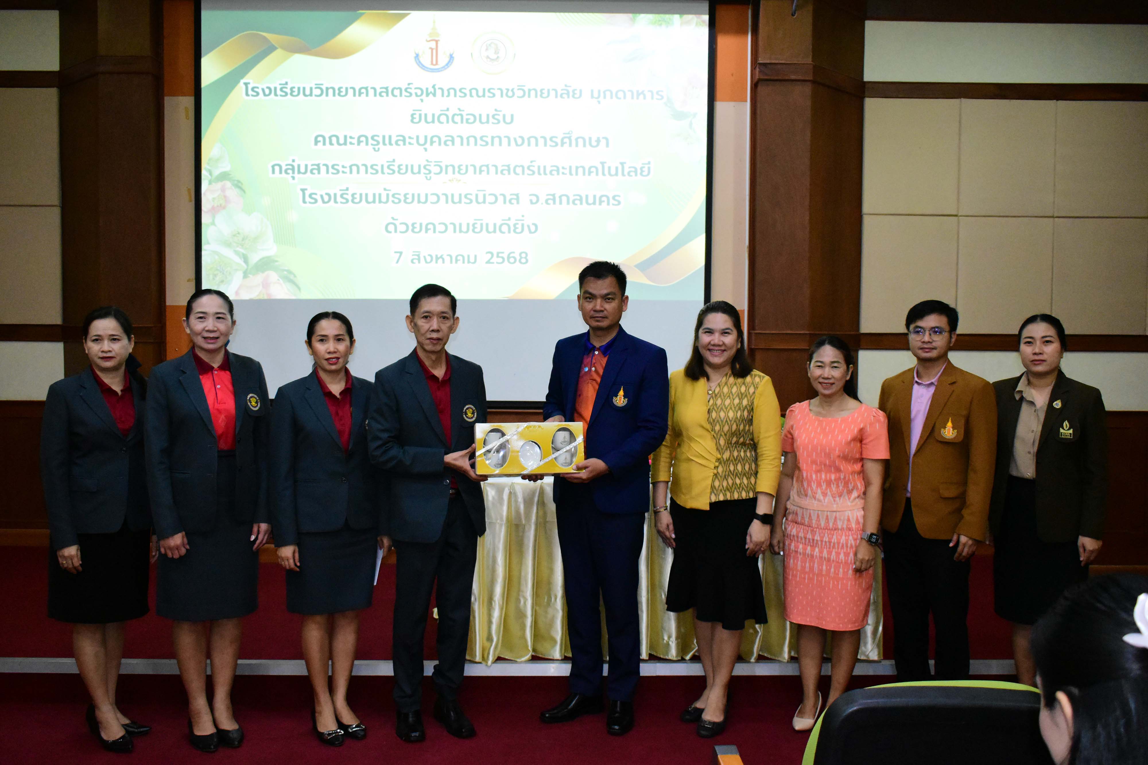 ในวันพฤหัสบดีที่ 7 สิงหาคม พ.ศ. 2568 เวลา 09.00 น. คณะผู้บริหาร ครูและบุคลากรโรงเรียนวิทยาศาสตร์จุฬาภรณราชวิทยาลัย มุกดาหารและโรงเรียนวิทยาศาสตร์จุฬาภรณราชวิทยาลัย อุบลราชธานี ร่วมต้อนรับคณะผู้บริหาร ครู และบุคลากร คณะศึกษาดูงานจากโรงเรียนมัธยมวานรนิวาส จังหวัดสกลนคร