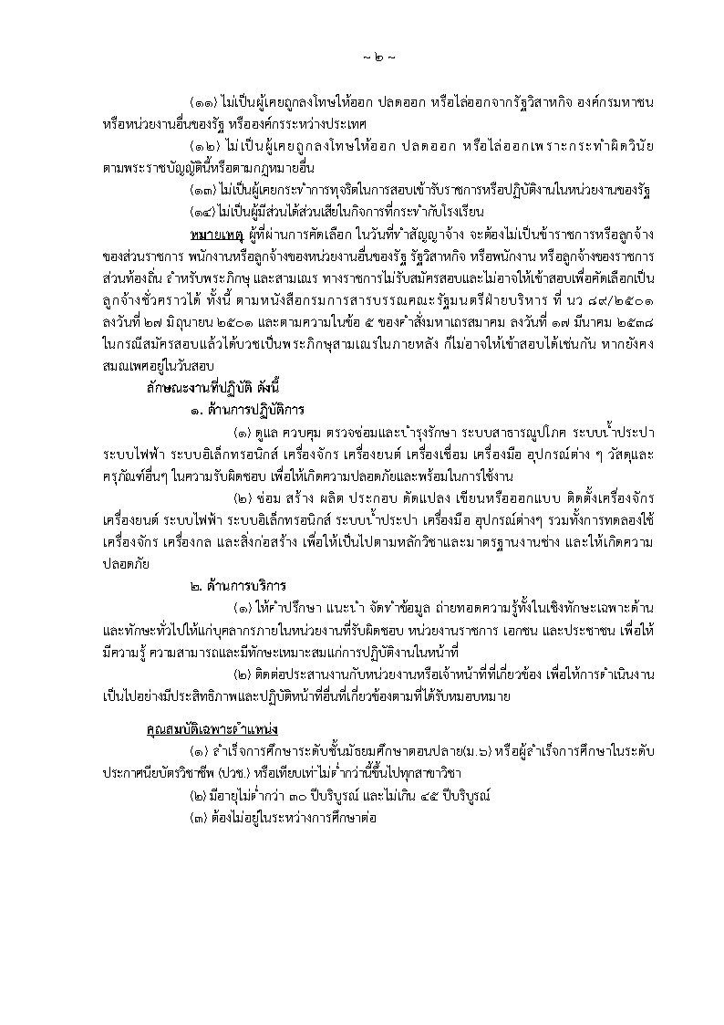 ประกาศรับสมัครบุคคลเพื่อคัดเลือกเป็นลูกจ้างชั่วคราวแบบจ้างเหมาบริการ ตำแหน่งช่างเทคนิค