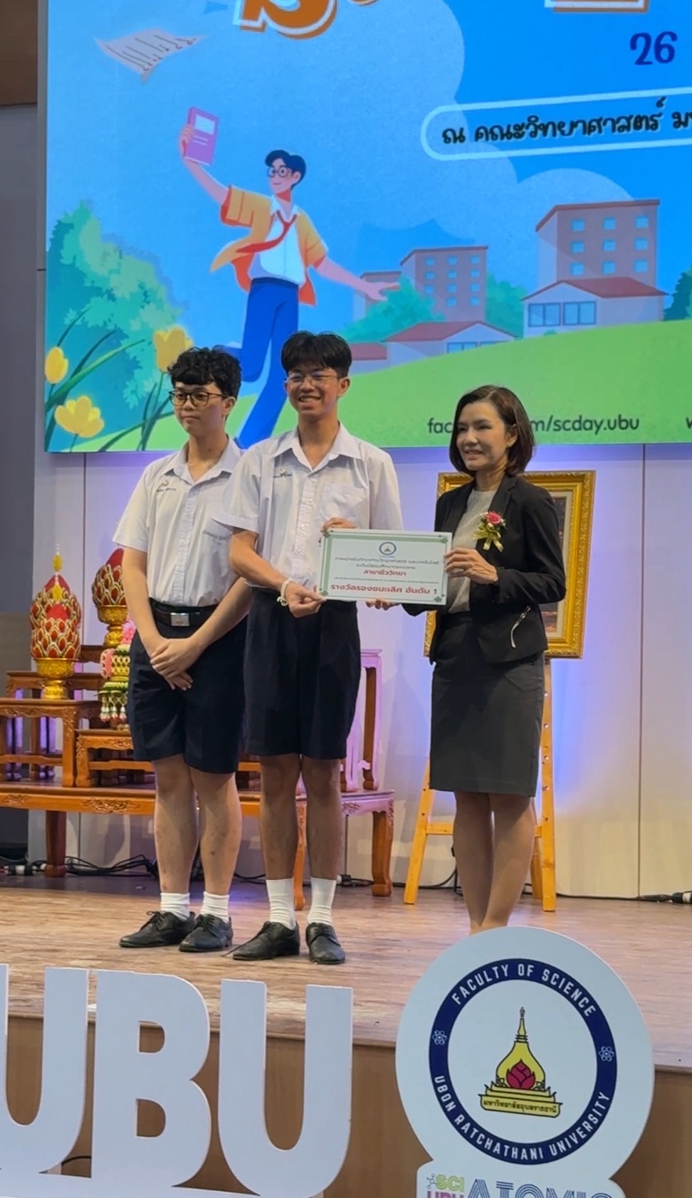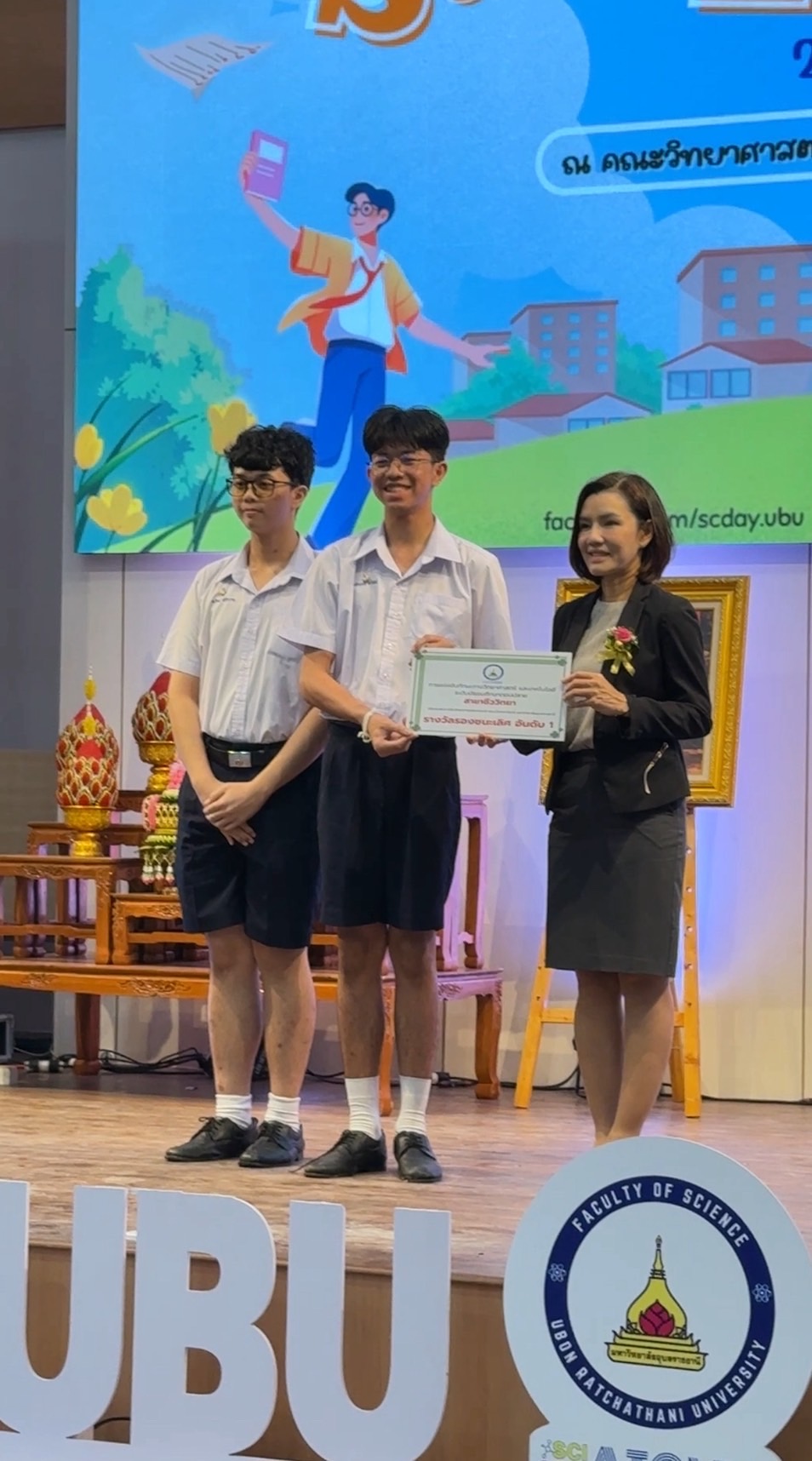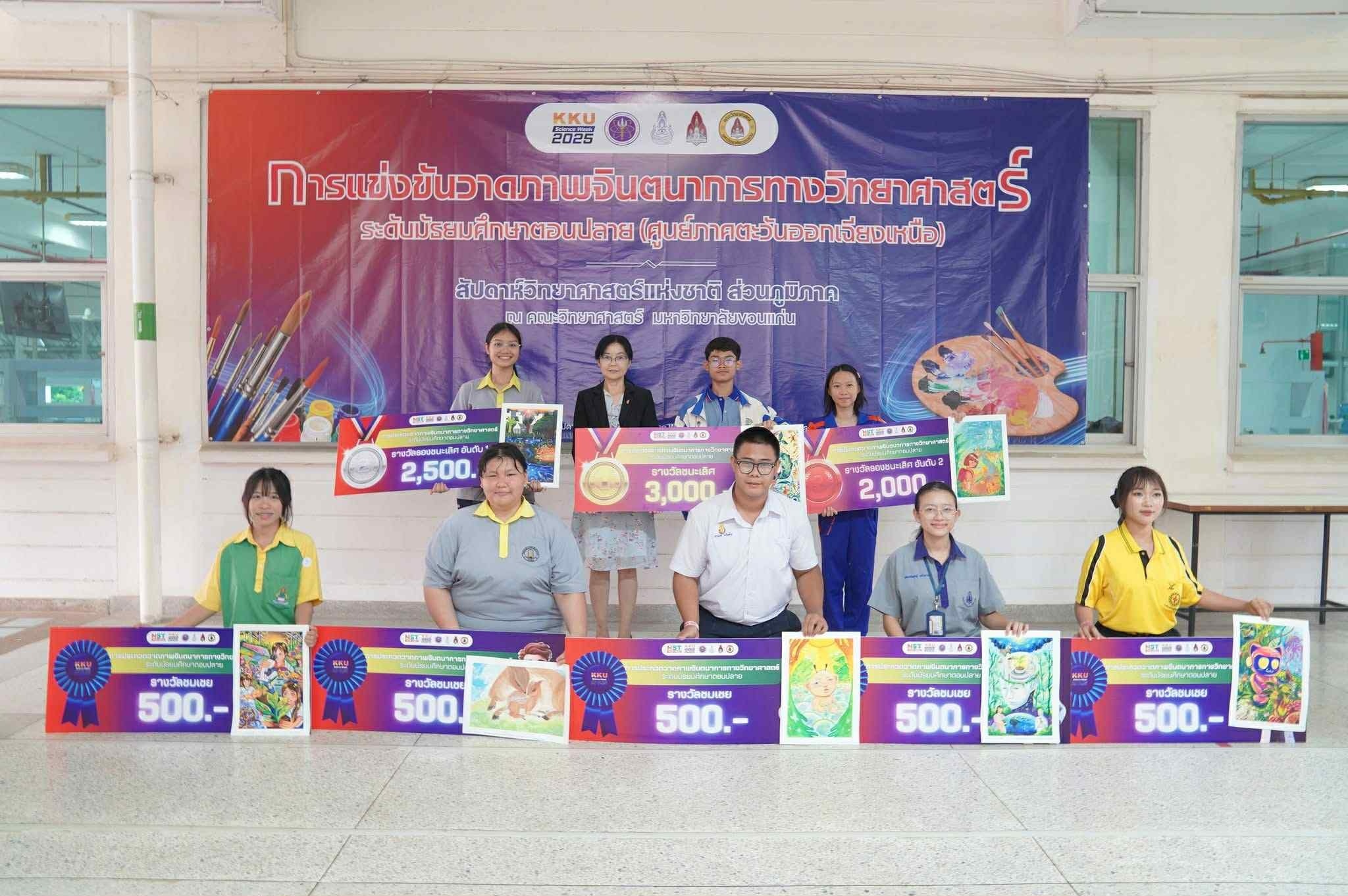 ผู้พัฒนางาน 1. ด.ญ.ณัชชา รังคะราษฎร์ 2.ด.ญ.ภัทรียา ดวงสมสา 3. ด.ช.อริยพงษ์ โกศลกิตติอัมพร อาจารย์ที่ปรึกษา นายธีระวุฒิ จันทะพันธ์ นางสาวจินดา โพนะทา นางสาวกนกพร ปูคะธรรม - รางวัลรองชนะเลิศอันดับ 2 แสดงความยินดีกับนางสาวปวรรณประภา โสมอินทร์ ชั้น ม.6/5 การแข่งขันวาดภาพจินตนาการทางวิทยาศาสตร์ ระดับมัธยมศึกษาตอนปลาย (ศูนย์ภาคตะวันออกเฉียงเหนือ) ในหัวข้อ ชีวิตใหม่ในโลกสีเขียว สัปดาห์วิทยาศาสตร์แห่งชาติ ส่วนภูมิภาค วันที่ 19 สิงหาคม 2568 ณ คณะวิทยาศาสตร์ มหาวิทยาลัยขอนแก่น